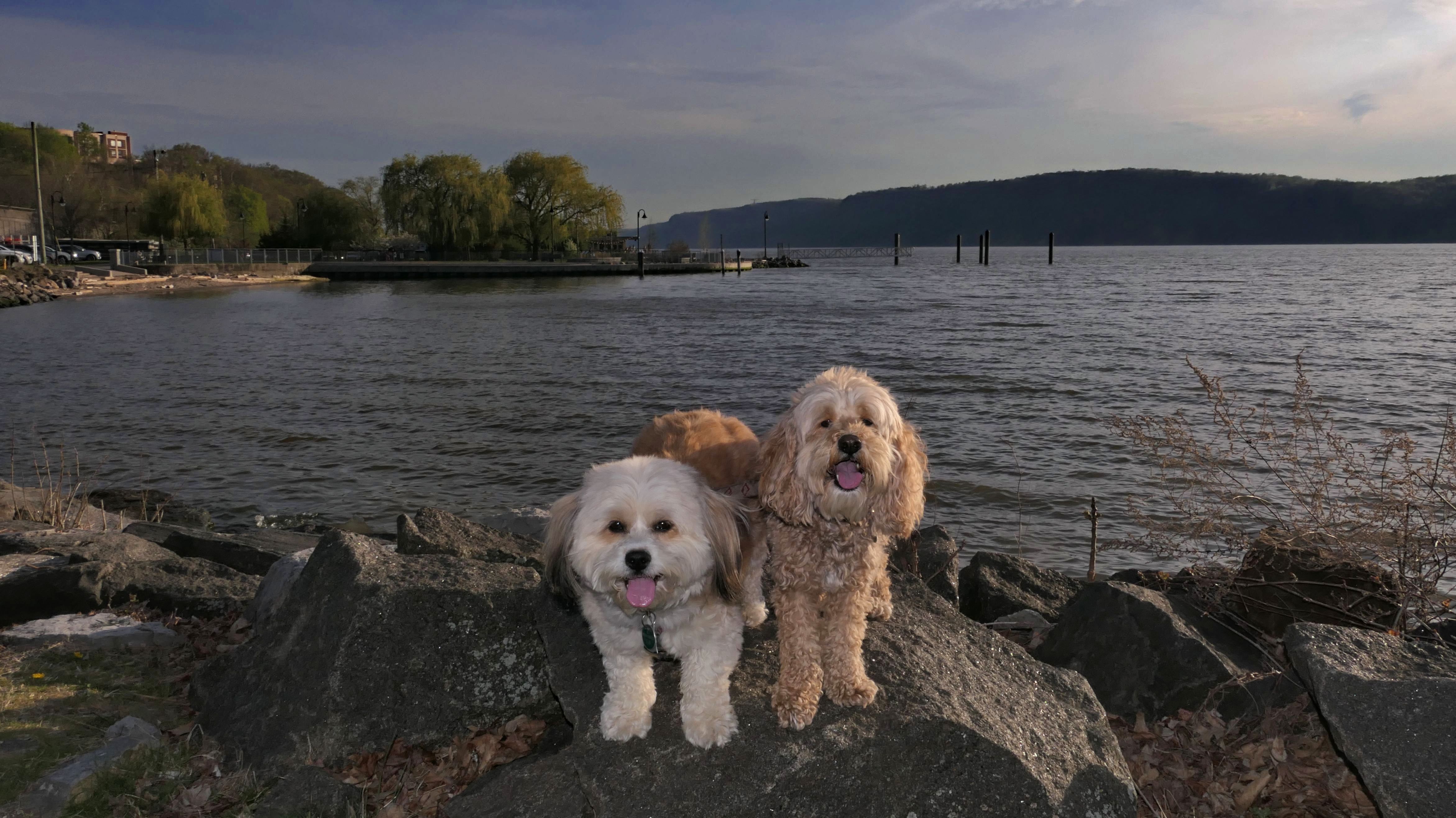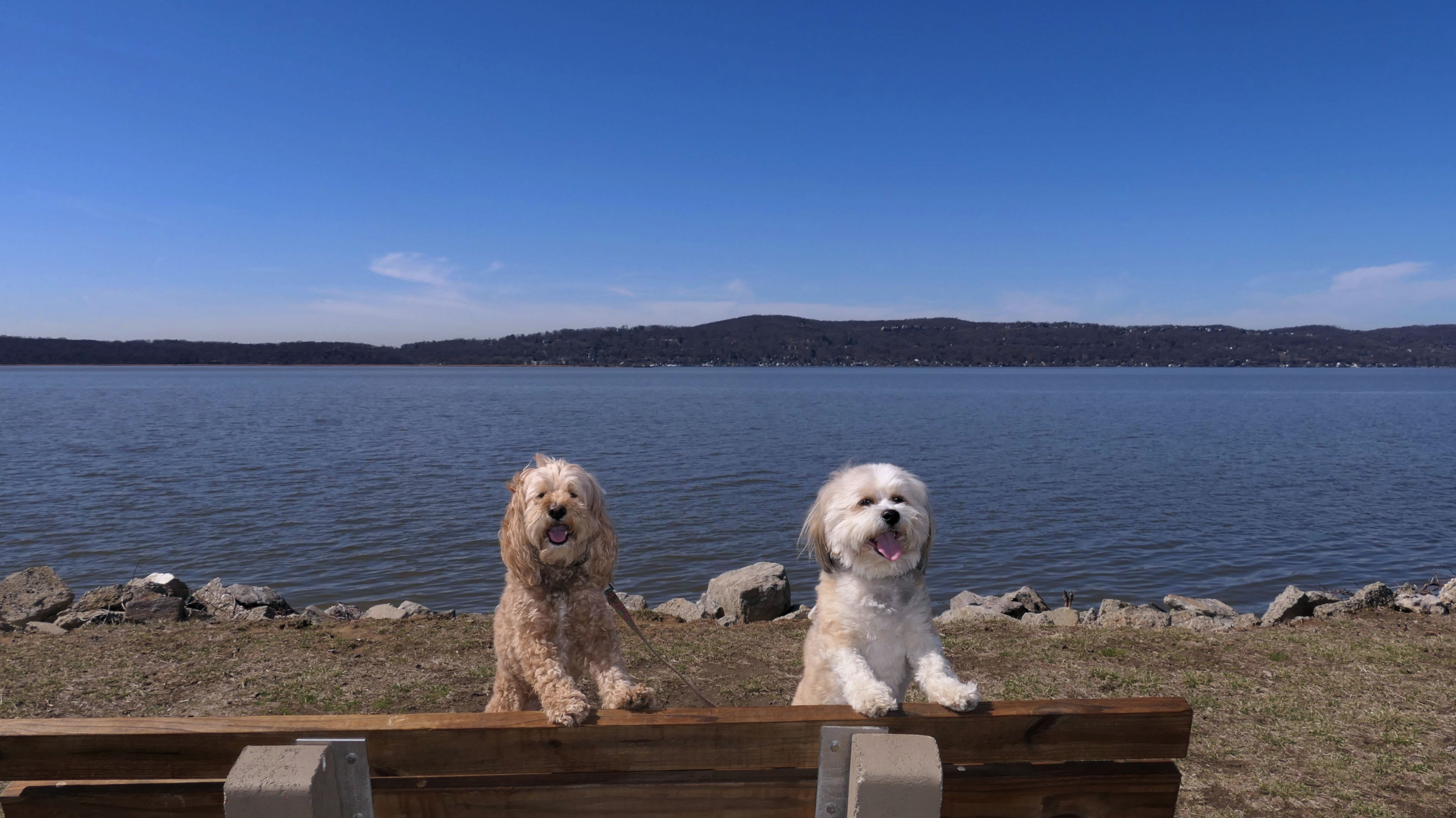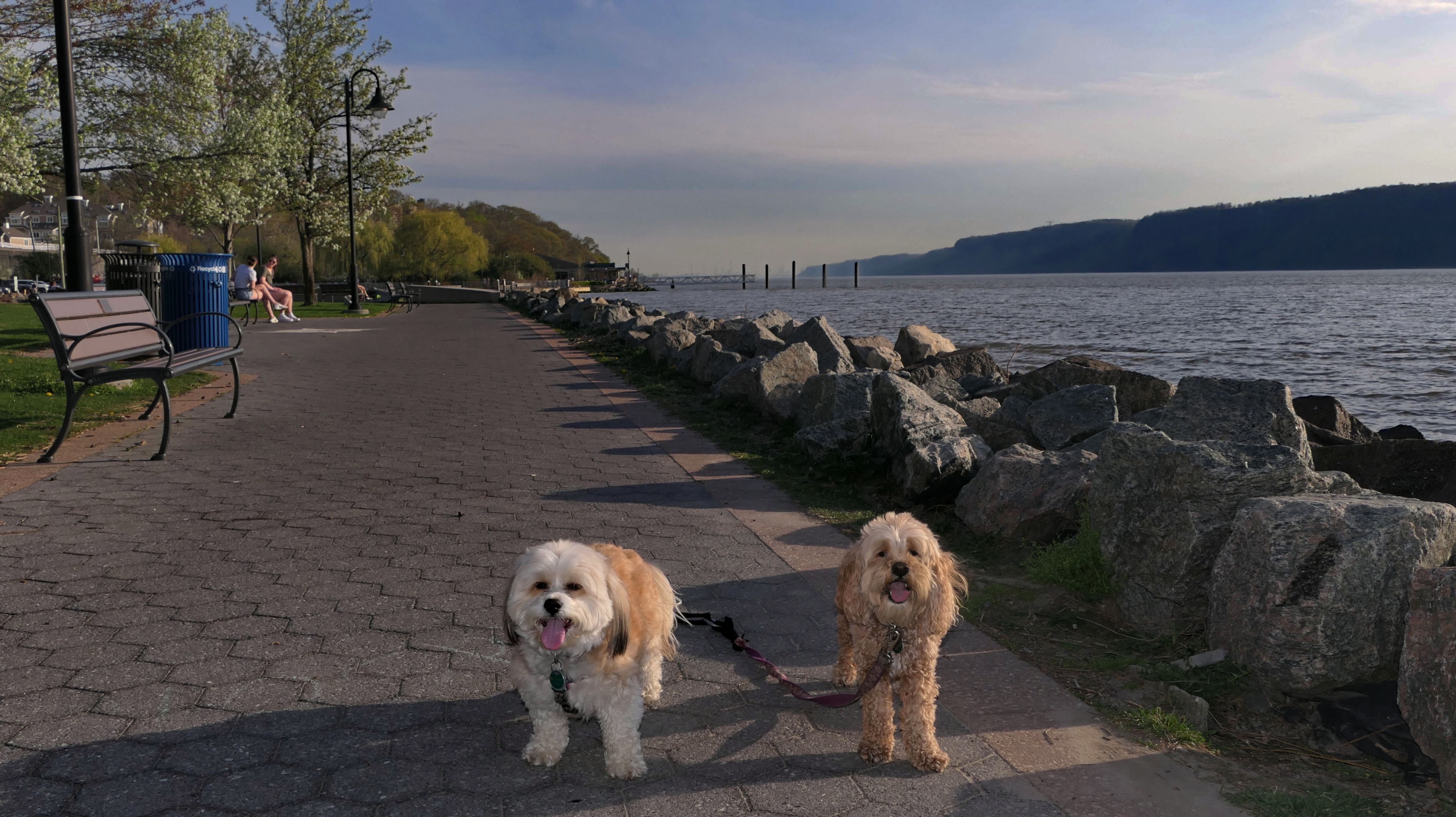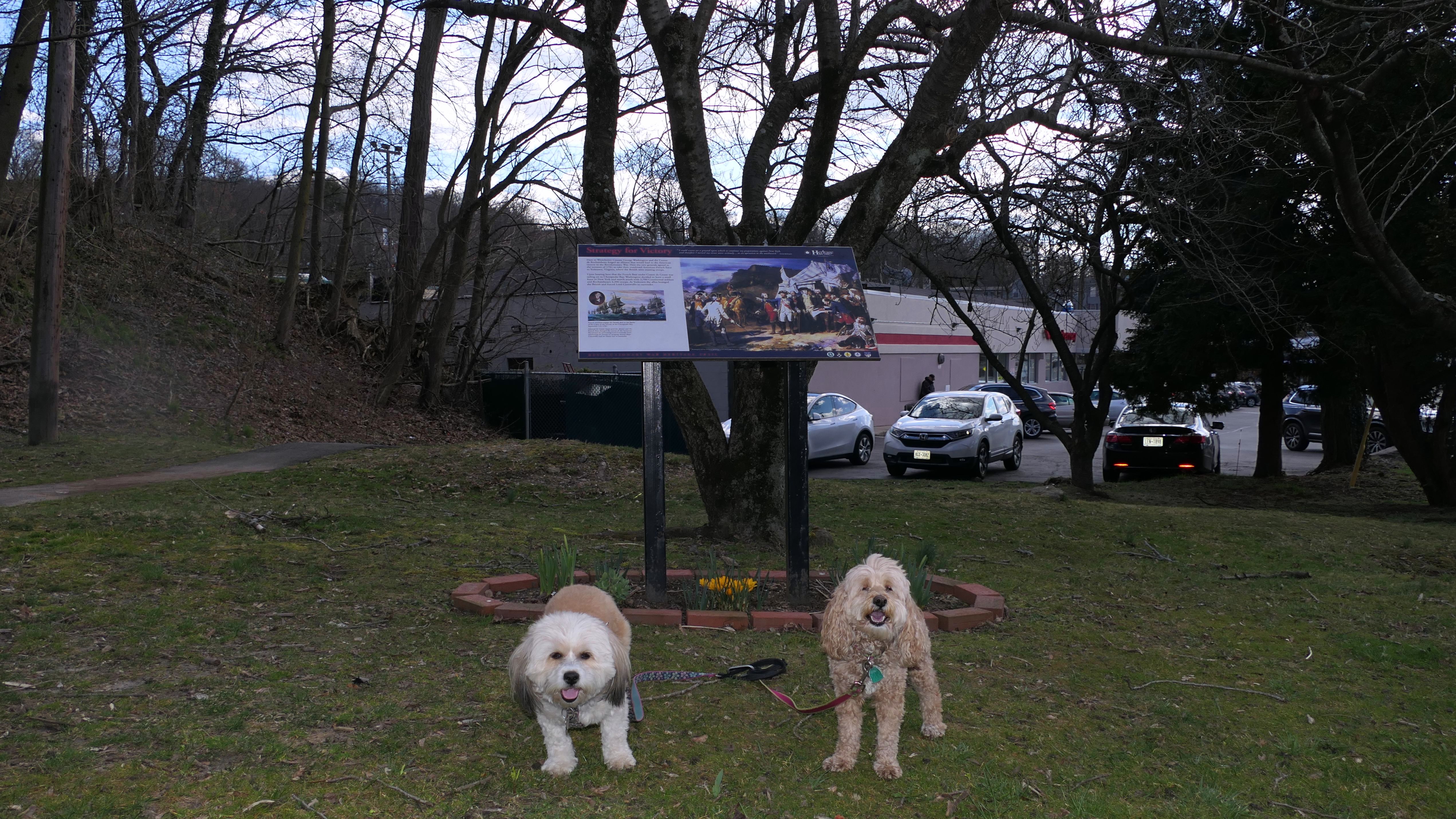 We were headed to a place near here, called "Scenic Hudson Park". Unfortunately, when we arrived at that park, there were signs indicating that dogs weren't allowed. The Google AI search results were completely incorrect. At any rate, this park was nearby, and we were planning on visiting this one anyway. It's a small, dog friendly, but nice park, with great views of the Mario Cumomo bridge. Looking to the south, you can also see the New York City skyline in the hazy distance. The only issue is that it is on the small side. After looping the park, we headed to Downtown Irvington next.