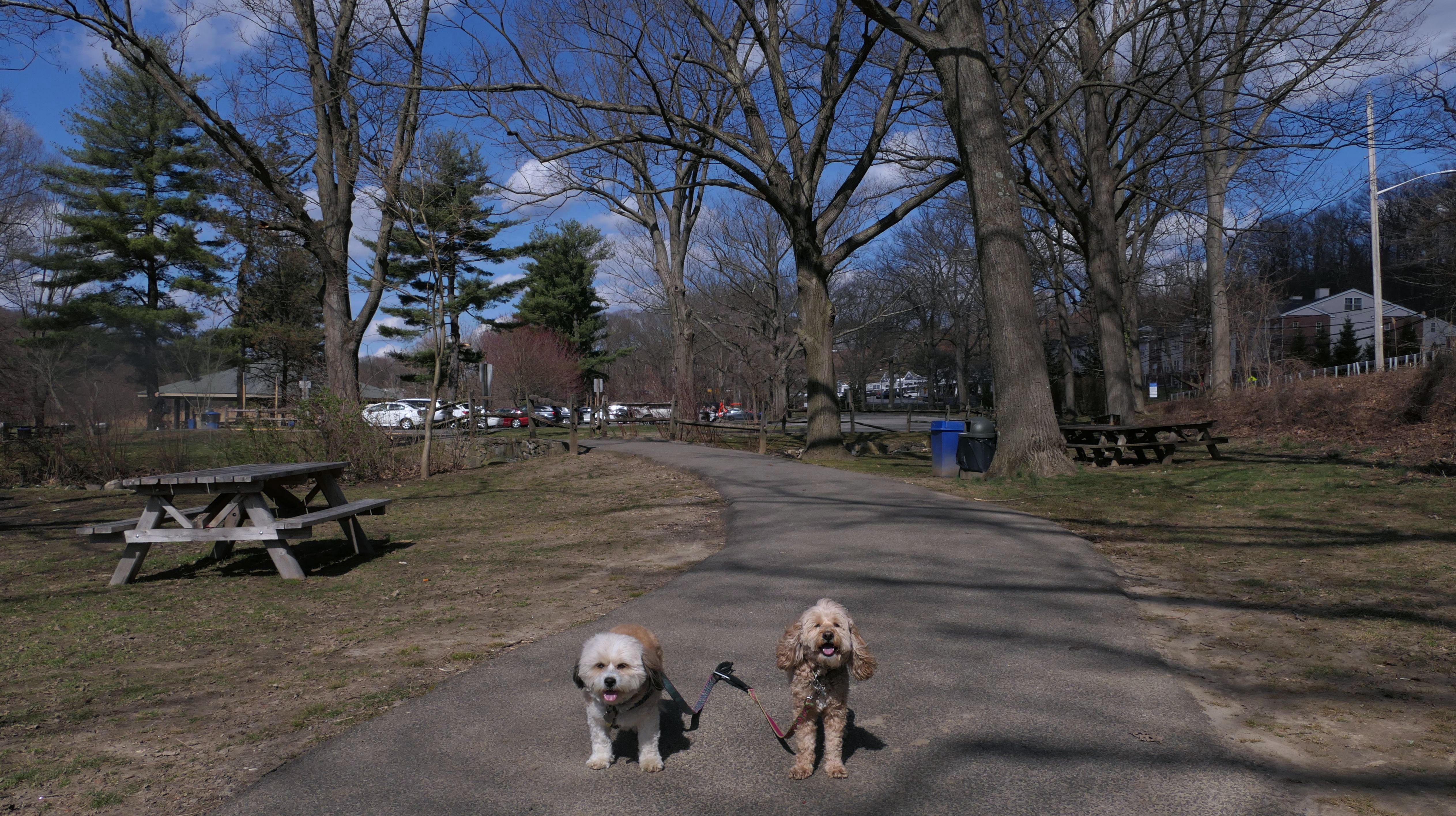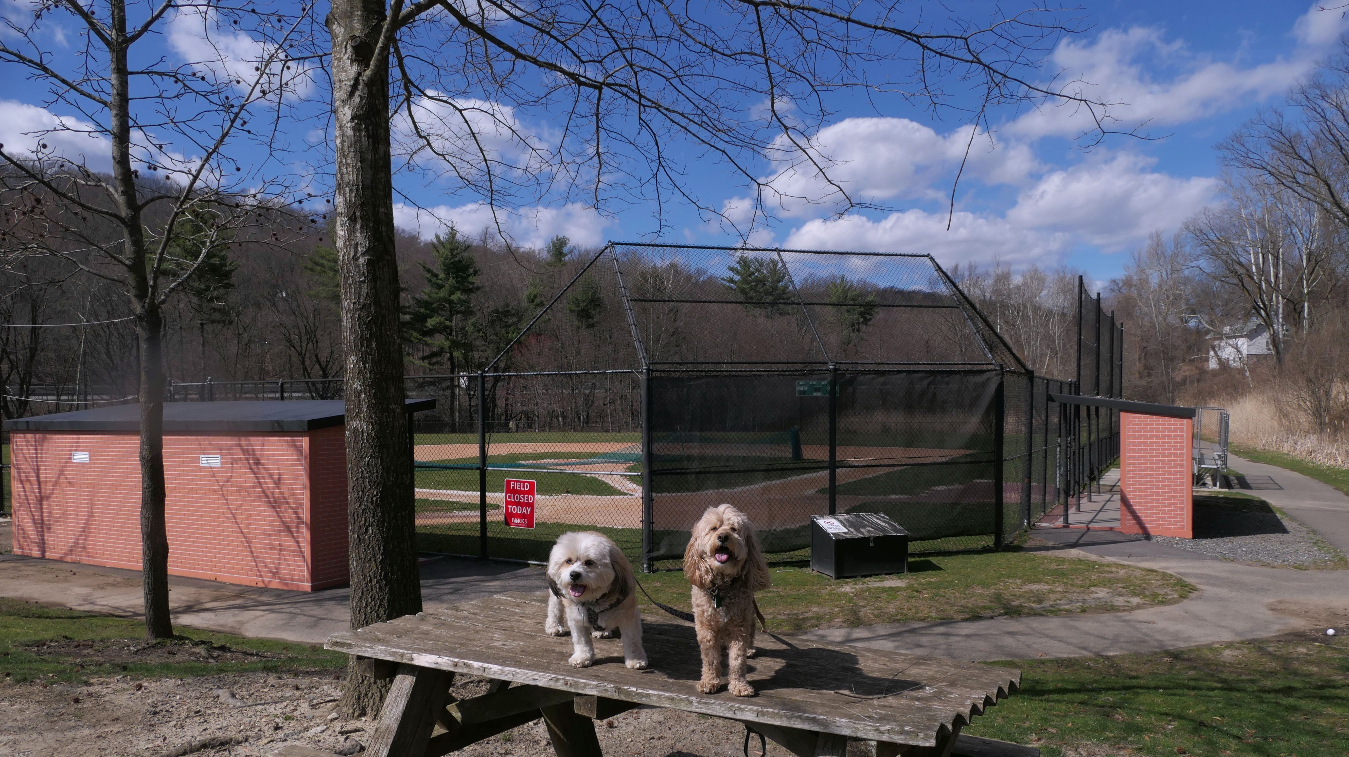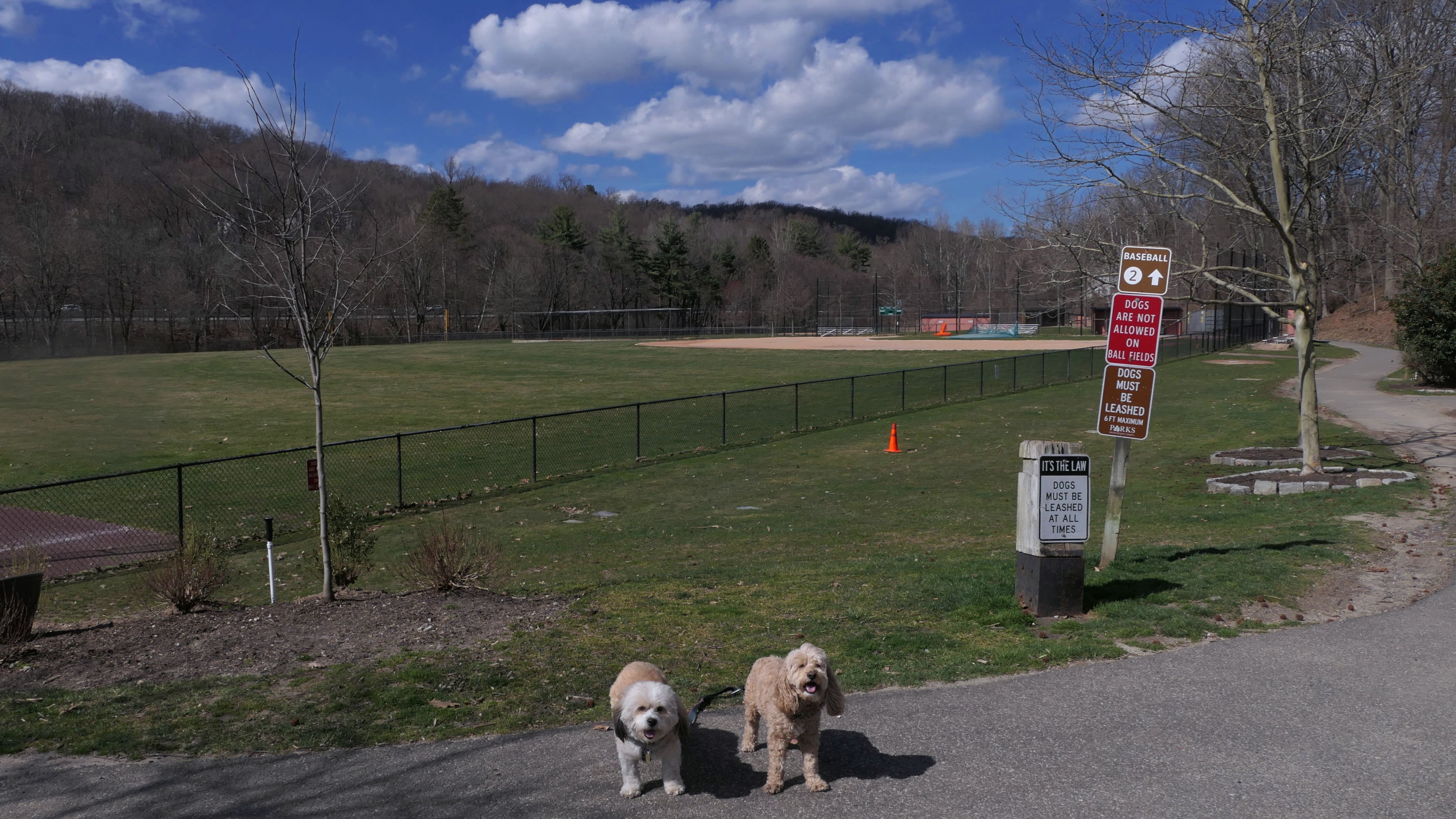 This is a Westchester County Park in the village of Ardsley. It's a typical park with athletic fields, picnic areas and a playground. There is a paved walking path around the park. We also ventured across the street to another small area called Bicentennial Park. There was a shopping plaza near the park with some purple trees that had already bloomed (I think they are called Eastern Redbuds). This is a nice place to take the dogs for the walk if you're in the area.
