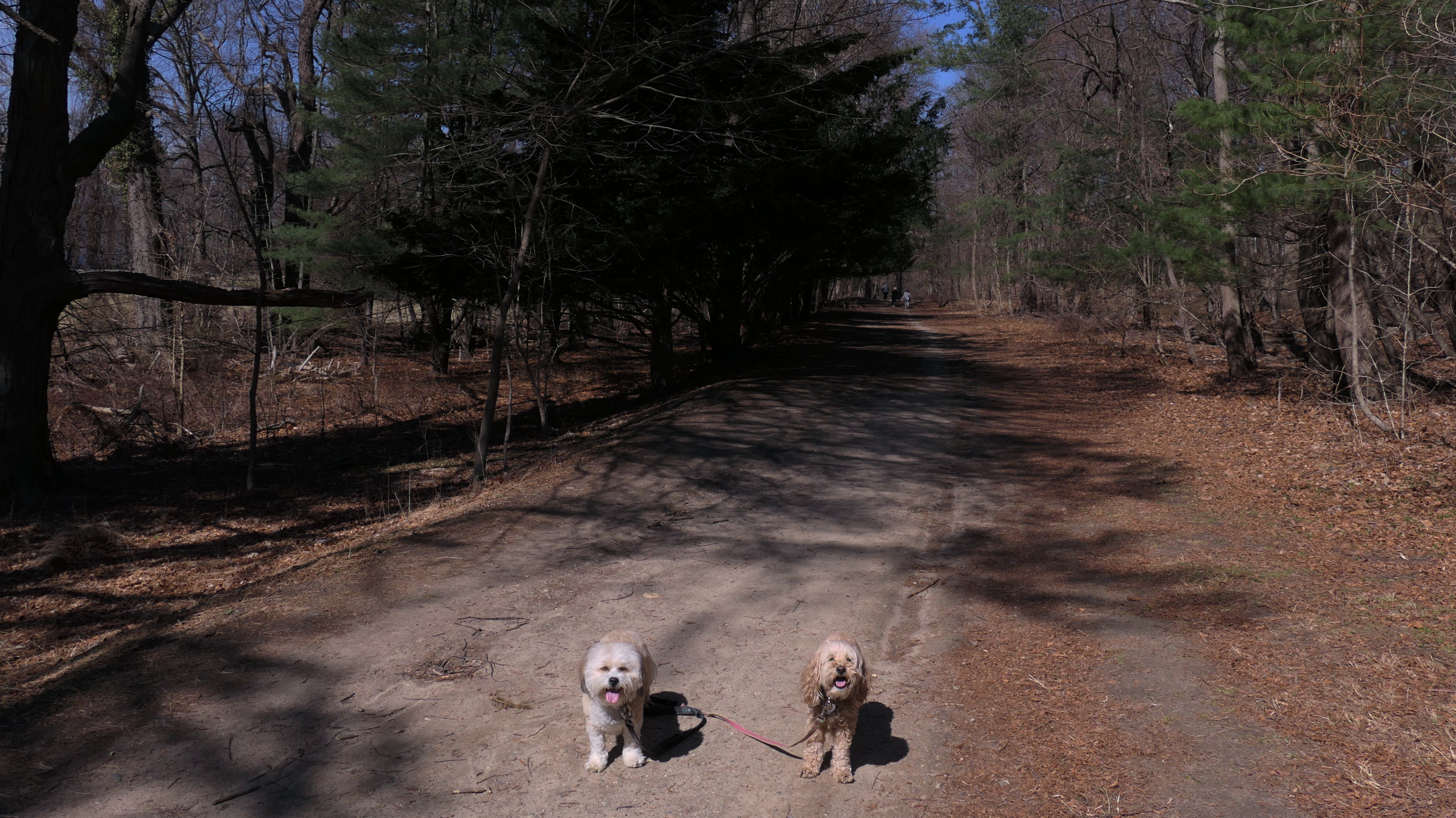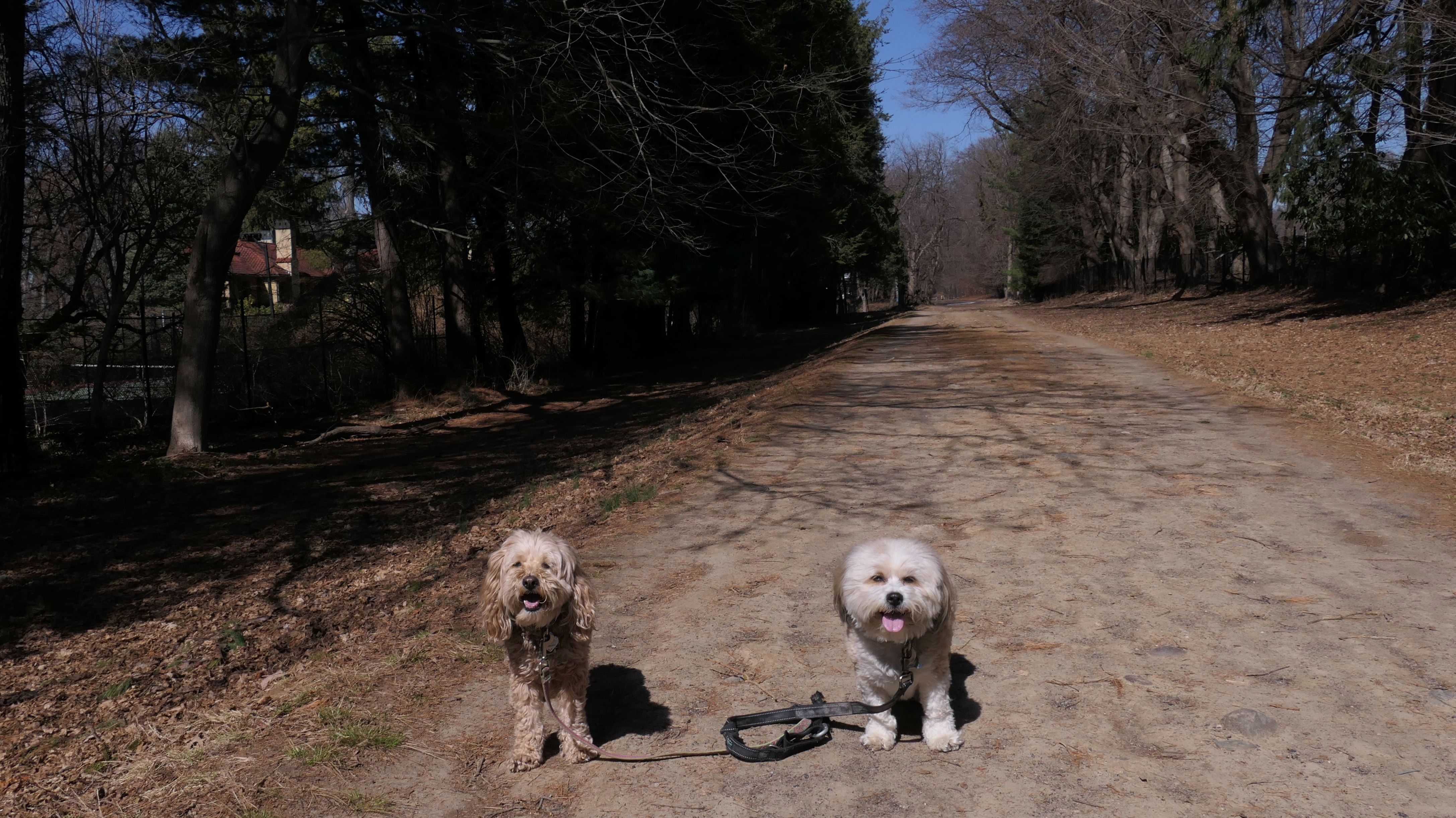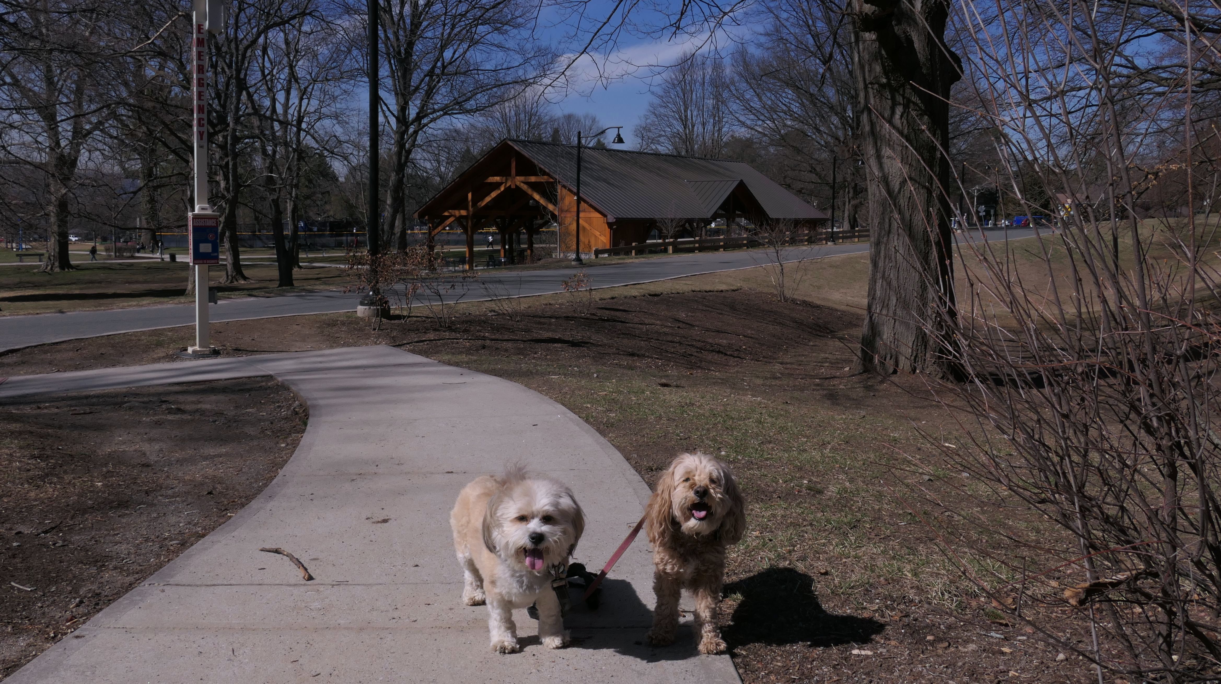 This is a Westchester County Park in the village of Ardsley. It's a typical park with athletic fields, picnic areas and a playground. There is a paved walking path around the park. We also ventured across the street to another small area called Bicentennial Park. There was a shopping plaza near the park with some purple trees that had already bloomed (I think they are called Eastern Redbuds). This is a nice place to take the dogs for the walk if you're in the area.