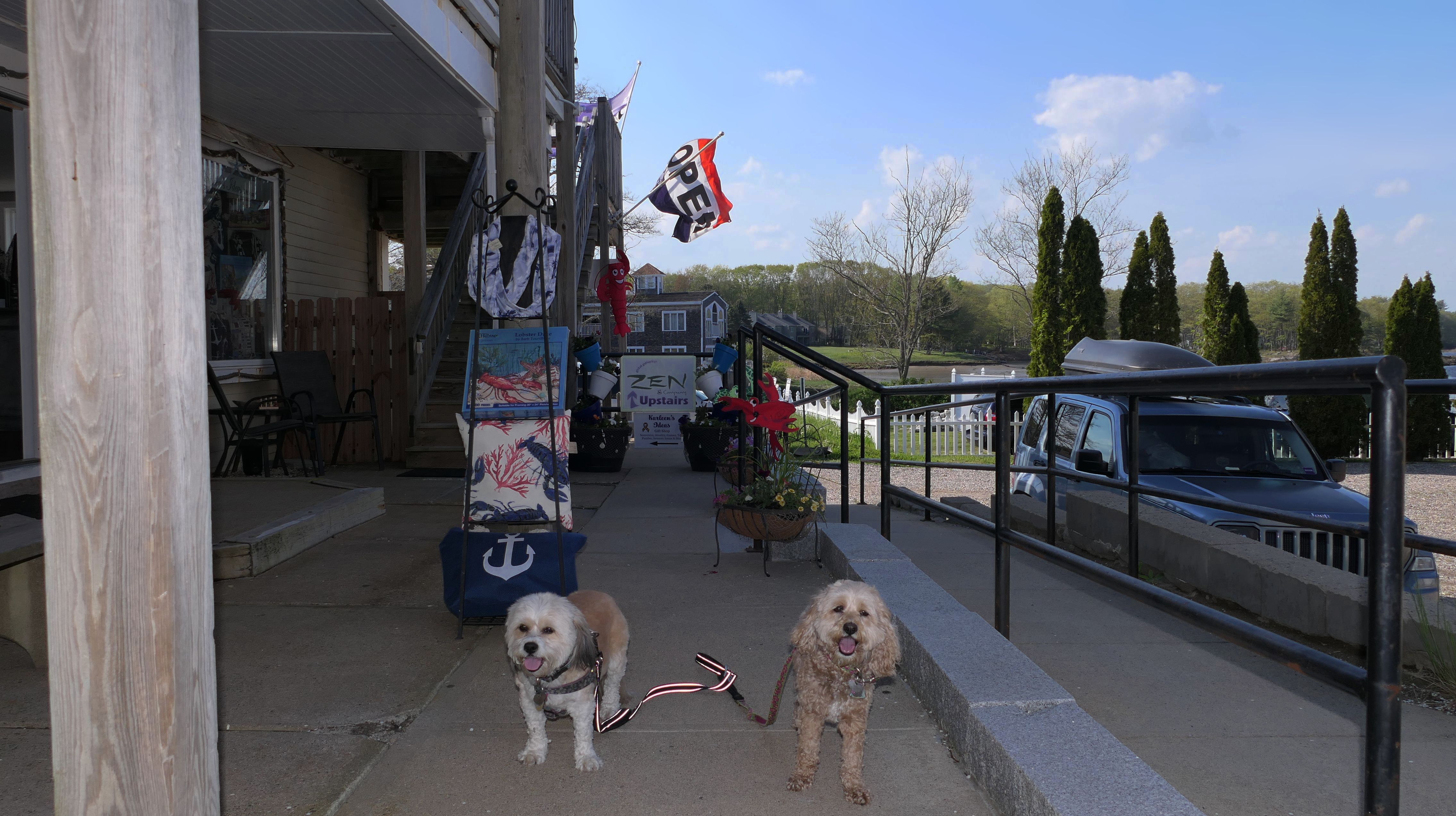 This is the tourist area just west of the Kennebunk River bridge that separates Kennebunk from the Dock Square section of Kennebunkport. Like it's nearby neighbor, there are a number of small shops, inns, and restaurants. The dogs were invited inside one of the shops my wife was visiting.
