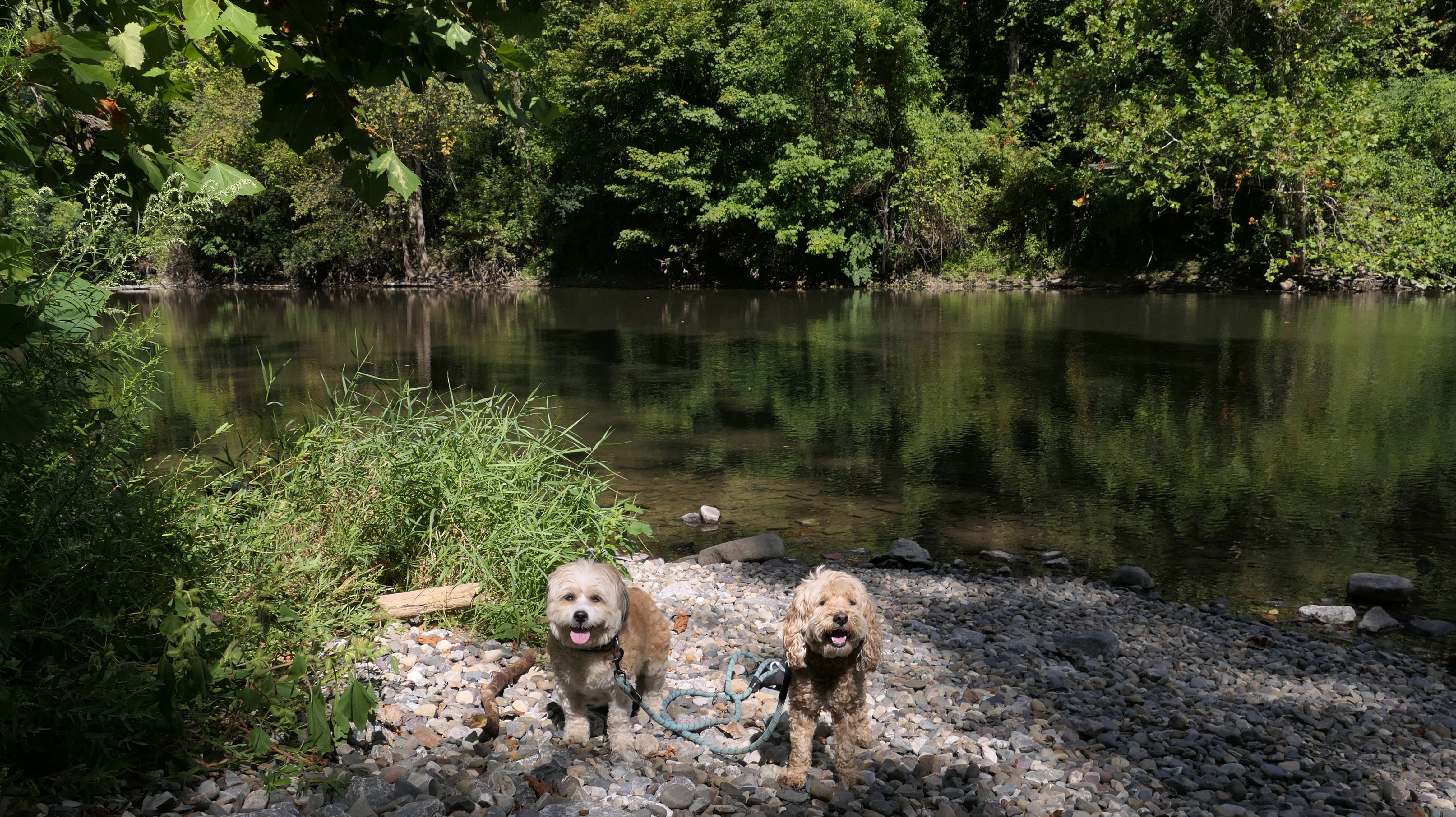 This was basically a walk down Main Street, from the intersection of Albany Hudson Electric Trail to Beaver Cotton Mill Overlook and back. This is a typical small town Main Street lined with little shops and restaurants. There's a dirt path through the woods, just east of the bridge over Valatie Kill, that leads to a waterfall. Mandy and Lexi cooled off in the running water.