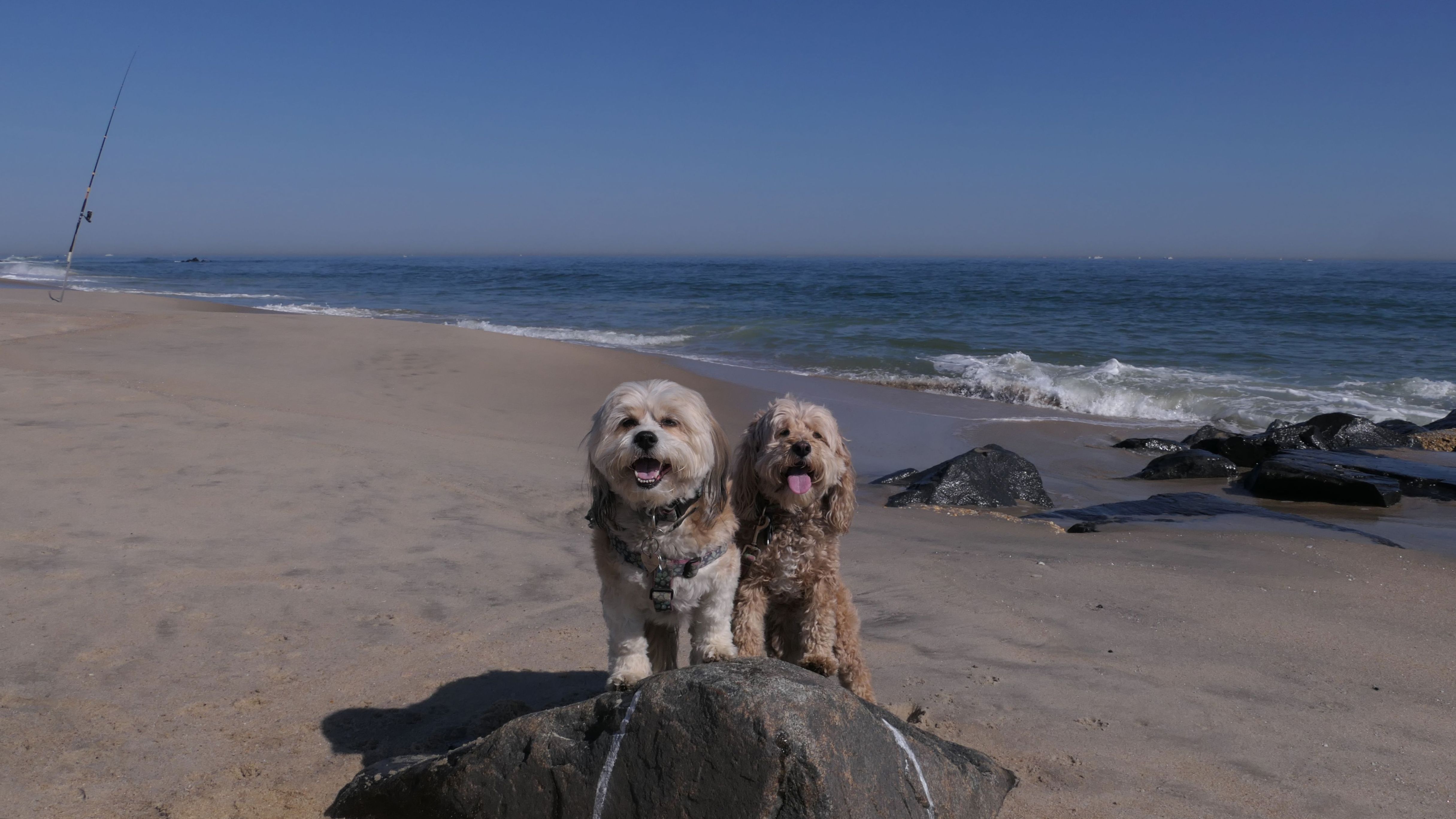 This was another fantastic summer-like beach day in late October. Temps inland were into the 80's. It was a little cooler on the shore, but still a great day to go to the beach! This is a city beach, situated between the shore and a busy commercial district. Dogs are allowed on the beach in the off season from October through April, but they are never allowed on the boardwalk or promenade. The beach is long. We only covered the northern most section, from Pavilion Avenue up to where Seven Presidents Oceanfront Park begins (according to the sign we encountered, dogs aren't allowed in that park). This was a fun walk on an unseasonably hot day on the Jersey Shore!