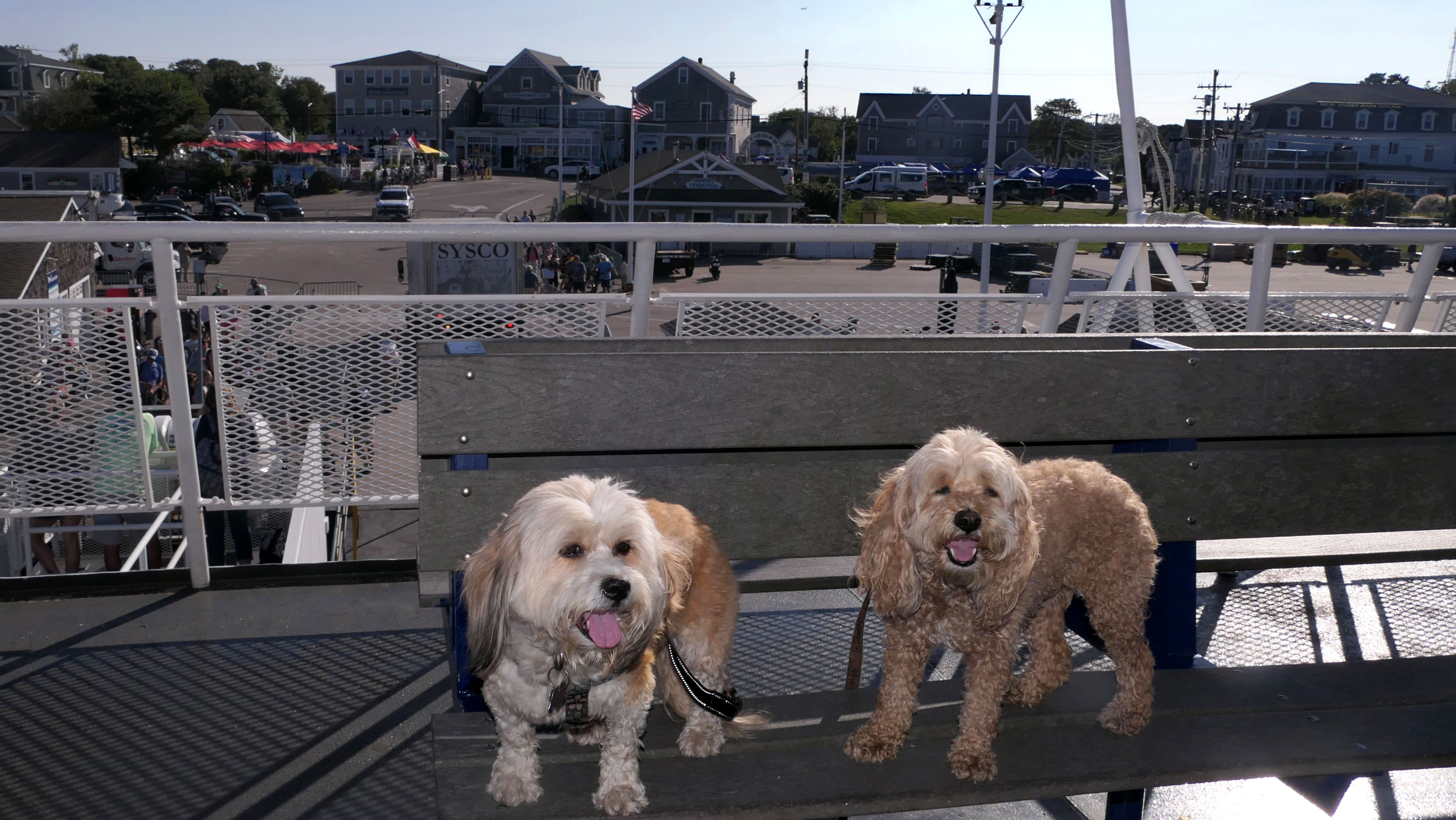 Since we rented a car for the day, I wanted to go to a beach that we couldn't get to on our previous trips. Some of the nicer beaches along the southern coast of the island require long climbs down steep dunes, so we settled for this beach along the northwest side of the island. It's remote and out of the way. We were the only ones there. It's rocky, with milder waves, which is the way the dogs like it! The informational sign near the ferry landing says this is a good spot to find beach glass, but all we found was broken glass from bottles near the entrance to the beach at the end of West Beach Road. Be careful with the dogs at the entrance! We found a trail that leads out toward the Great Salt Pond. We walked down that trail a short distance before turning around and heading back. This was a different experience from the tourist beaches along the northeast side of the island, but I didn't think it was quite as nice. Mandy and Lexi loved the water though, and in the end, isn't that all that counts!