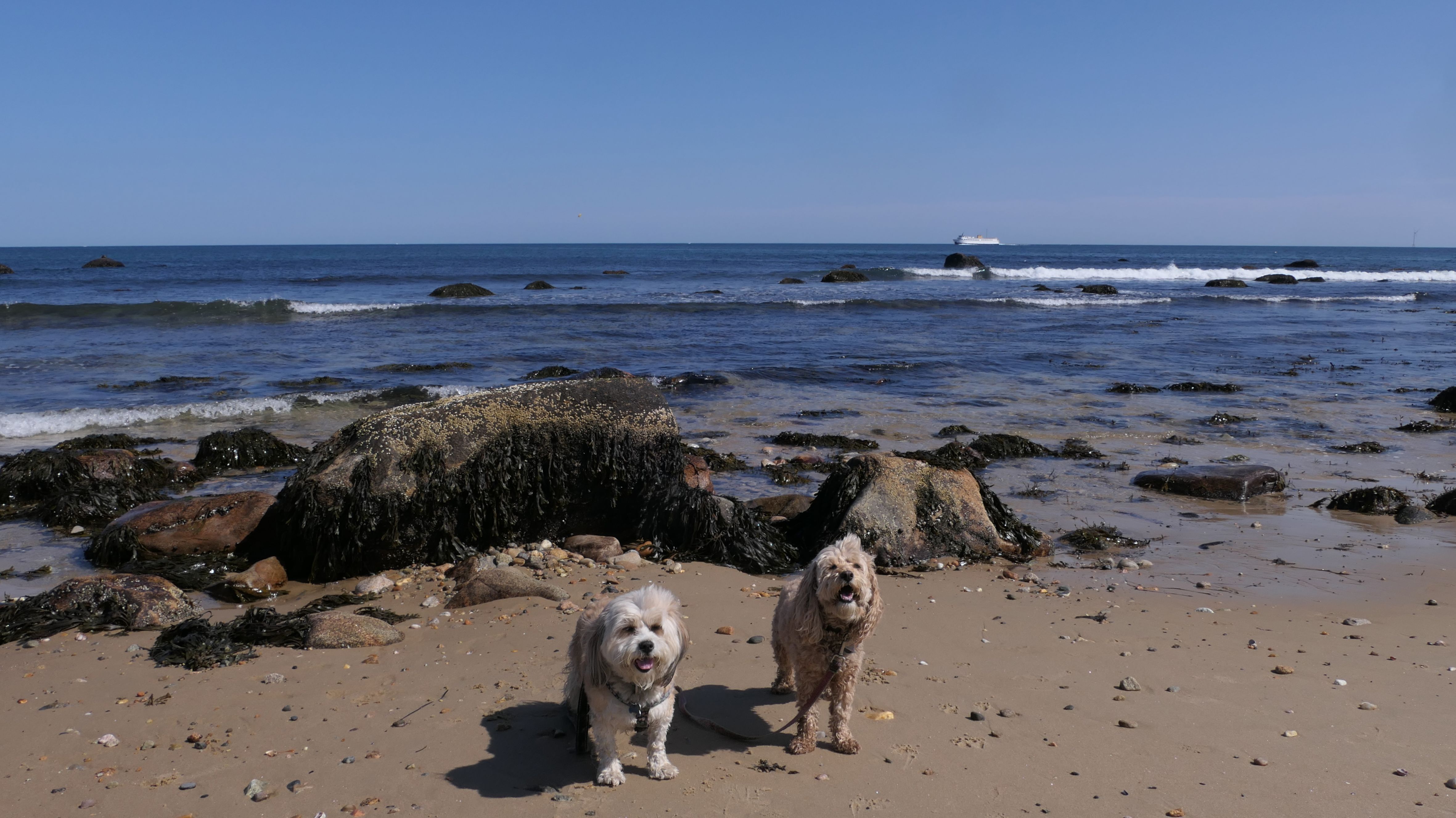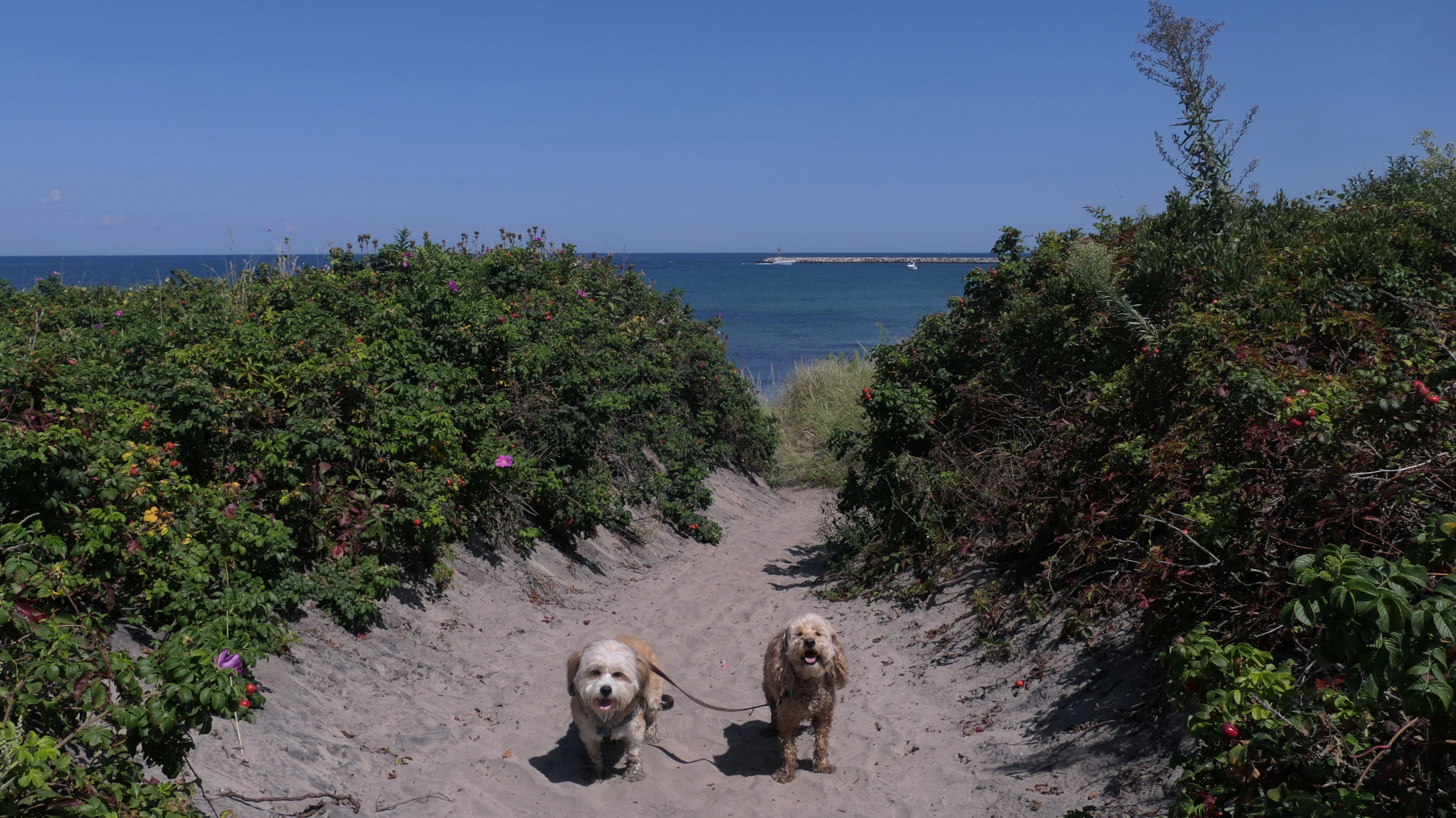 This was the second of four beaches on our Block Island beach adventure. This is probably the most popular beach on the island. It's a 20 minute walk from the ferries, has crystal clear water, and mild waves that are great for families. It goes without saying that leashed dogs are allowed here too, like most (if not all) of the Block Island beaches. We connected from Surf Beach on our way here, so we did not check out the amenities. I've read there is a beach house with bathrooms and showers (I believe there is a charge for the showers). There is also a food stand as well. This was the busiest stretch of beach on our walk. While it's hard to know exactly where one beach begins and the next one ends, we headed to Scotch Beach next, and then Mansion Beach.