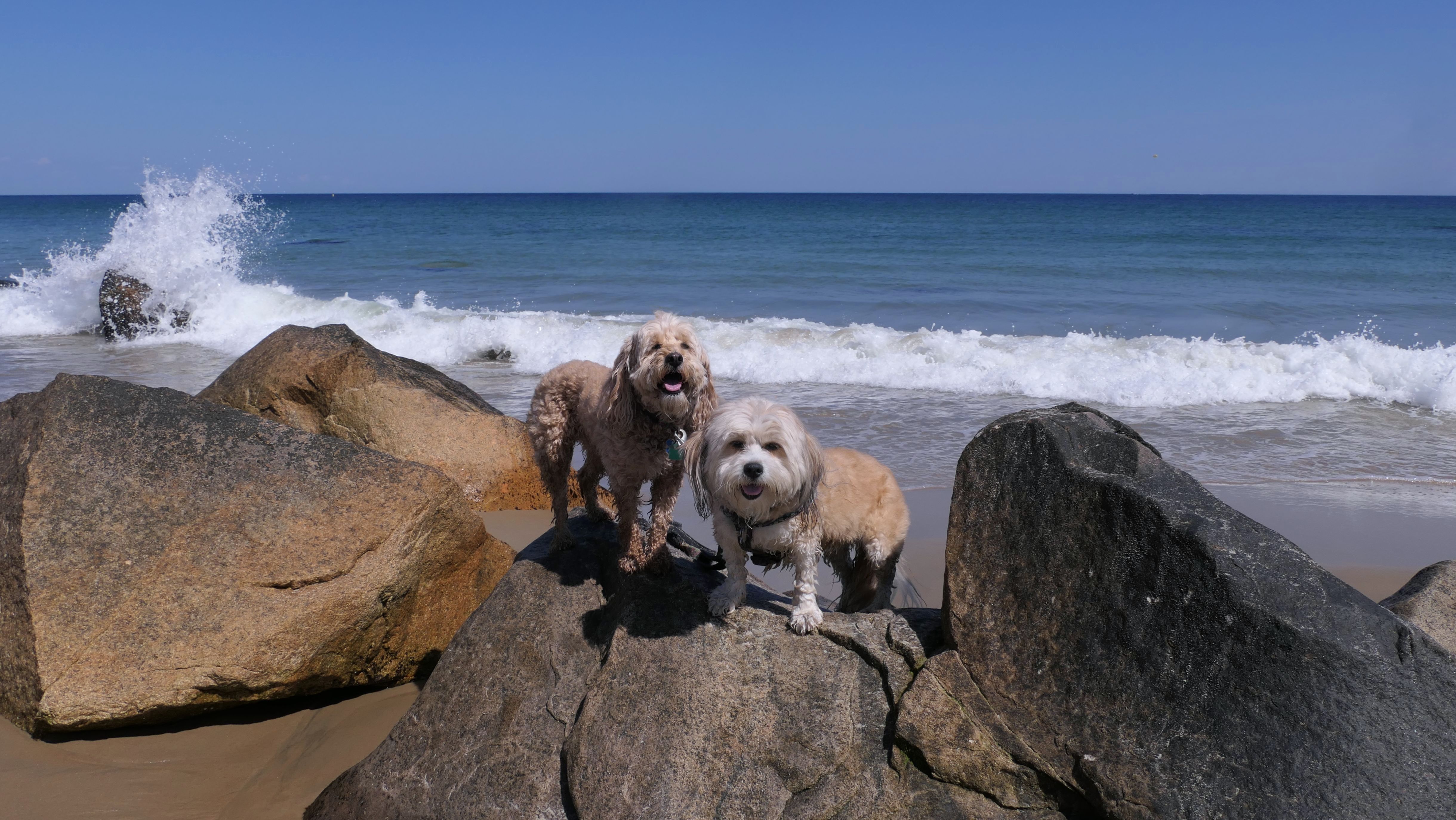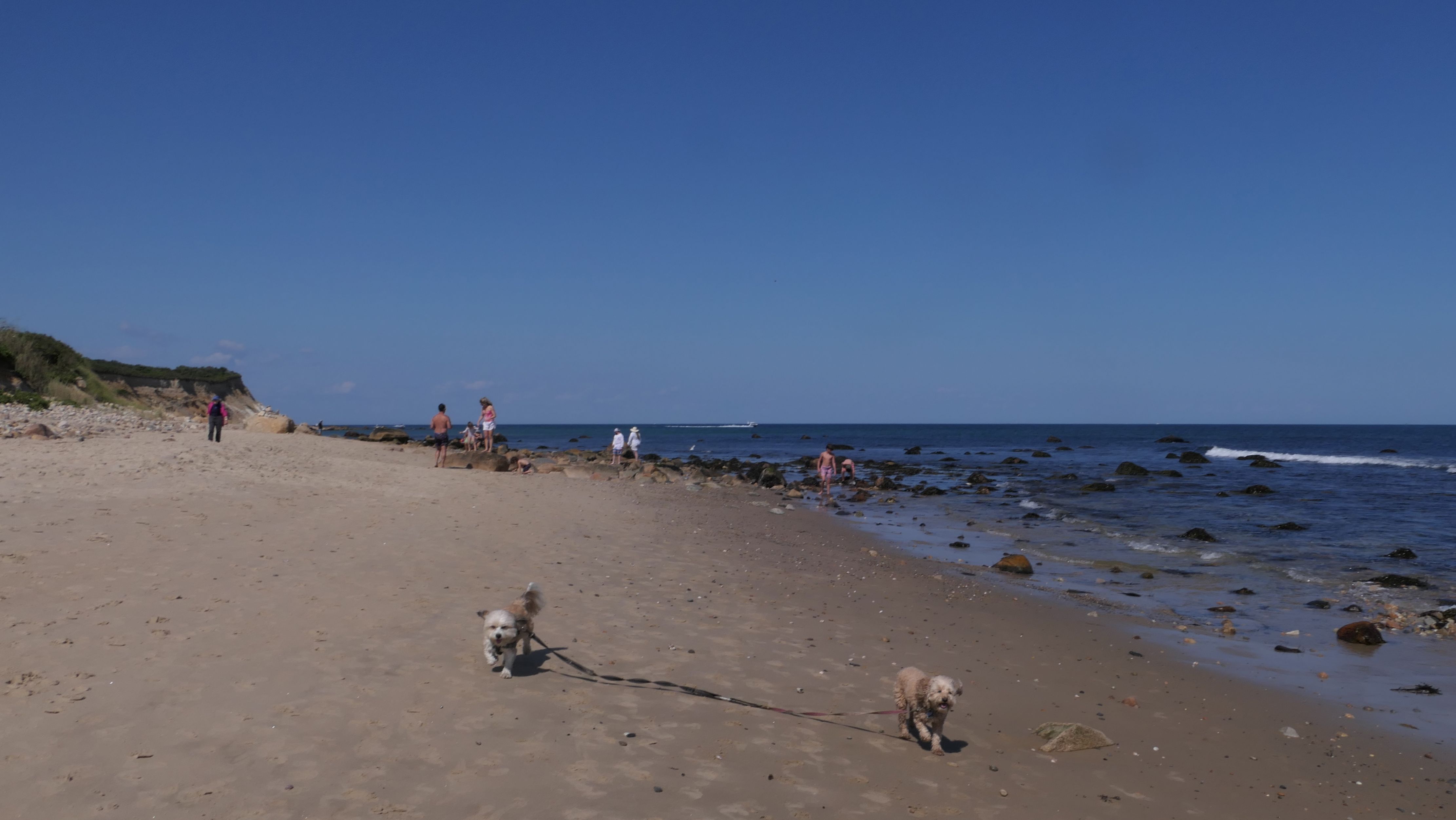 This was the highlight of this trip to Block Island. A couple months earlier we visited the Edward S Payne Overlook, and walked part way down the 141 steps, but did not go all the way down to the beach. This time, we were bound and determined to make it to the beach, so we went all the way down. At the bottom of the stairs is actually a series of rocks that have to be traversed carefully to get to the beach. Once at the bottom, we walked about a mile and a half along the beautiful shore, over to Vaill Beach before turning around and heading back. The views were gorgeous. The beach is a mix of sandy and rocky areas, with plenty of spots for great photos. One thing to be aware of, a section of the beach about a quarter mile from the stairs around the first bend, appears to be unofficially clothing optional. We encountered one nearly naked man sun bathing with his wife (he was wearing only a hat). His wife was wearing a bathing suit. Just something to be aware of. While we were walking back, I let the dogs off-leash to run around a bit. They always enjoy running free on the beach! We made it up the 141 steps on our way back with no issue. The hardest part was climbing over the rocks leading to the staircase. The area had gotten real busy, and there were people just sort of mulling around the rocks, making it difficult to get by. Once we got past that, the walk up wasn't too bad. I'm definitely glad we made it to this beach this time around. It was definitely worth the climb!
