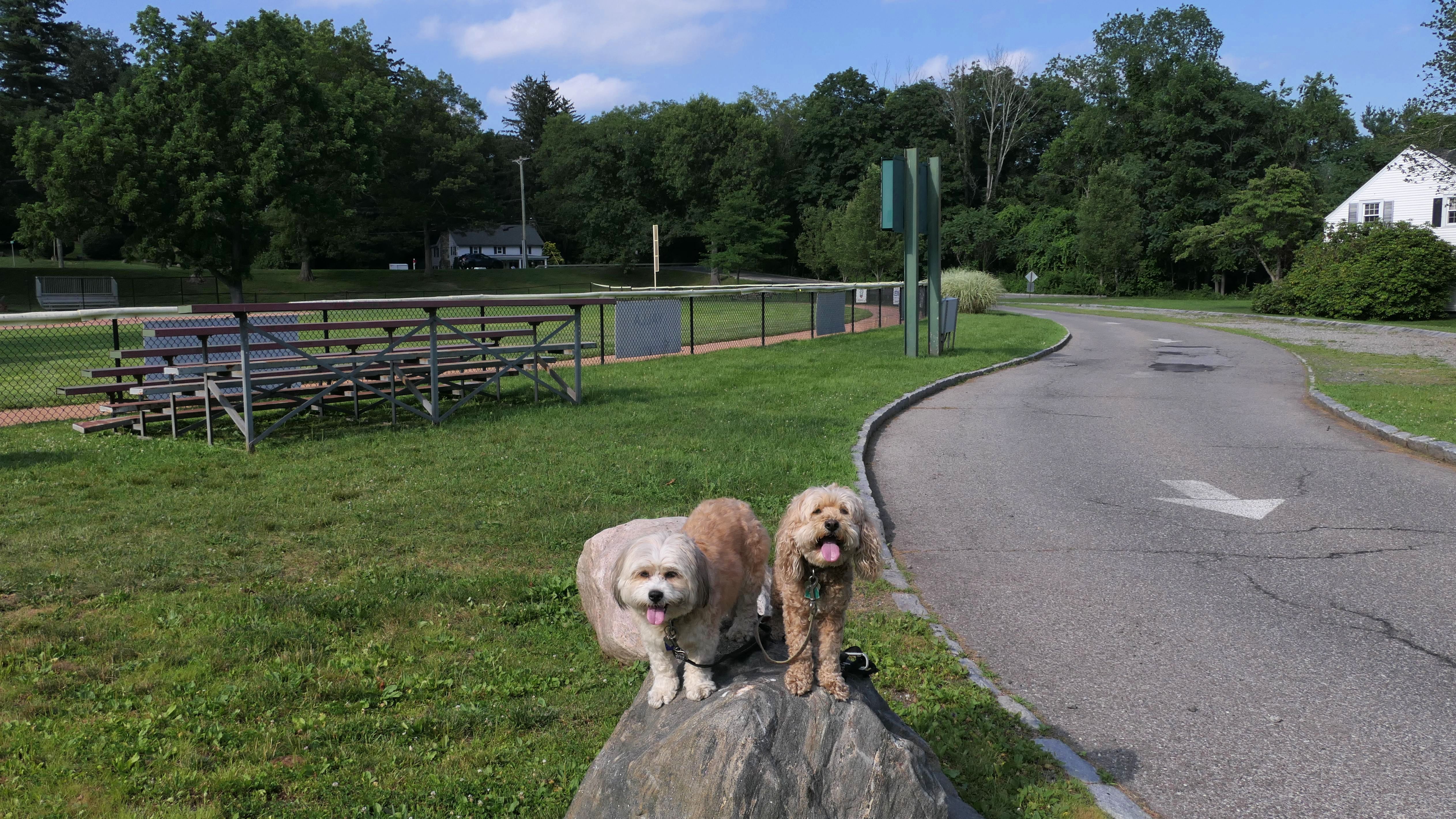 Not to be confused with Wampus Pond Park, Wampus Brook Park is a town park in the center of the Armonk section of town. The park has a series of walking trails, a gazebo, picnic areas, and a couple ponds. People were arriving for a free concert being held at the park, a Bruce Springsteen tribute acts called "Tramps Like Us". I was impressed because the pre-show music was the Umphrey's McGee album "Anchor Drops"! Anyway, we walked through the park, but didn't stay for the concert. Dogs generally don't like loud music. This is a pretty nice park, and a good place for a walk with your dogs.