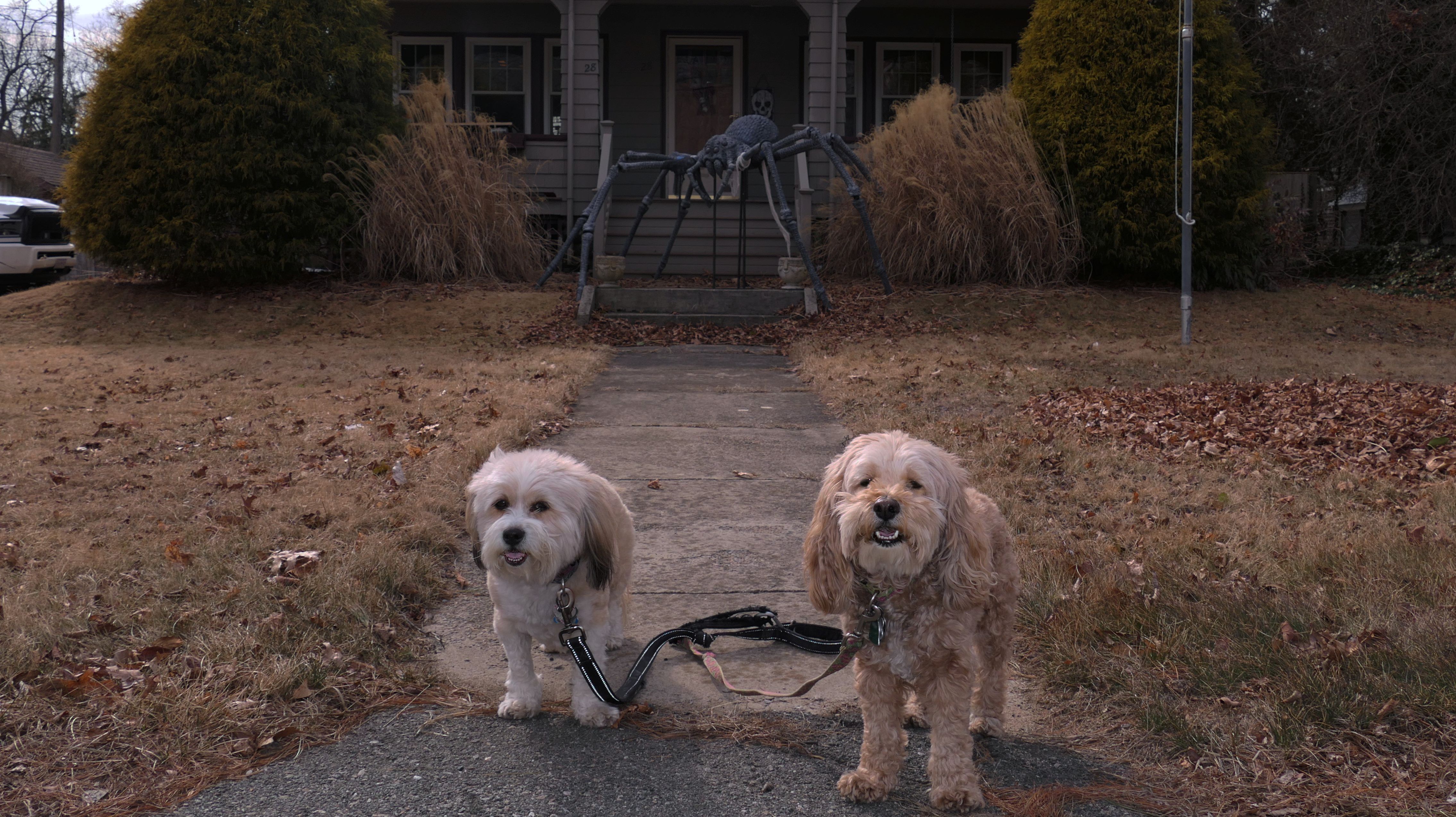 After our two mile walk around Wheaton College and Library Park, we walked up Mansfield Avenue to Norton Reservoir. There was a small access path off the road that led to the spot where we took the picture. I don't know if other areas of the reservoir provide more access. On the way, we passed a house with a giant spider on the front steps.