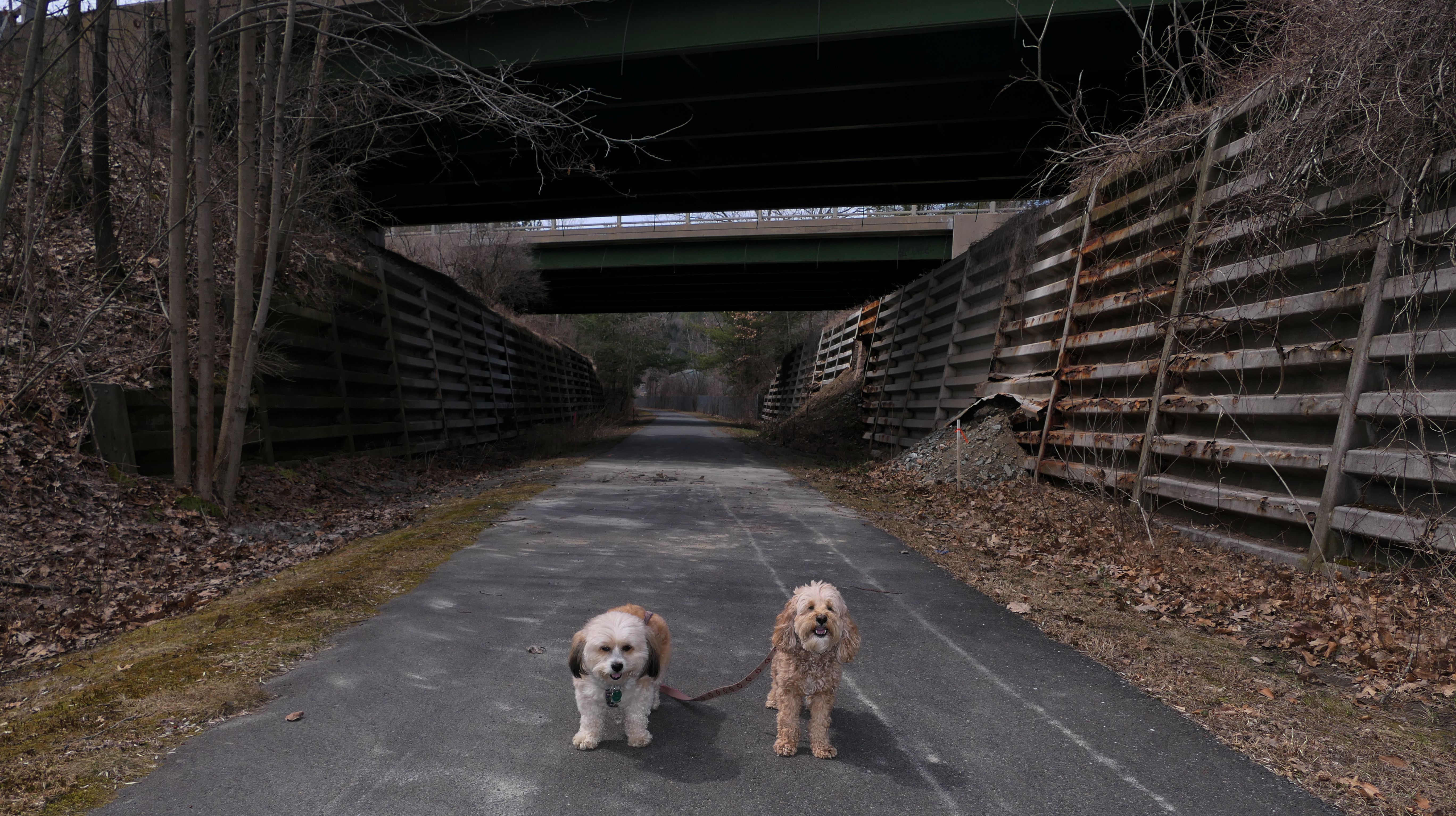 This is pretty "meh" as far as rail trails go. This one runs along side the Black River. We came up here because it was the closet location that had sun in the forecast. The sun did come out, but the trail was probably not worth the hour and forty-five minute drive. We started at the small parking lot on US-5, just off I-91 and headed west back under the Interstate along side the river. The middle section of the trail is actually on Paddock Road, and not a separate trail. Fortunately, the road is not that busy. I think only three cars passed by our whole trip in both directions. At the end of the road section is the entrance to a state park and Goulds Mill Bridge. Once you cross the bridge, the actual trail starts back up running between Route 11 and the river. This is the nicest section of trail with great views of the river and the small fast rushing waterfall. We walked a bit past the waterfall to a picnic area where we took a break before turning around and heading back.
