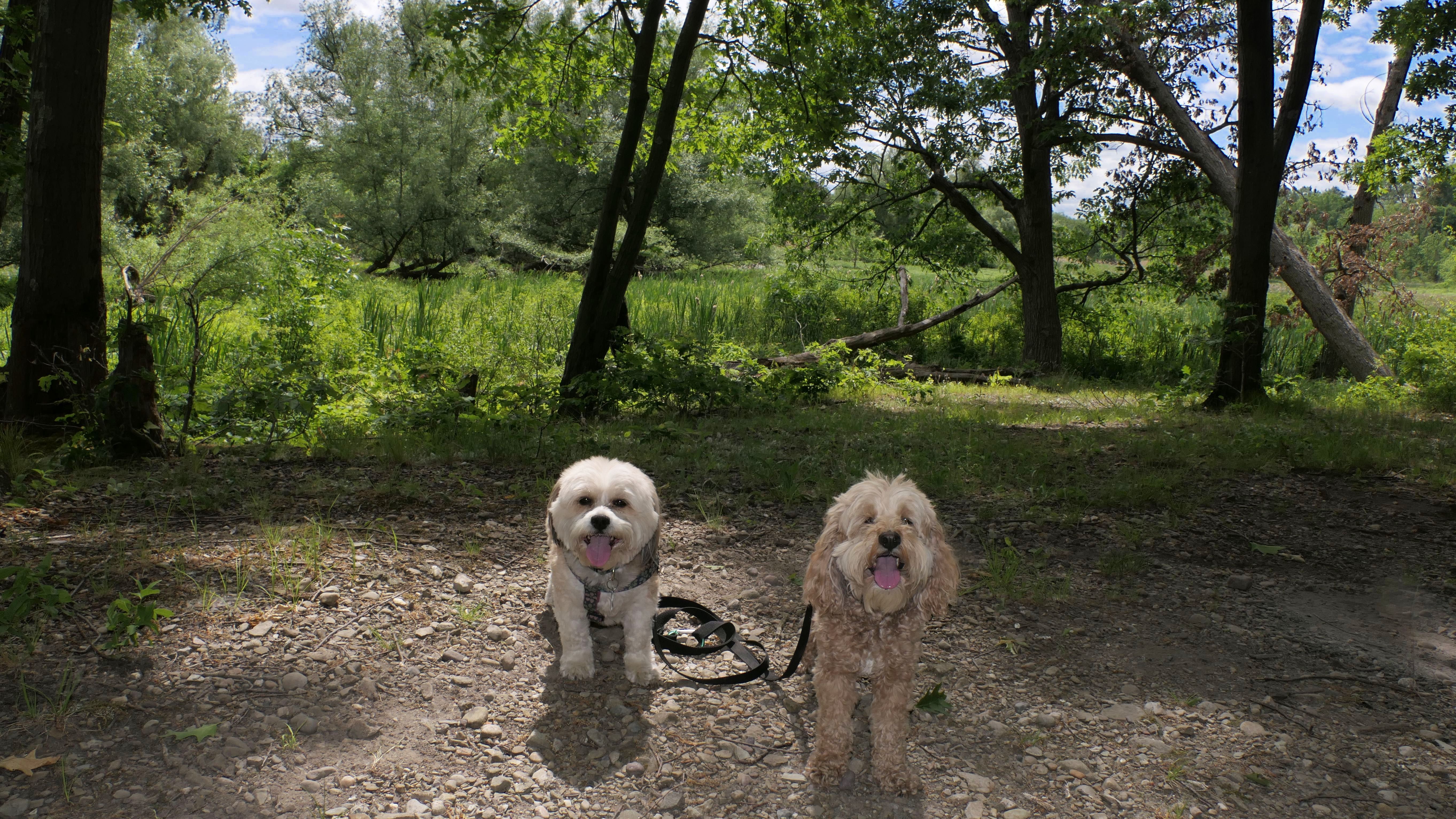 This is a pretty nice city park with a lot of open grassy areas. There are athletic fields and playgrounds as well, and a disc golf course. The park is situated on a large hill, and there are some scenic views of the city below. I took the opportunity to walk Mandy and Lexi through the sprinkler when no kids were using it. Normally they would hate that, but I think with the heat and humidity they enjoyed it today!