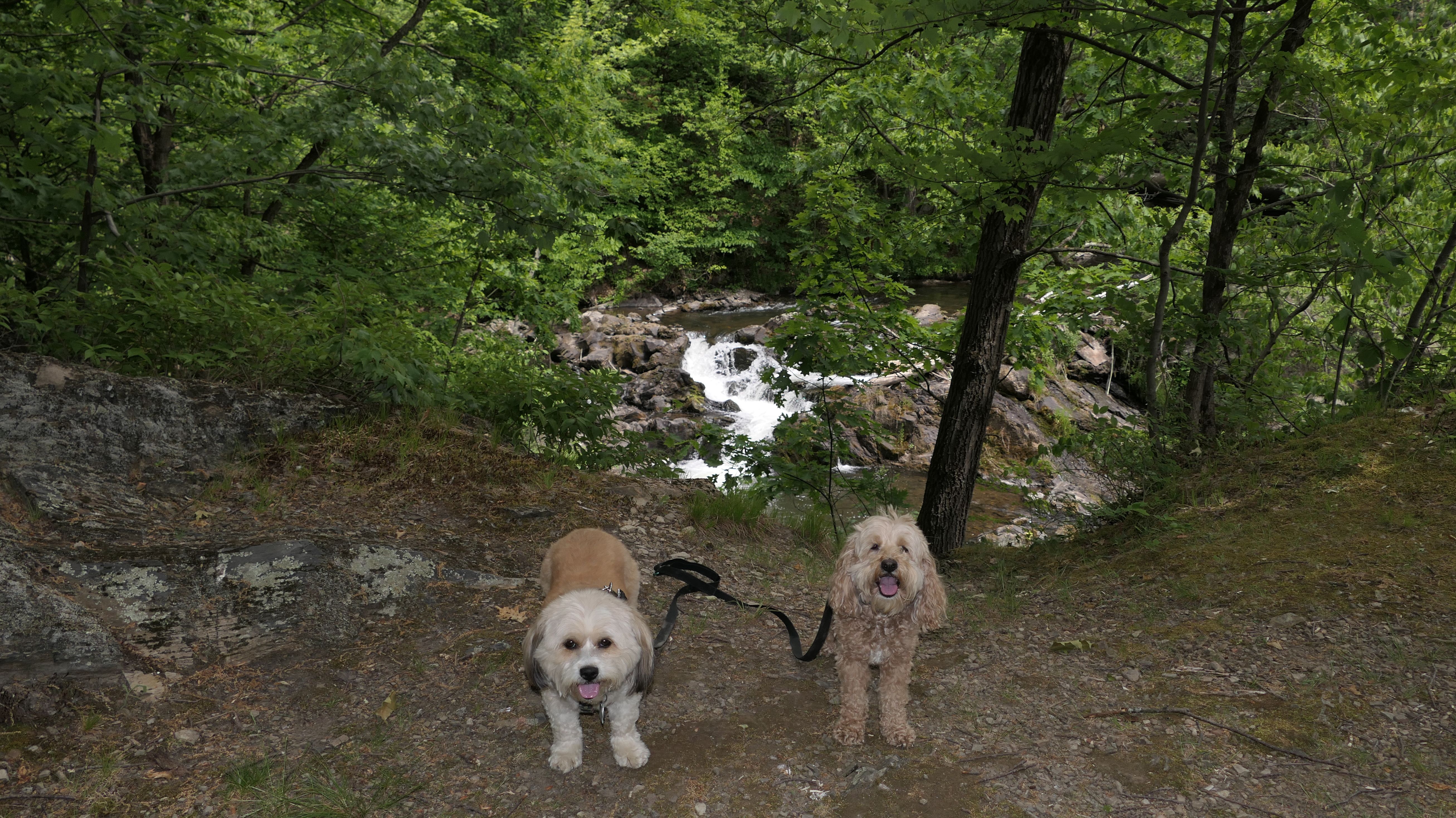 We escaped damp, cold, and dreary weather in Connecticut by going to Troy, NY, where it was less cold, damp and dreary. The sun was actually out for a bit. The trail here is a fun hike. It starts out behind the parking lot that it shares with a laundromat. There is a picnic area with views of the man made waterfall. The actual trail is a short distance away on the other side of the pond, and can be accessed via the sidewalk along the street. There are nice views of the marshy area around the pond. The trail follows the river which includes three different waterfalls. They are small and may even be classified as cascades, and not full fledged waterfalls. It was hard to photograph the waterfalls with the fully leaved trees blocking the view, and no real safe way to get down closer to the falls. Beyond the falls, the trail continues through the woods and patches of wildflowers. This section was slightly overgrown, but nothing we couldn't handle. There is a bench and a sign at the end of the trail, near the intersection of Project Road and Campbell Avenue. We then turned around and headed back, walking just shy of three miles total.
