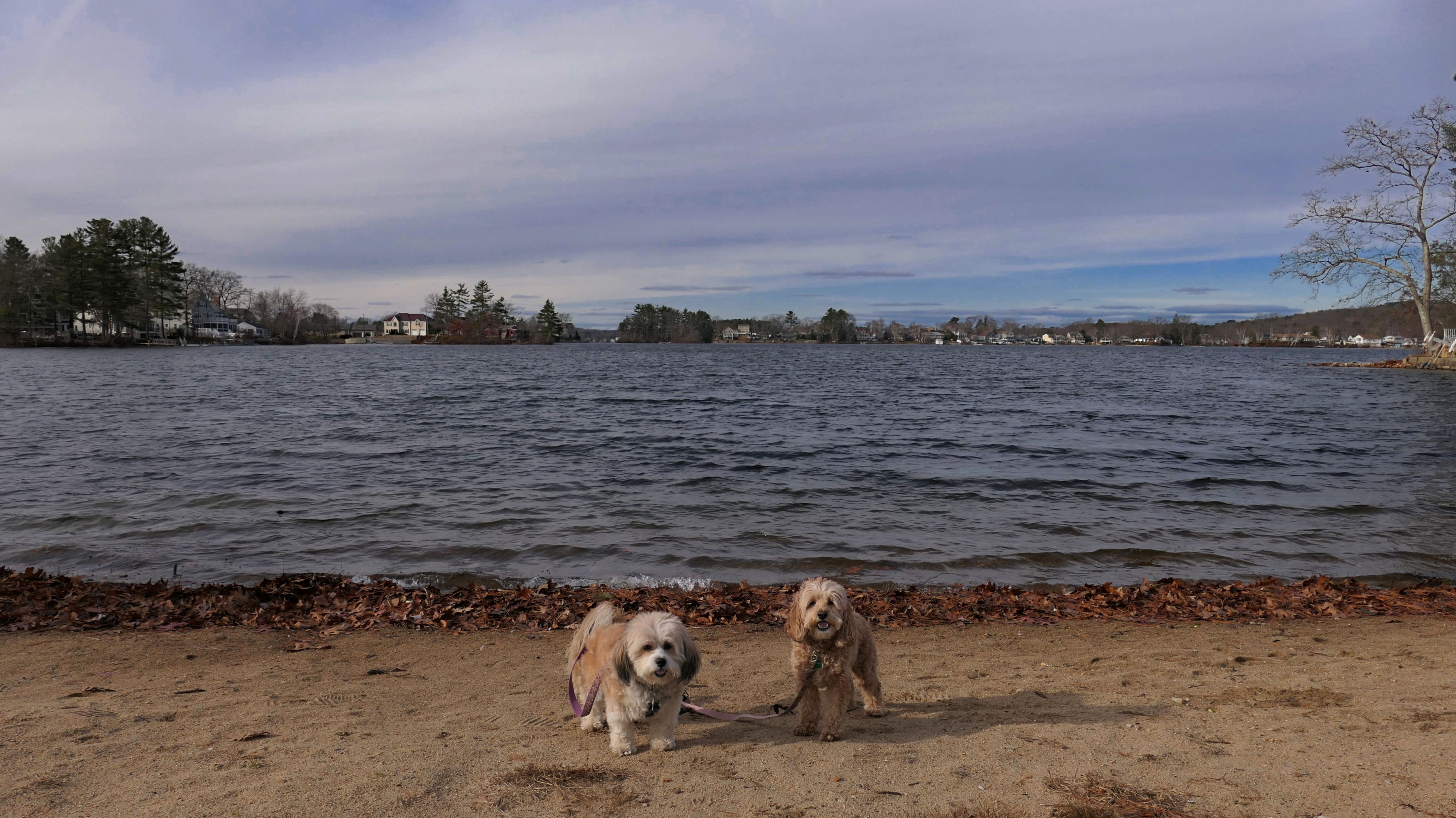 No, the cat did not sit on the keyboard. That is the name of this lake. I wanted to take the dogs here ever since I saw a concert at Indian Ranch in 2017. Unfortunately, there isn't much public access at this lake. There's a town beach, where dogs are not allowed, and a state managed boat launch. Since we were driving right by the lake on the way to the Southern New England Trunkline Trail, I decided to stop at the boat launch to take a couple pictures. I really just wanted to have Lake Chargoggagoggmanchauggagoggchaubunagungamaugg on this website! The lake is also known as Webster Lake, and the somewhat shorter name, Lake Chaubunagungamaug. There isn't any trail here or anything to do with the dogs really. Just the boat launch and a nice bench that overlooks the lake.