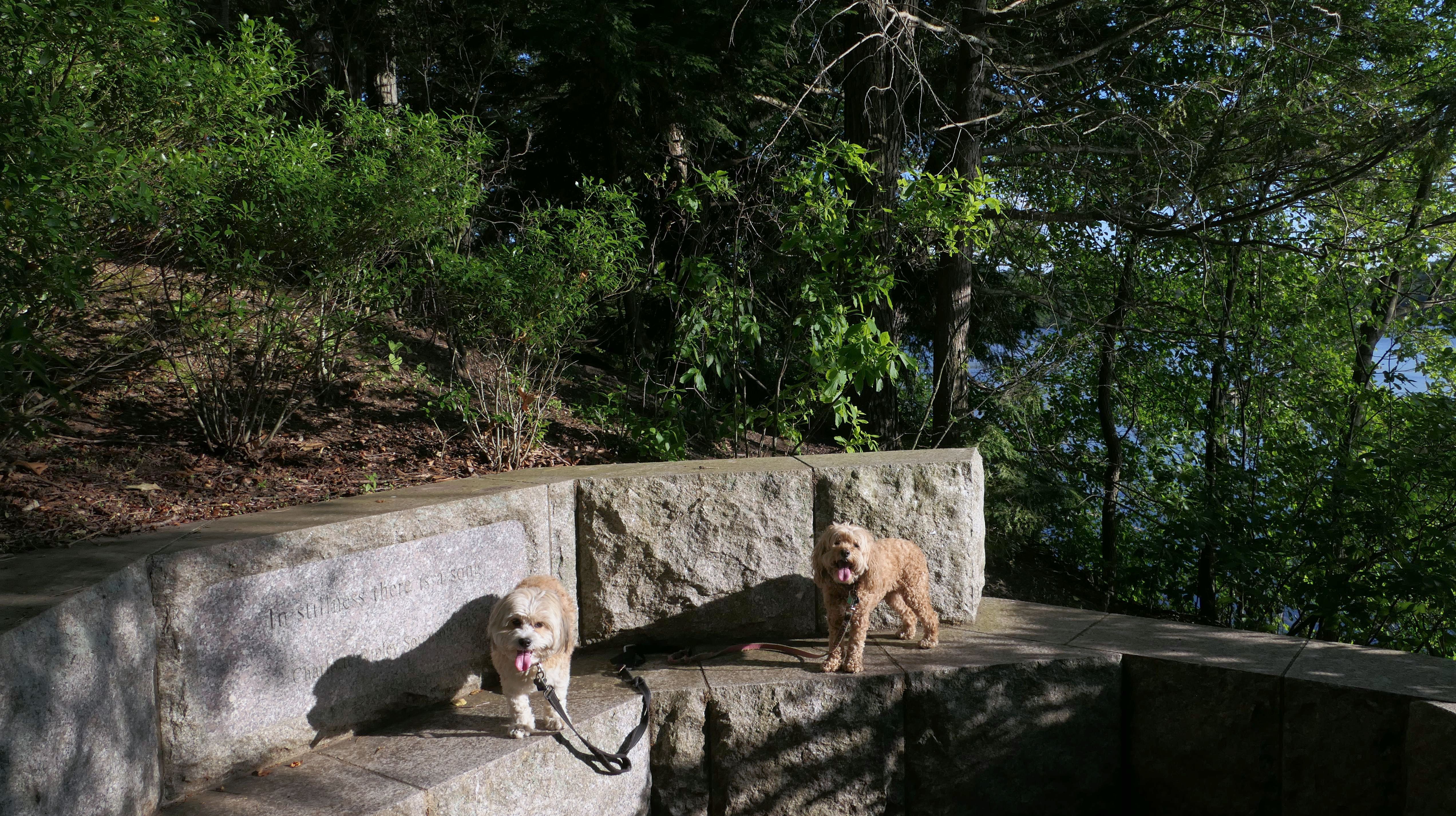 This is a college campus that features a number of walking paths that are open to the public. There are signs reminding walkers that it is private property, and that dogs must be leashed. We walked around half the campus, which features a lot of buildings that look like fancy churches! There is also a trail that runs along side Lake Waban. There are some observation platforms with nice views of the lake along the way. The trail continues along side the lake, until it reaches a fence with a gate and a sign indicating that the trail was closed from that point. It's too bad, because on my trail map it looked like the trail leads to the wonderful topiary garden that we saw from the observation platforms. It looks like it used to be open to the public at one point, because there was a sign indicating that dogs must be leashed beyond the fence. We looped back to Wellesley Square where we parked, walking a bit over 3 miles total. We only covered about half the campus, so it's possible we'll return at a later date to check out the rest.