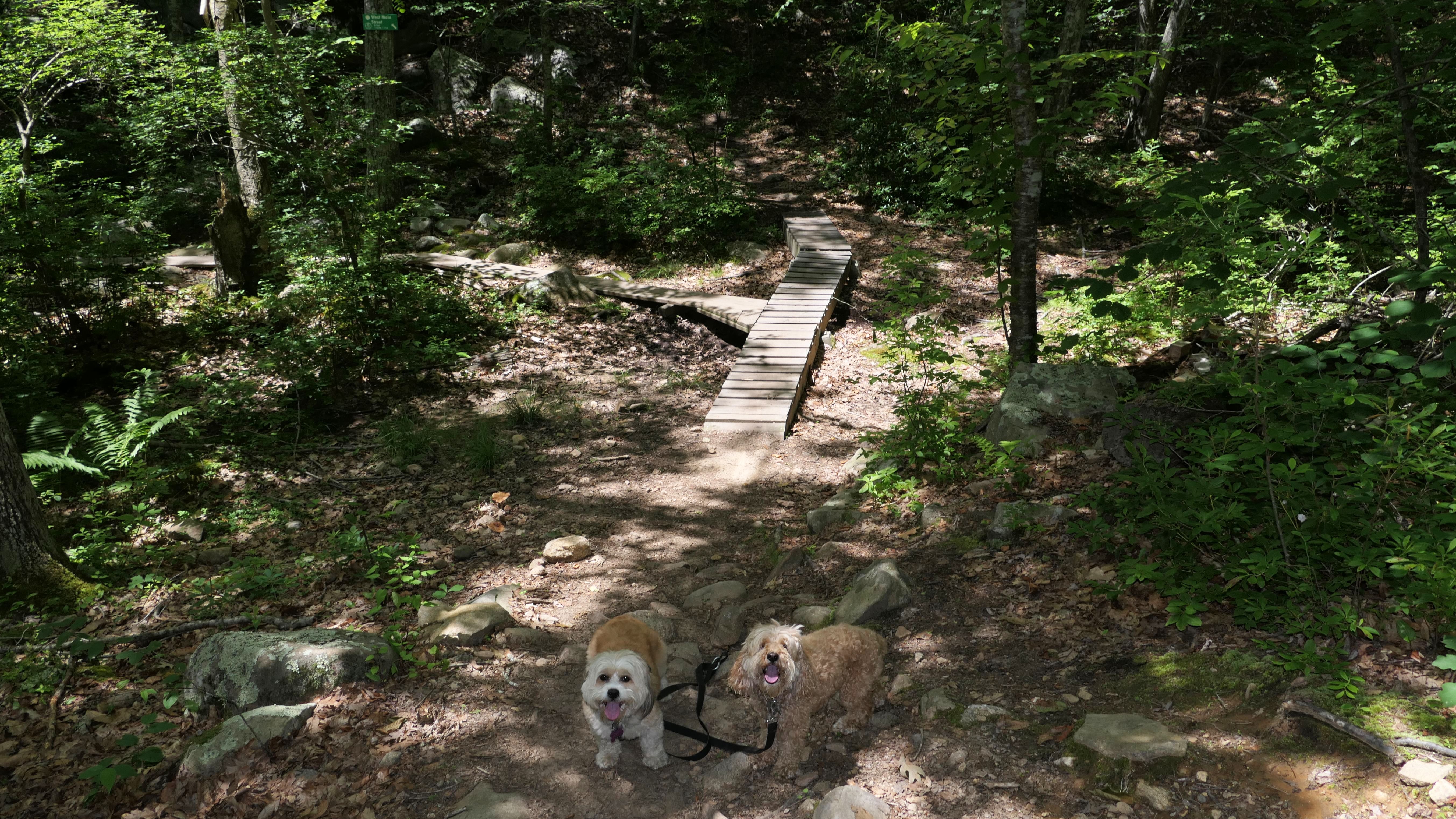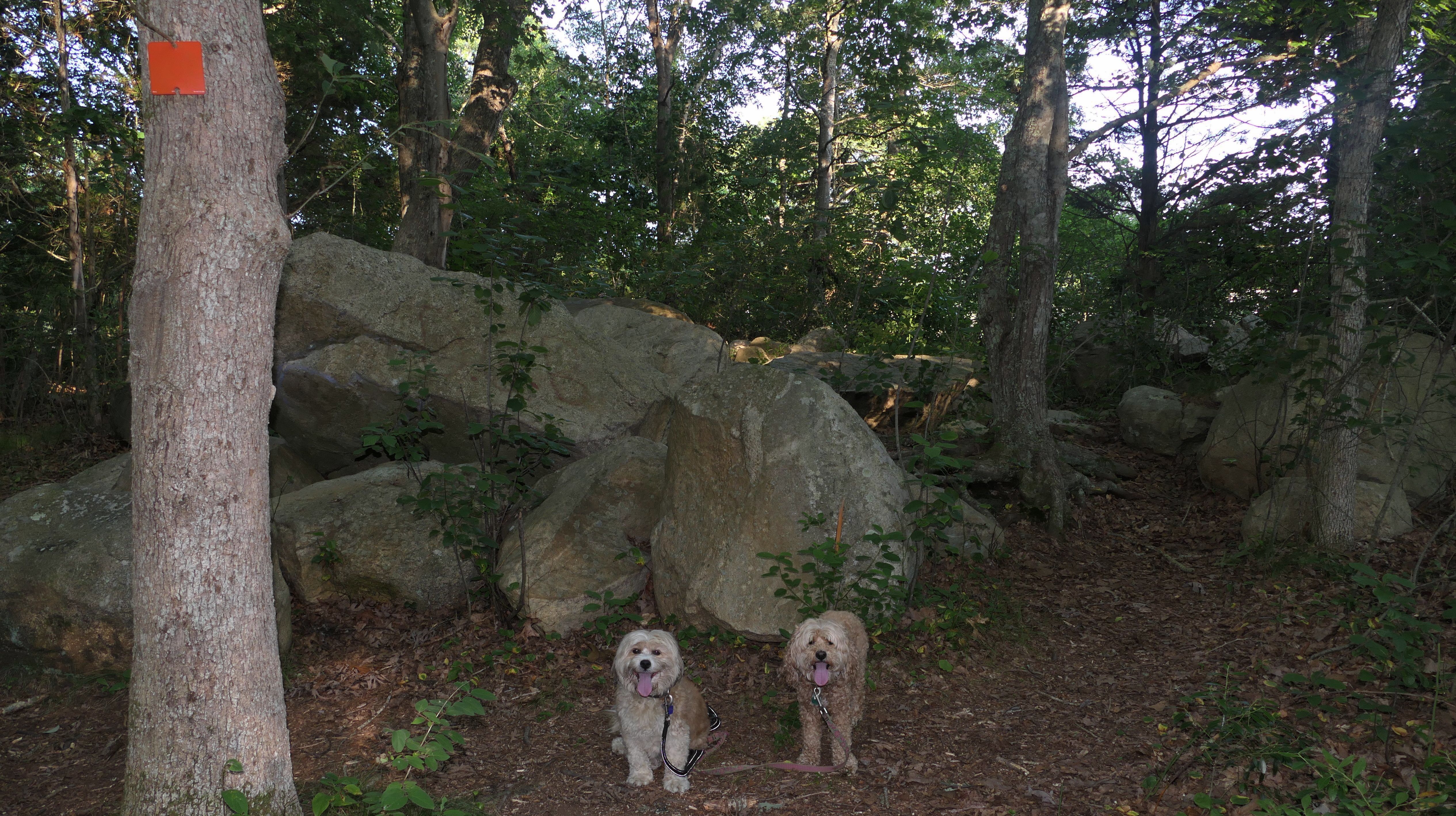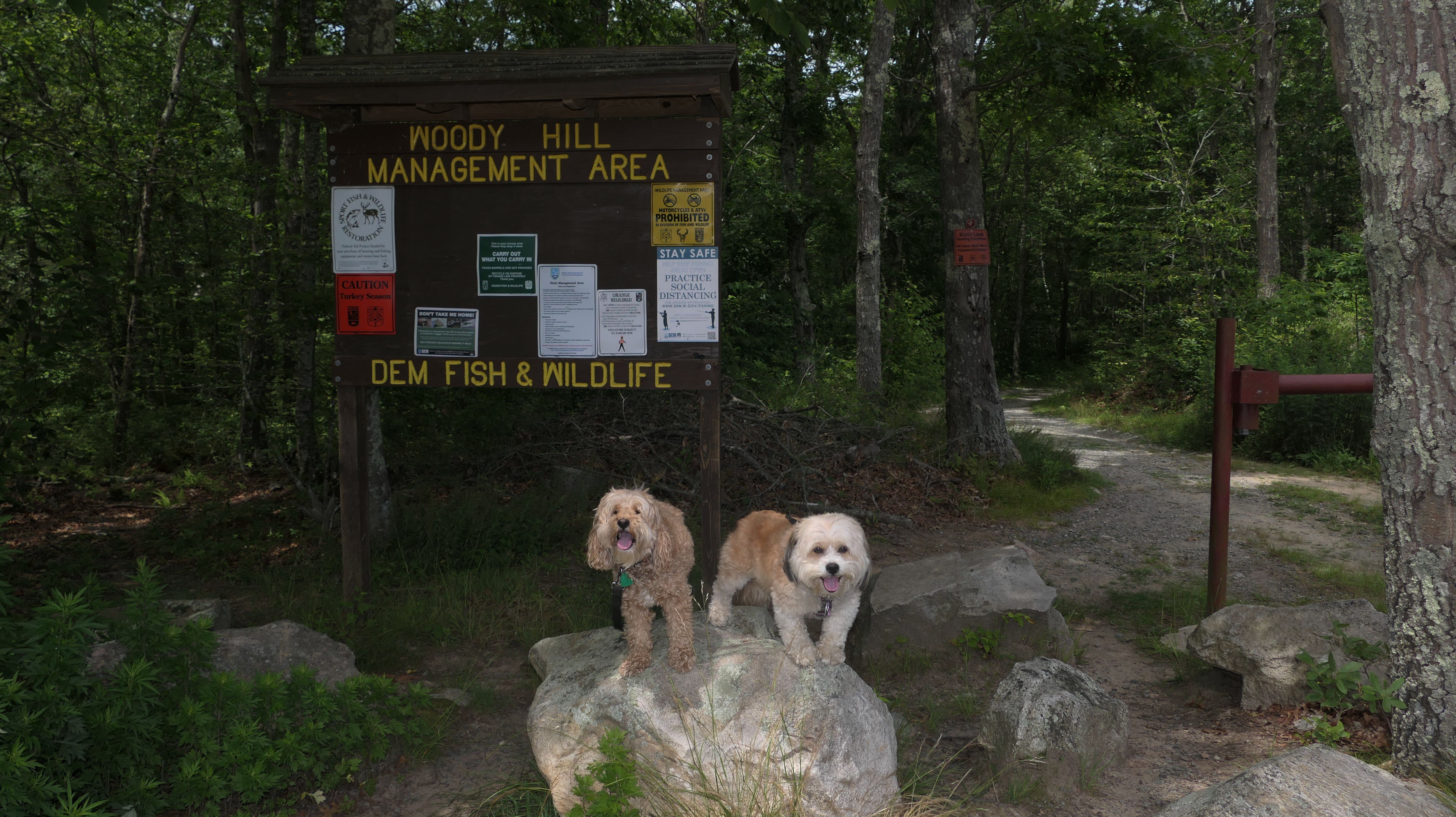 Hunting seems to be huge in this state and this is one of many management areas in Rhode Island. I think the hunting season goes for nine months of the year in Rhode Island. We visited outside of hunting season, but could still here gun fire off in the distance. Aside from hunting, this is a popular area for mountain bikes. Many of the trails here are geared toward mountain biking. As for our hike, we hiked a 2.5 mile loop trail that wasn't very interesting. I was hoping the pond I saw on the map would be better, and that maybe the dogs could cool off in it, but it was more of a swamp than a pond and pretty mucky. The trail was an okay walk in the woods, but not particularly memorable.
