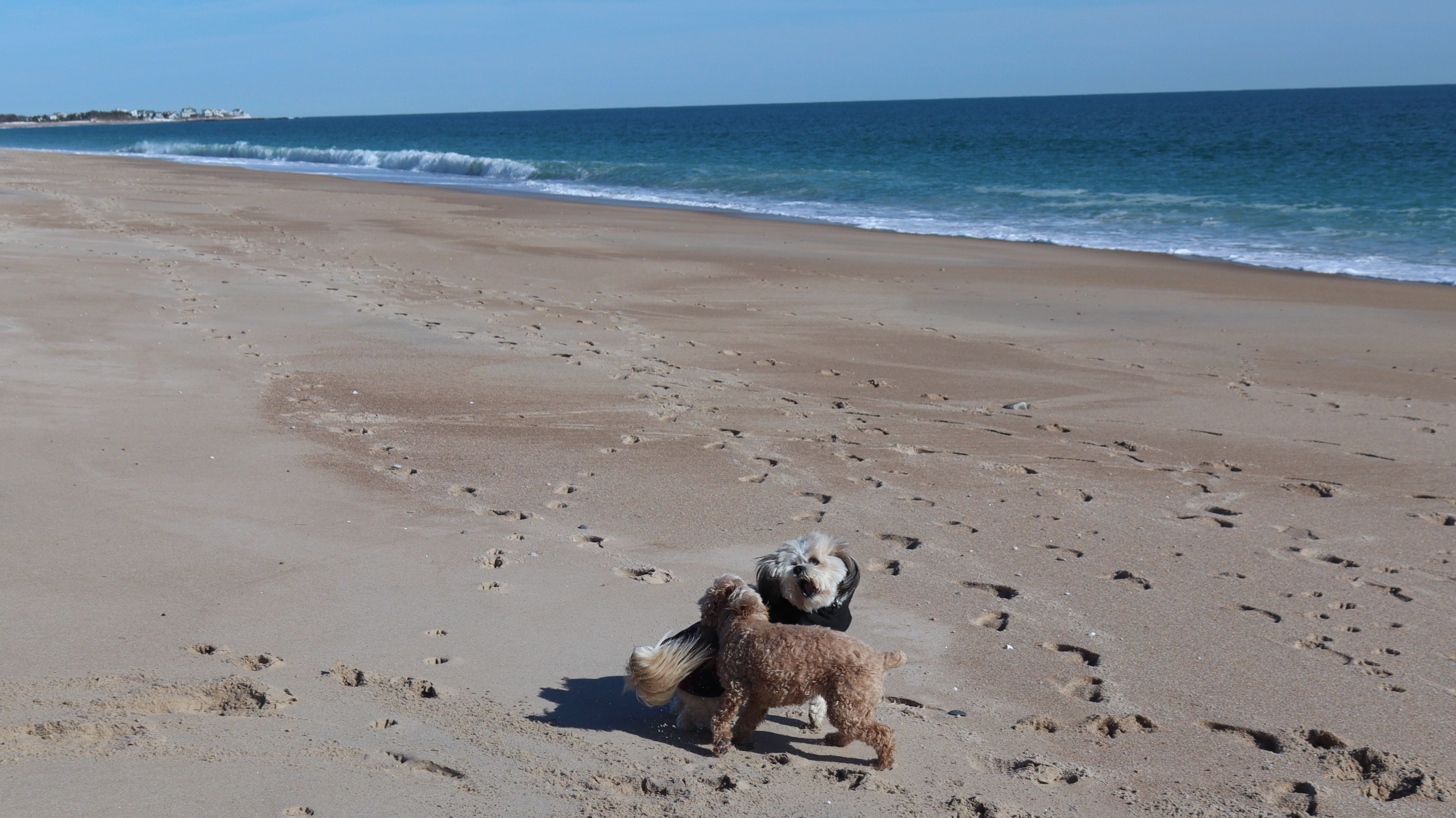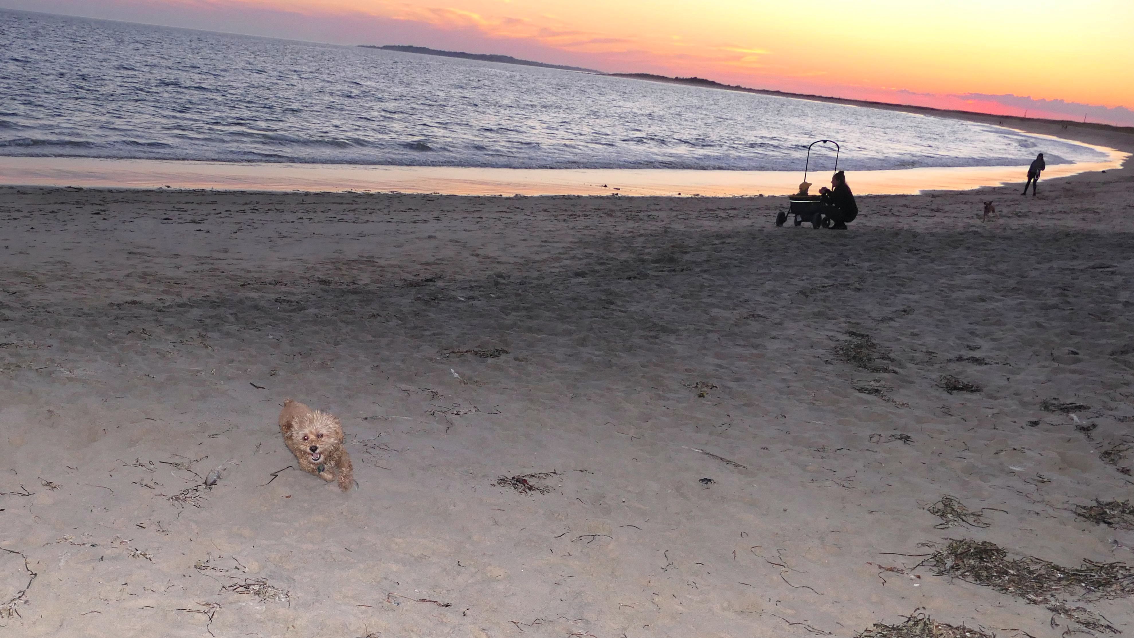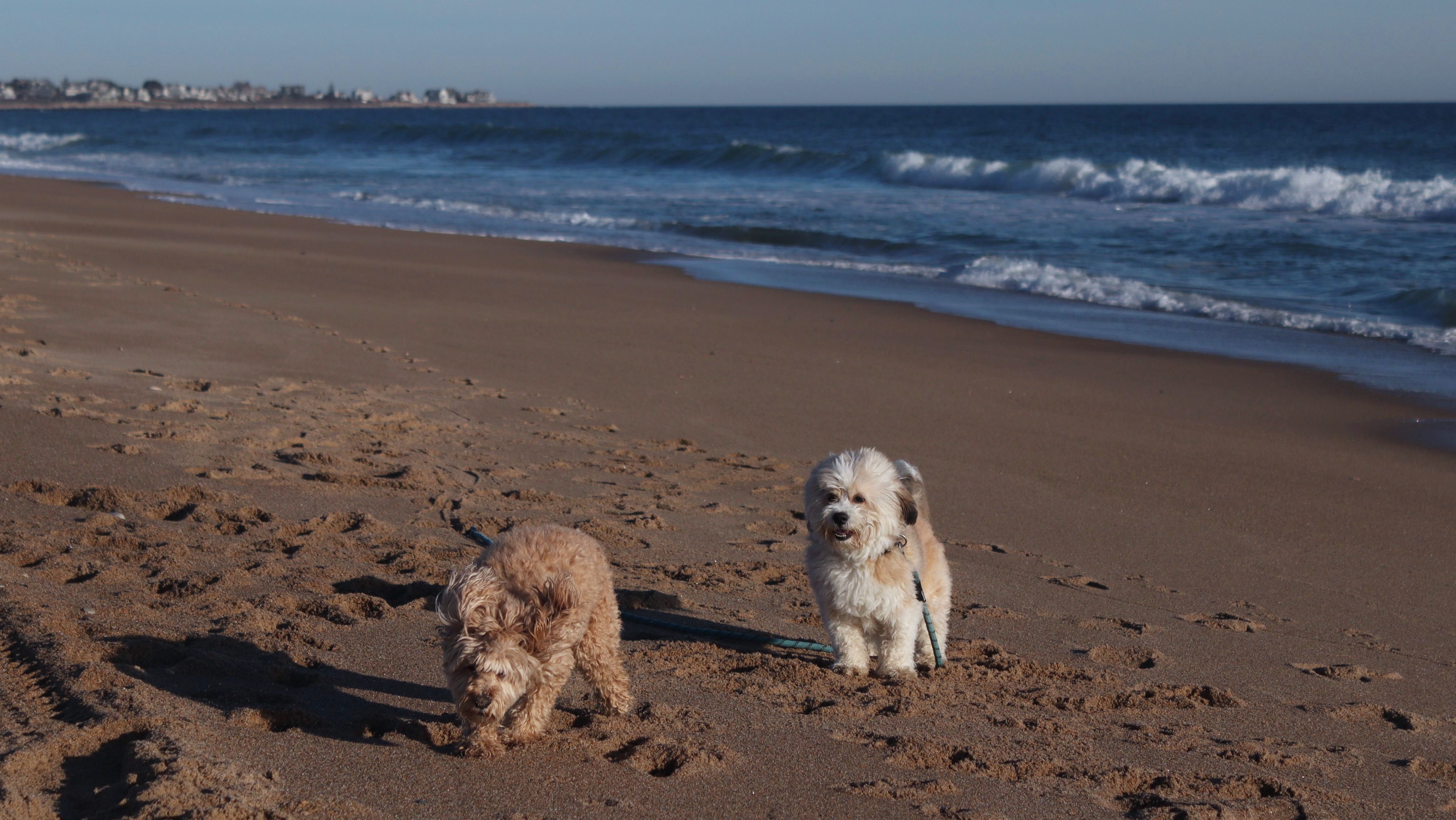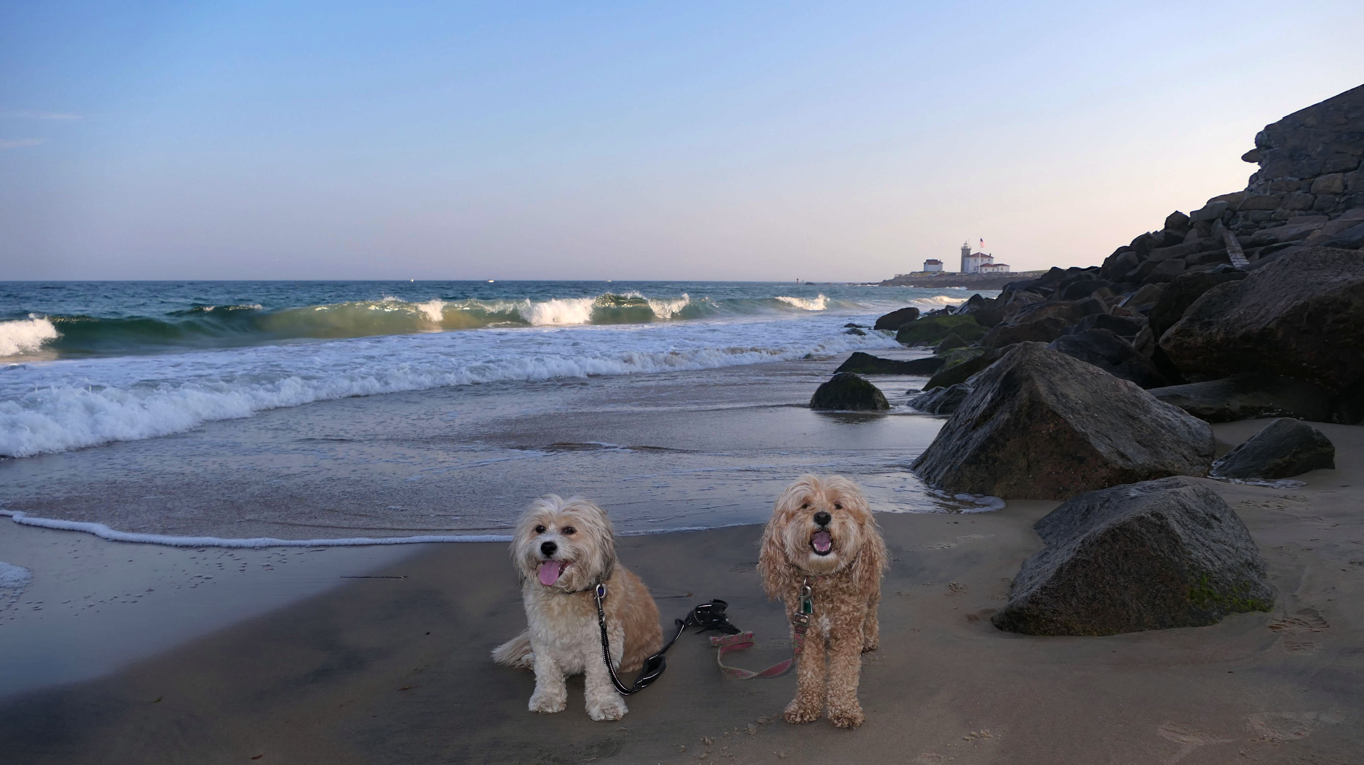This is a small beach, wedged in between Napatree Point Conservation Area and the Watch Hill Lighthouse. I'm pretty sure this is a "private" beach for Watch Hill Association members. There is an entrance near the carousel that is completely closed off and gated in the off-season. We reached the beach via a short trail from Napatree. The waves were absolutely ripping, as it had stormed most of the day and was still very windy at the shore. We came here after our Wilcox Park adventure, and arrived just in time to enjoy a beautiful sunset. On our walk back, the dogs decided it was playtime. They seem to enjoy the beach so much!