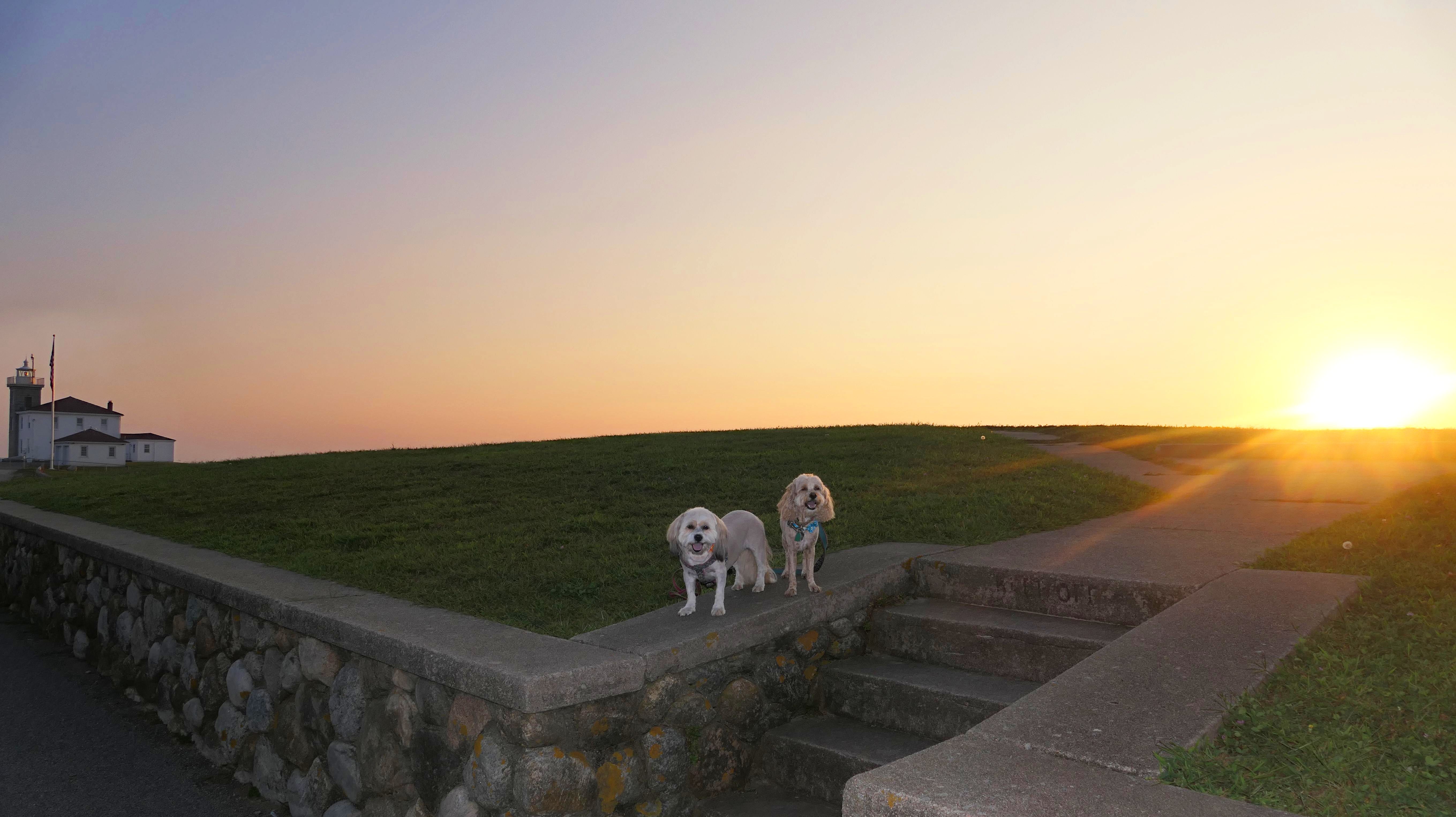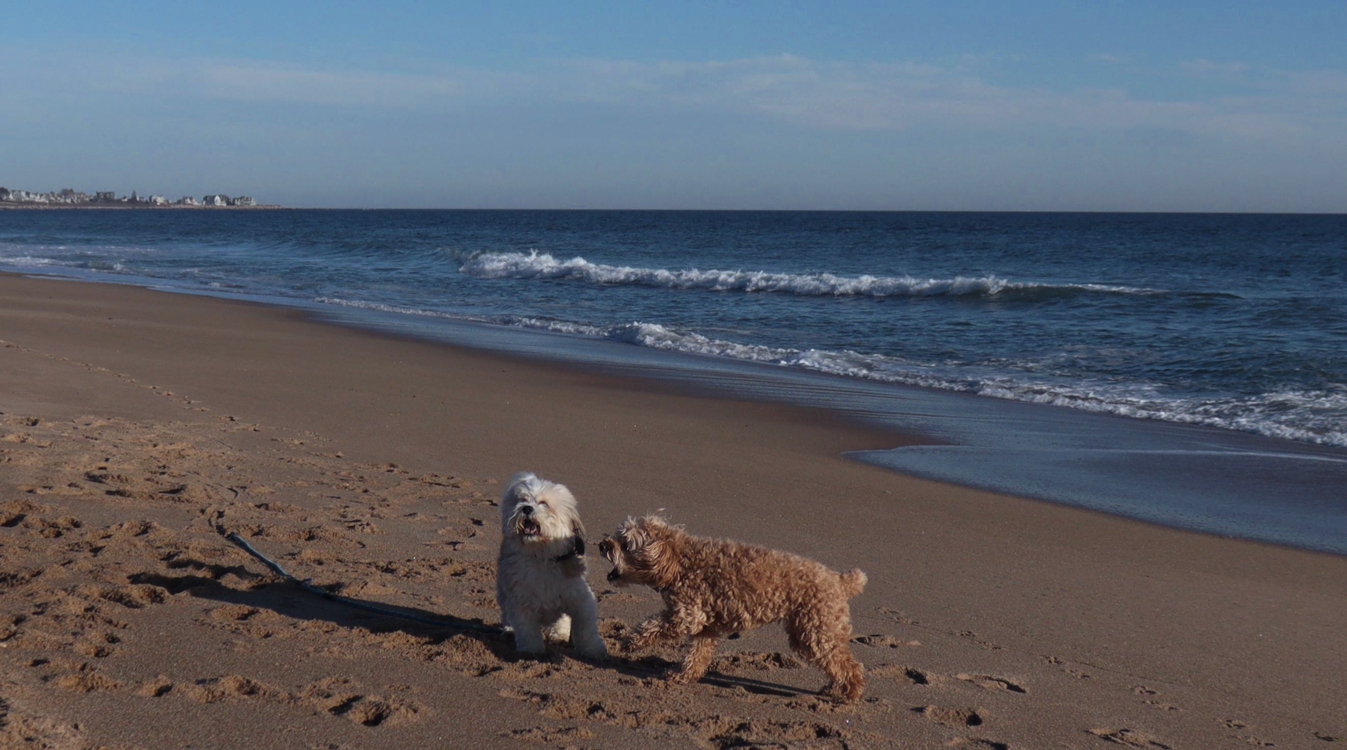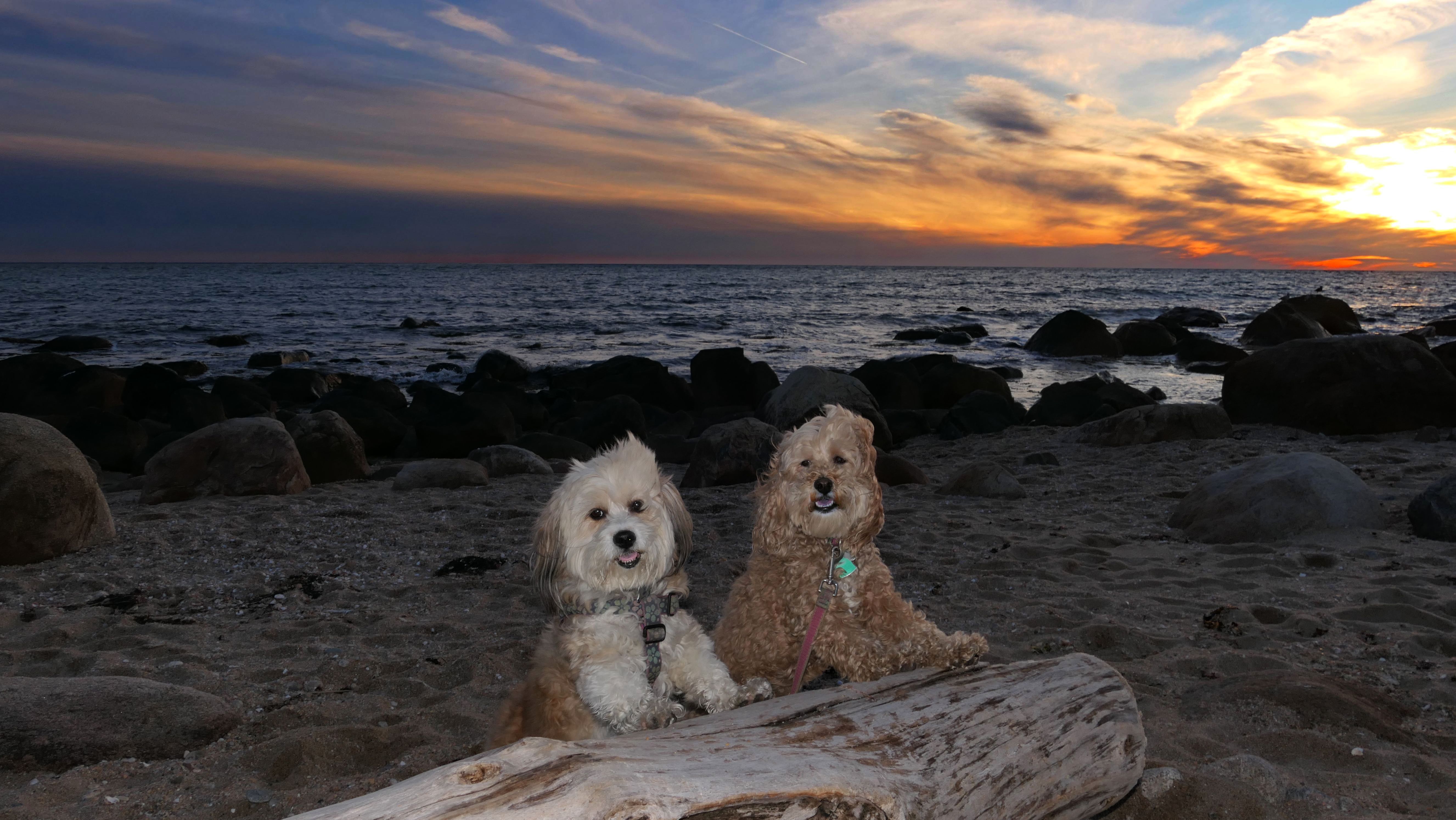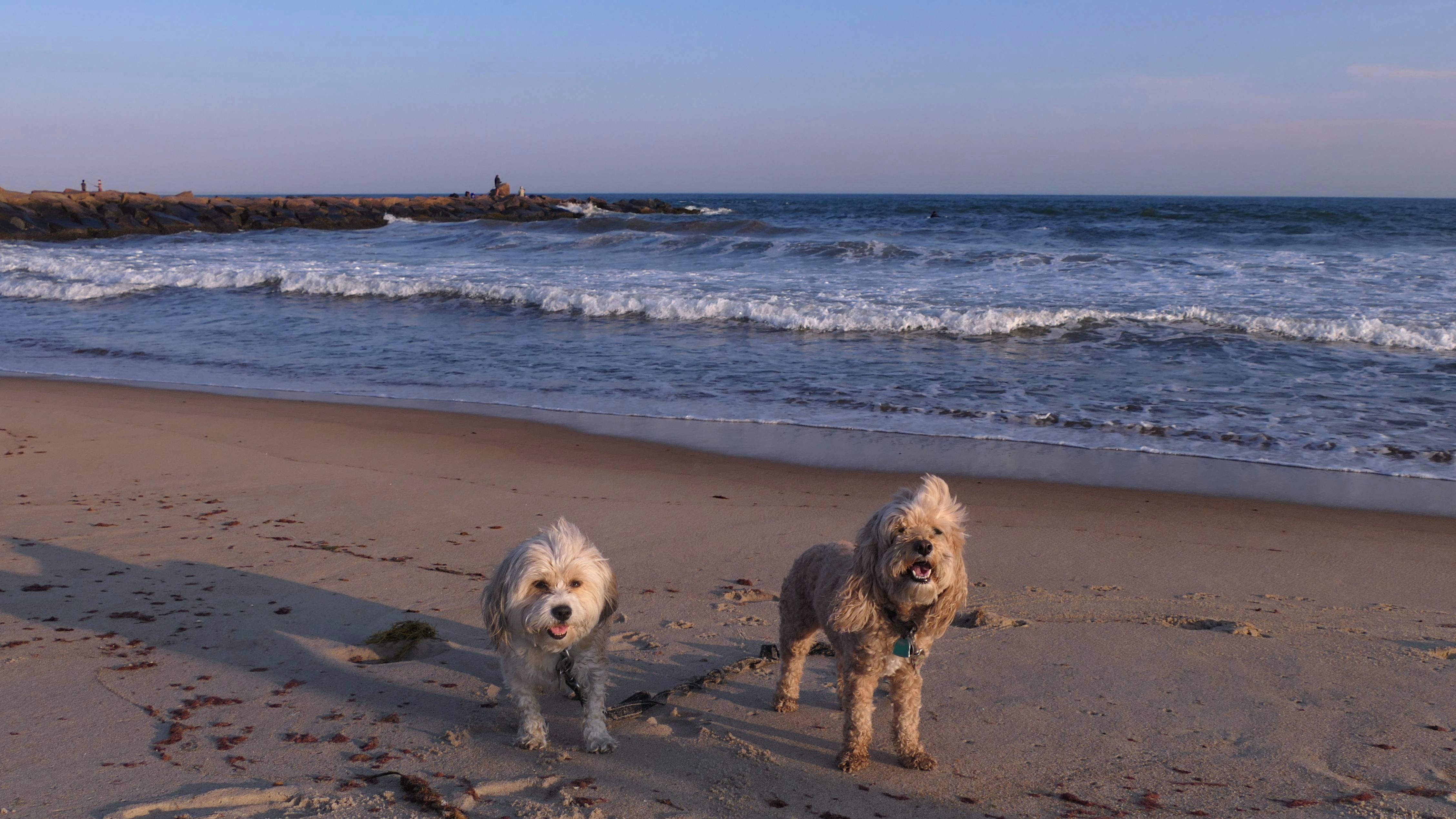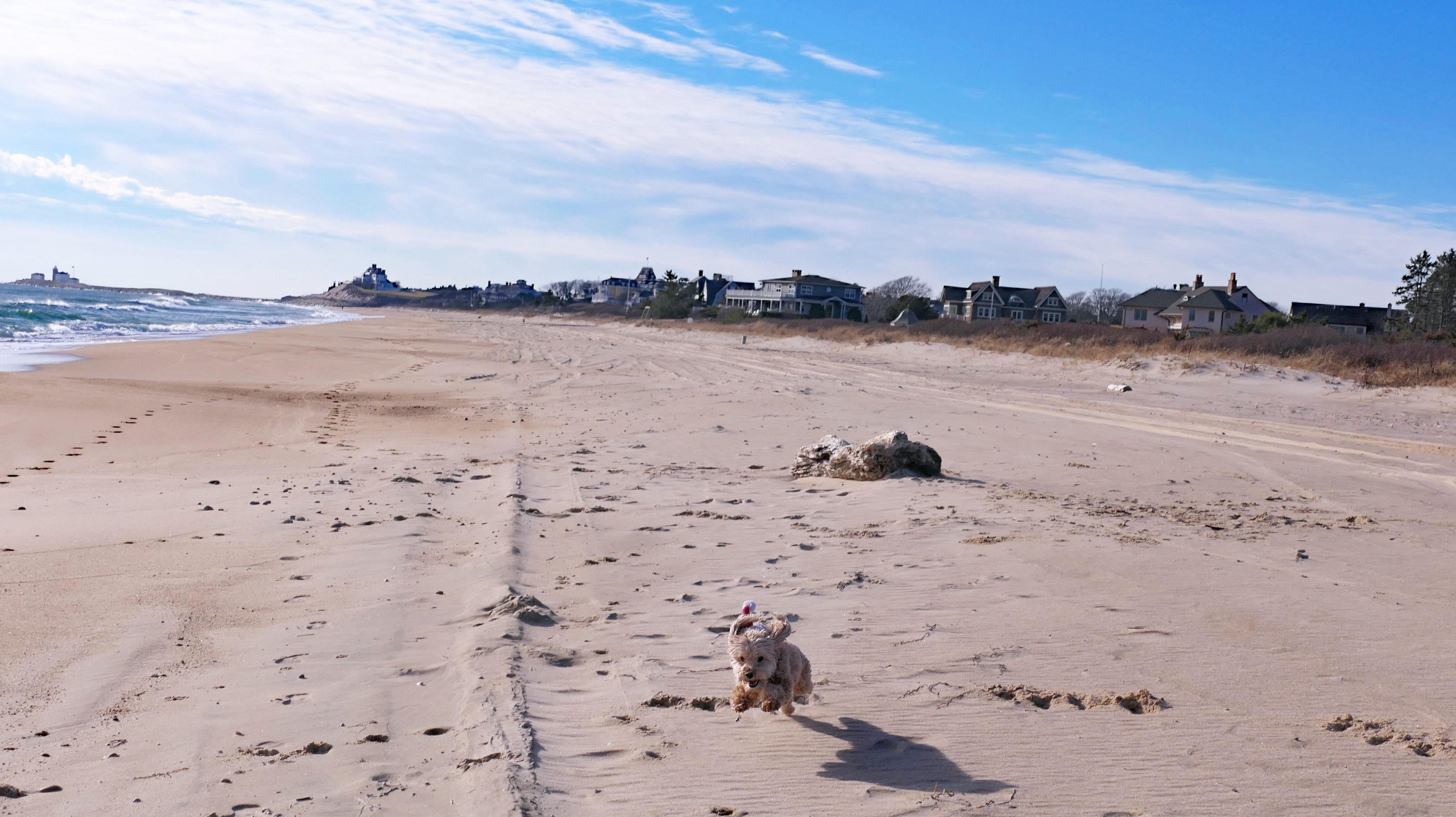 This is a small beach, wedged in between Napatree Point Conservation Area and the Watch Hill Lighthouse. I'm pretty sure this is a "private" beach for Watch Hill Association members. There is an entrance near the carousel that is completely closed off and gated in the off-season. We reached the beach via a short trail from Napatree. The waves were absolutely ripping, as it had stormed most of the day and was still very windy at the shore. We came here after our Wilcox Park adventure, and arrived just in time to enjoy a beautiful sunset. On our walk back, the dogs decided it was playtime. They seem to enjoy the beach so much!
