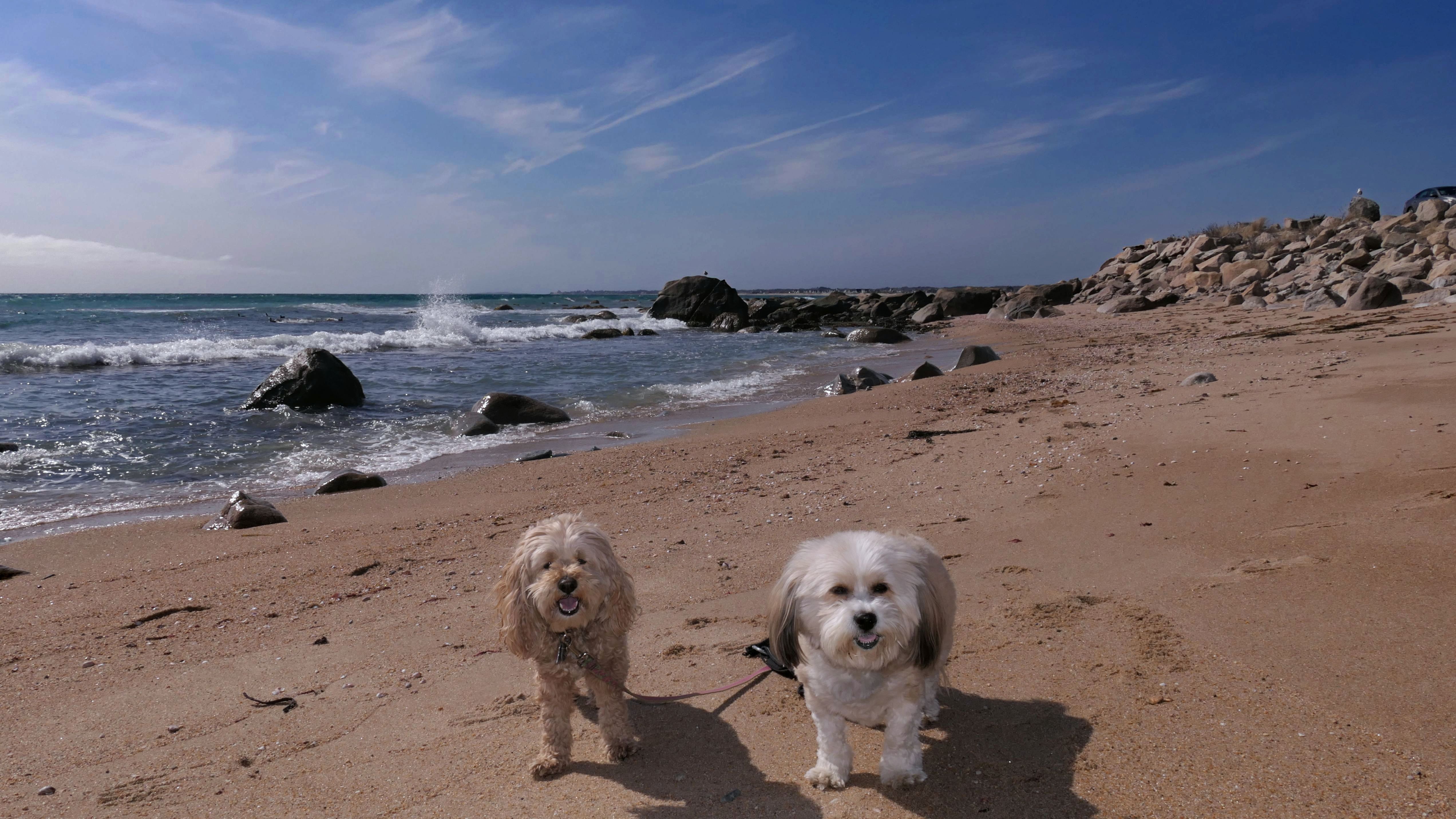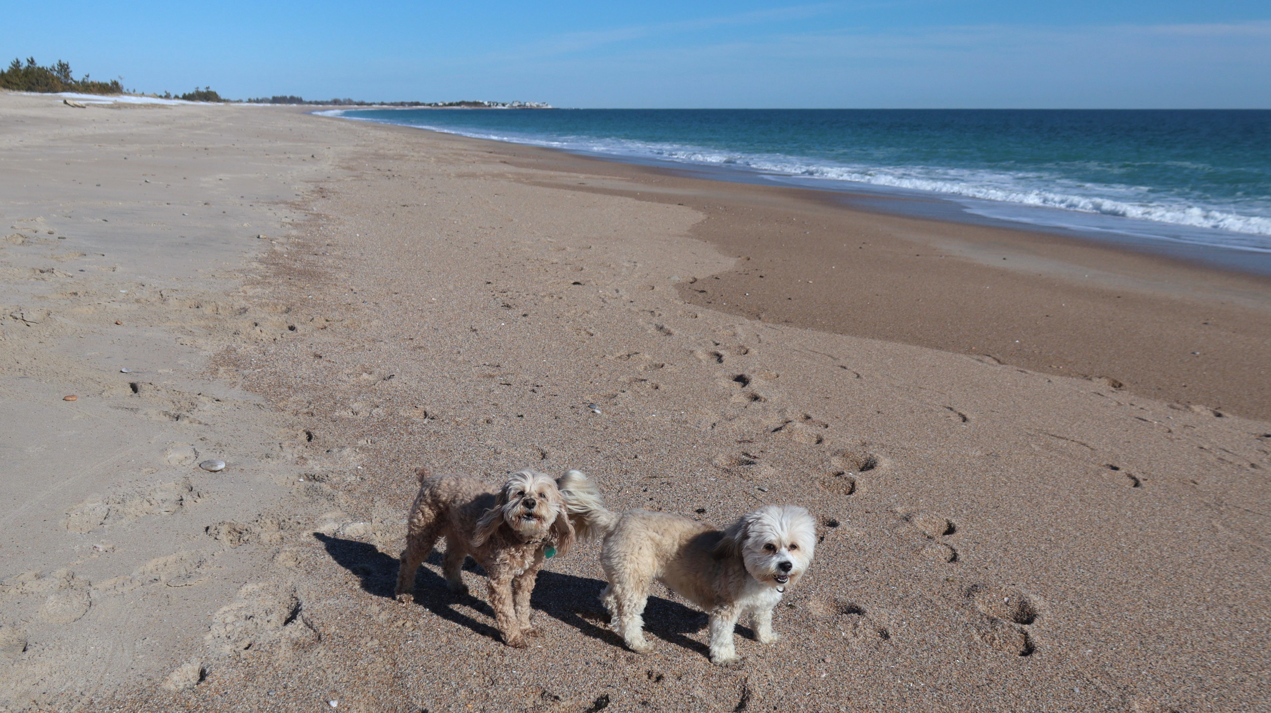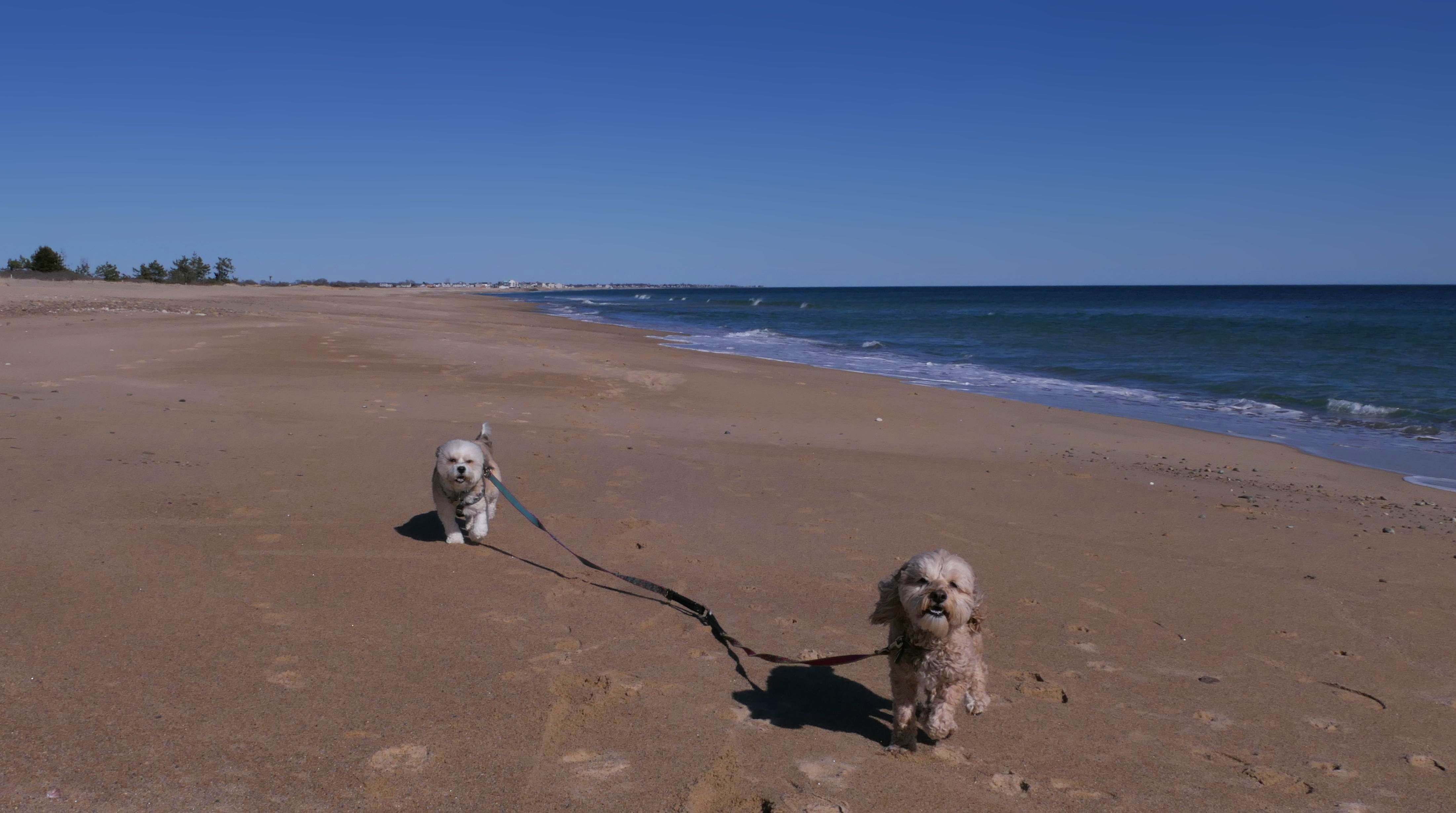 This is a public beach in the Watch Hill section of Westerly. The "Watch Hill Lighthouse Village Loop" in the All-Trails app utilizes a short section of this beach. There's a sign that says "No Pets", but you can ignore it. There is another sign that specifies that dogs are allowed in the off-season any time, and before 8 AM and after 6 PM during the summer months (May 2nd through Labor Day). This corresponds to what it says on the Town of Westerly's website. There's no dedicated parking for this beach. You have to park at Watch Hill and then access it through one of the right-of-way paths. We visited here a second time, and walked more of the beach. It's about two miles long and we probably walked about half of the total length before turning around. This time, it was an usually warm day in April. It had made it up to 90 degrees inland, but down here it was about 15 degrees cooler (just like the summer), and was very nice.