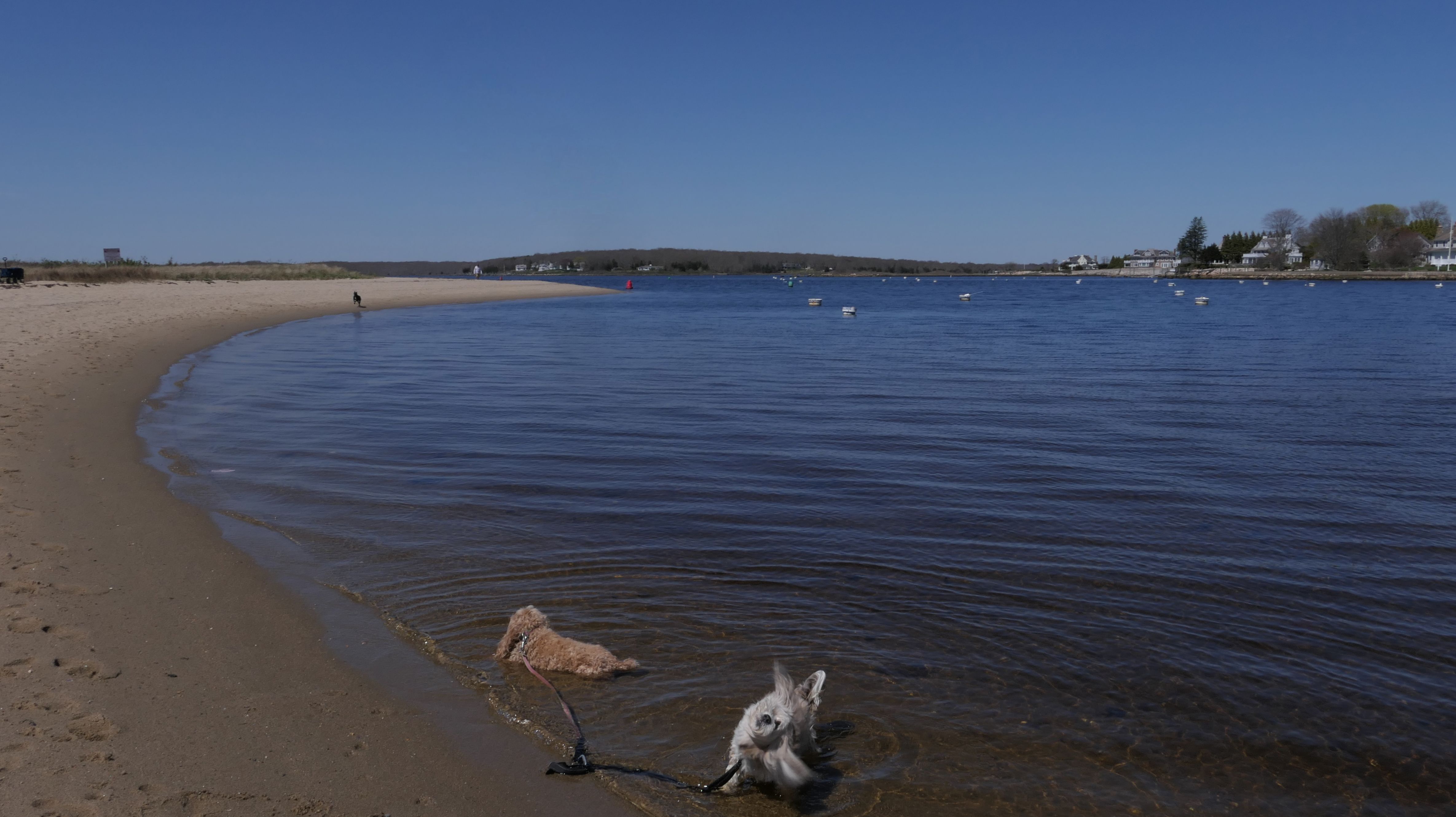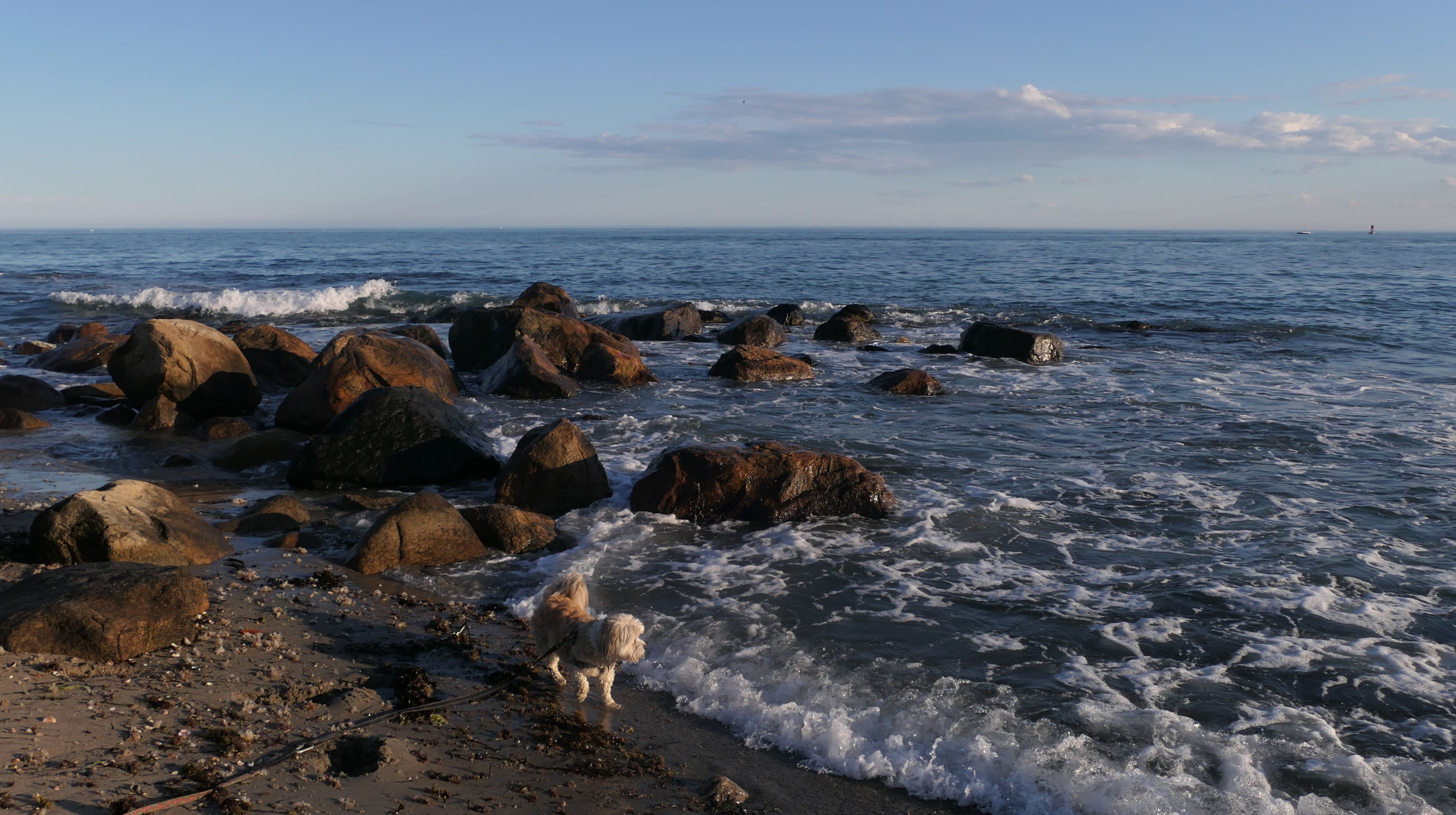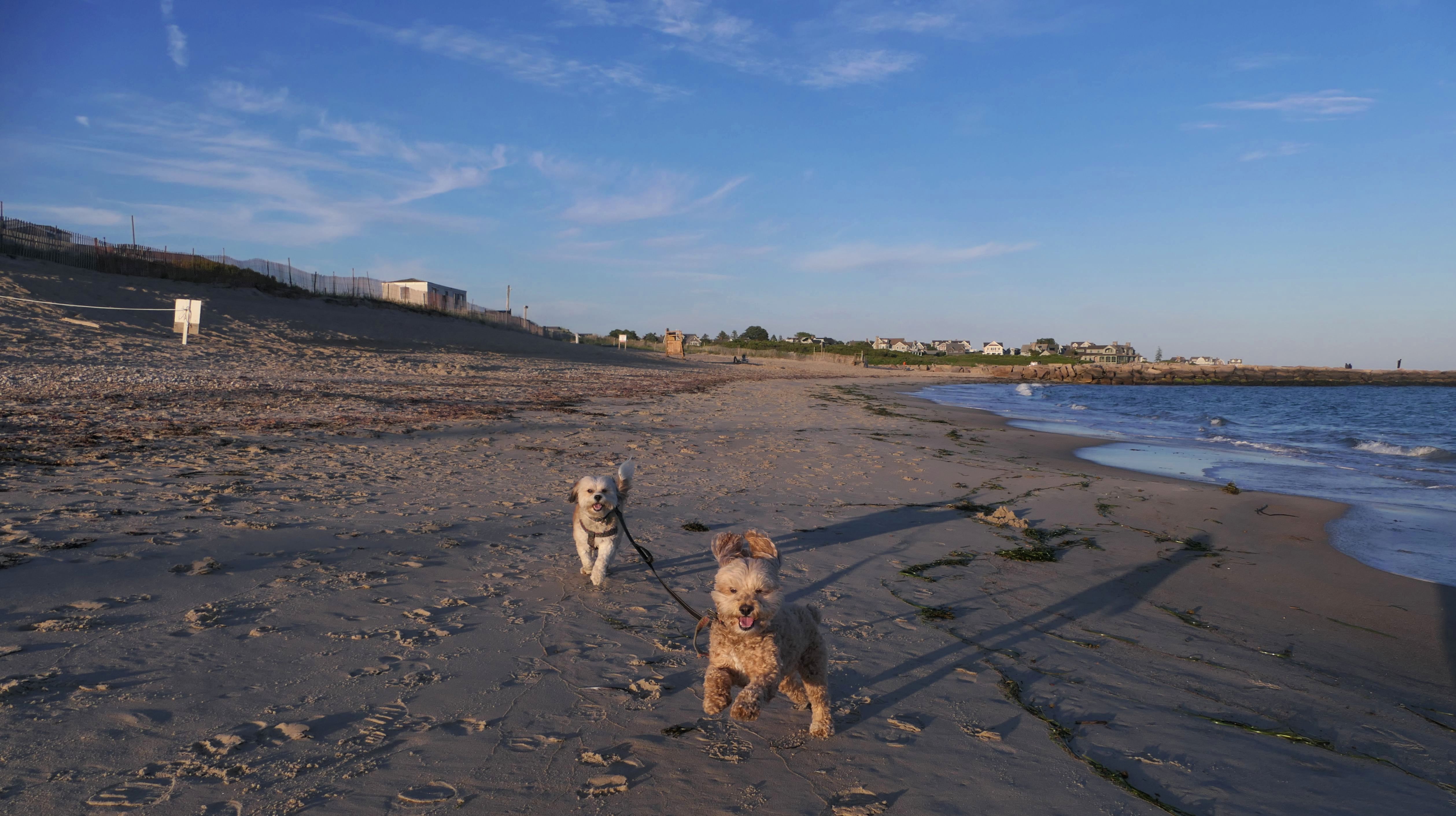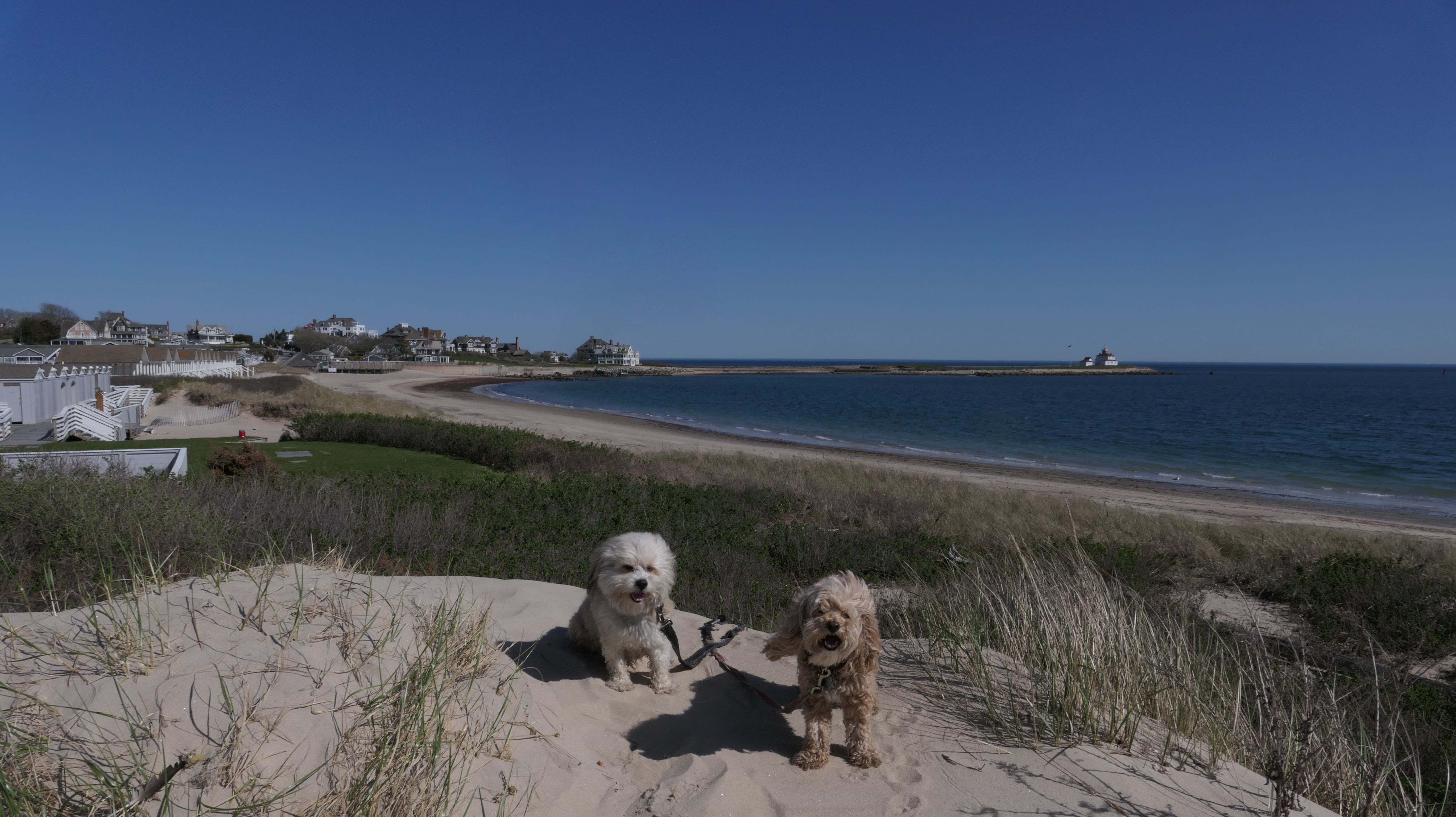 This is a public beach in the Watch Hill section of Westerly. The "Watch Hill Lighthouse Village Loop" in the All-Trails app utilizes a short section of this beach. There's a sign that says "No Pets", but you can ignore it. There is another sign that specifies that dogs are allowed in the off-season any time, and before 8 AM and after 6 PM during the summer months (May 2nd through Labor Day). This corresponds to what it says on the Town of Westerly's website. There's no dedicated parking for this beach. You have to park at Watch Hill and then access it through one of the right-of-way paths. We visited here a second time, and walked more of the beach. It's about two miles long and we probably walked about half of the total length before turning around. This time, it was an usually warm day in April. It had made it up to 90 degrees inland, but down here it was about 15 degrees cooler (just like the summer), and was very nice.