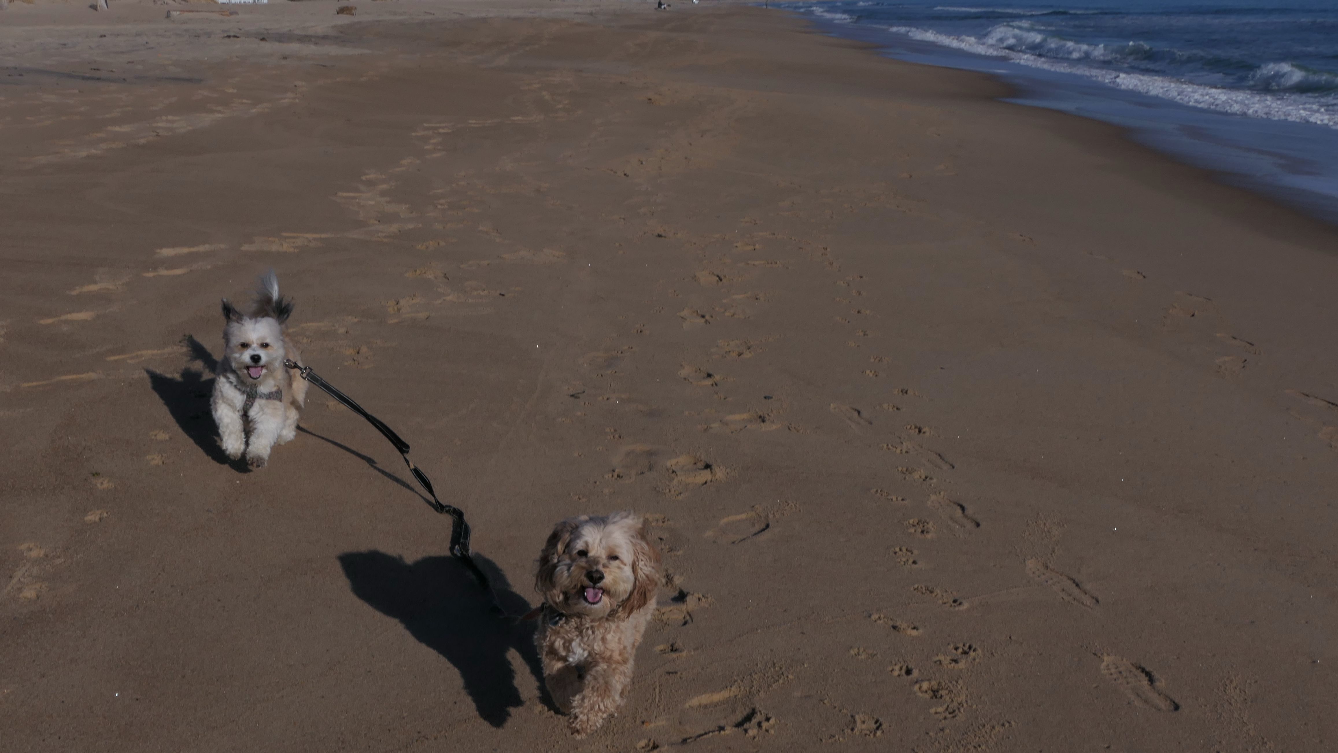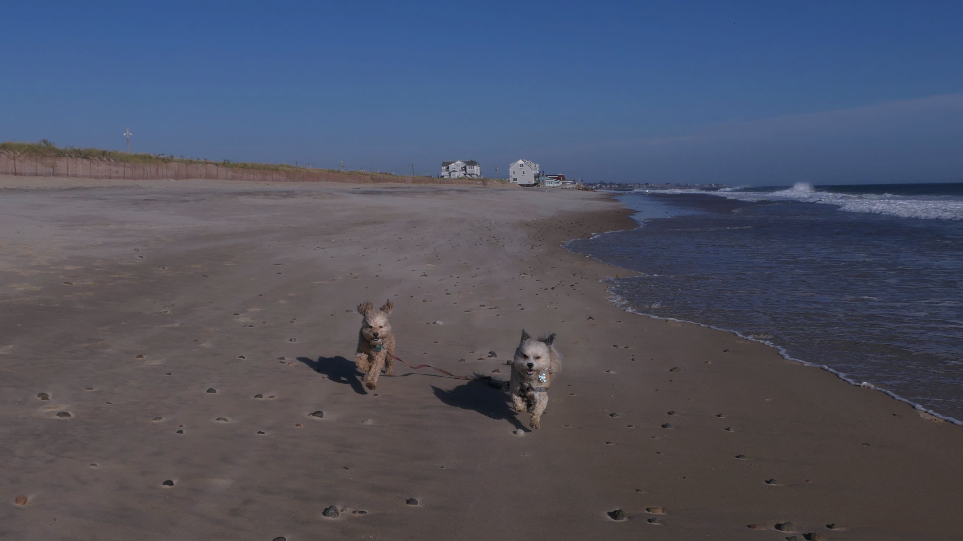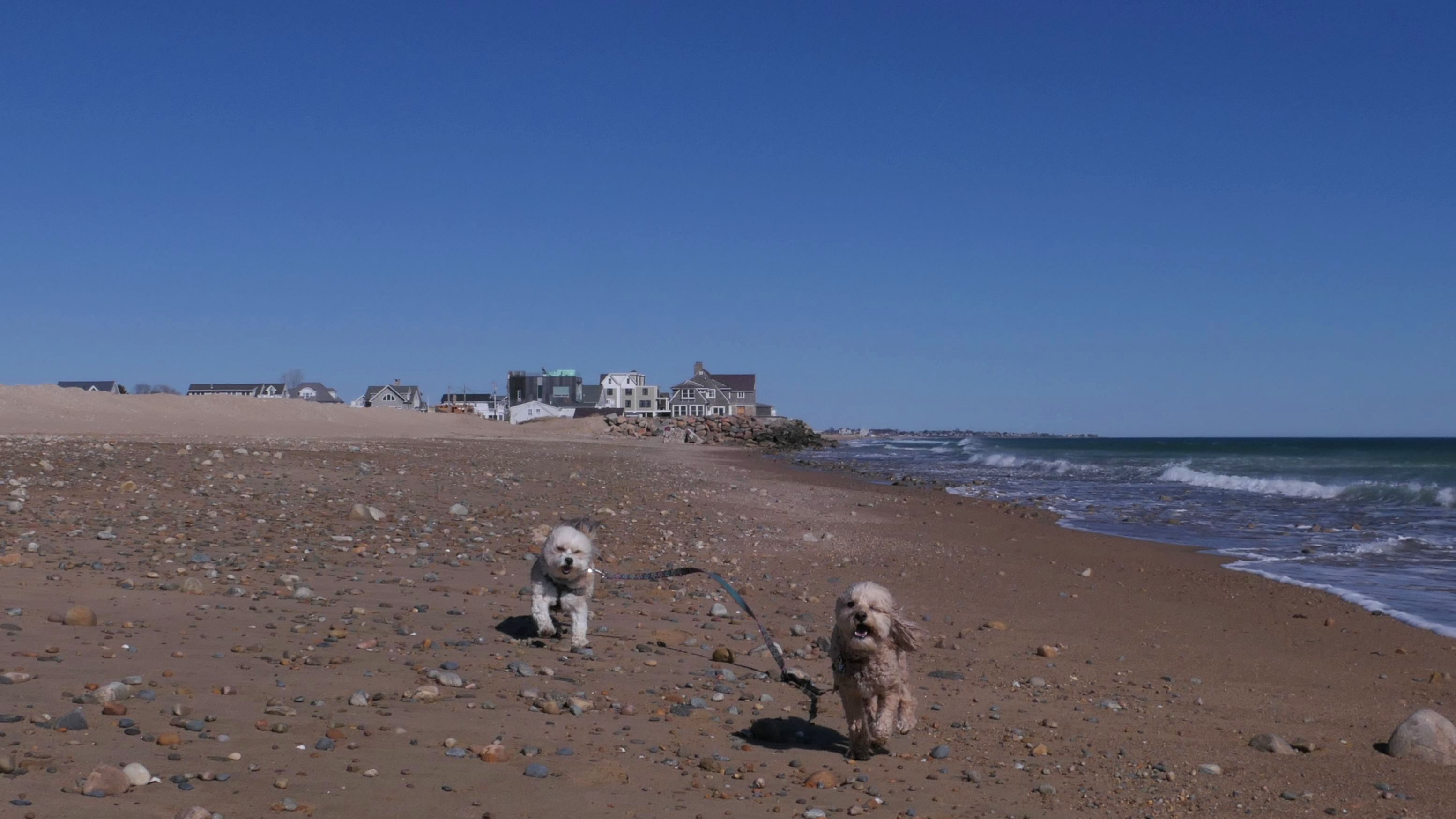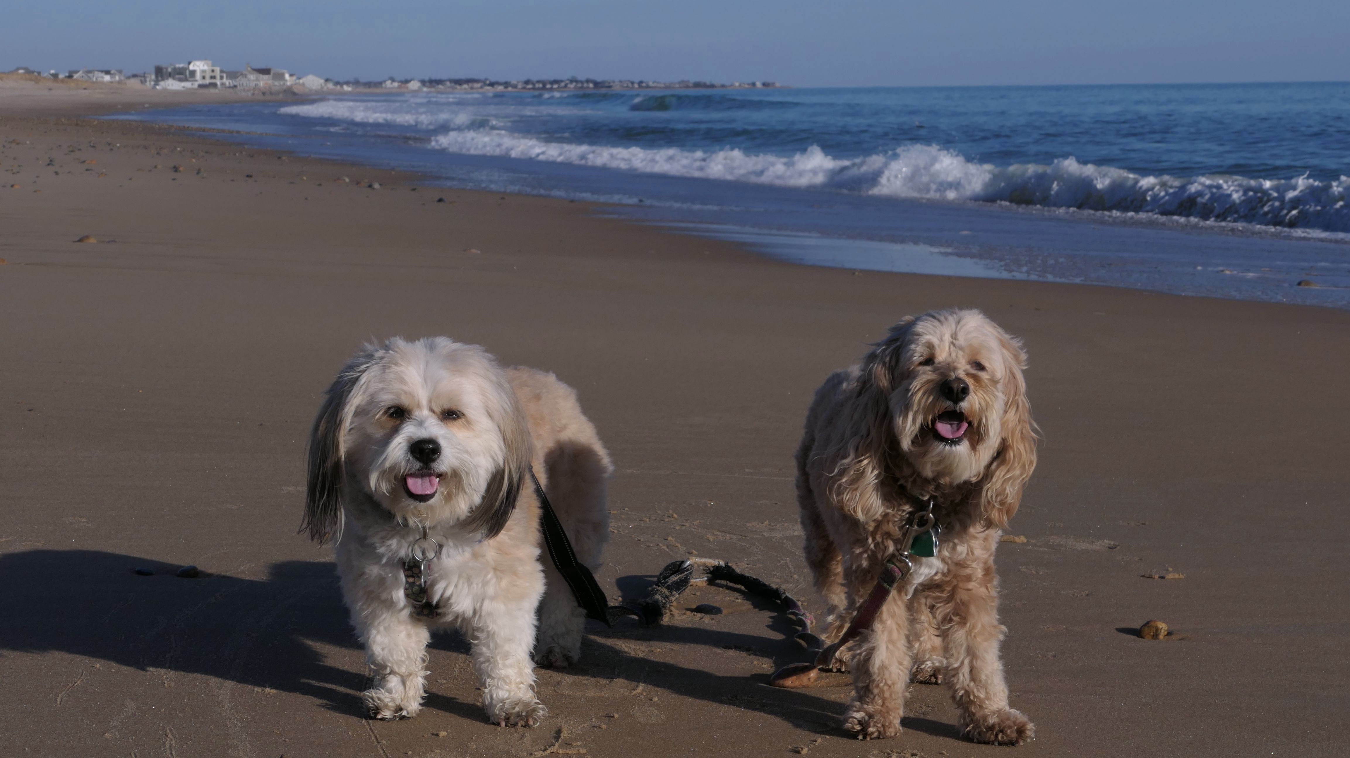 According to this website, this was only the second time we've visited this beach. That's not entirely true, though, since we've been to the beaches on either end—Misquamicut and Dunes Park—multiple times, with some overlap along the way. Still, about half of our walk covered ground we hadn’t visited since Christmas Morning 2023. This beach is also known as "Wuskenau Beach", and part of it is also known as "Atlantic Beach". I've combined them here since it's hard to know where one ends and the other begins. It was a spring-like day in early January, with inland temperatures nearing 50 degrees and slightly cooler air along the shore. It turned out to be a perfect afternoon for a sunny beach walk, and Mandy and Lexi thoroughly enjoyed letting loose for a while. I'm still getting the hang of my new camera, but most of the photos came out well. It was wonderful to get outside on such a nice day before winter settles back in.