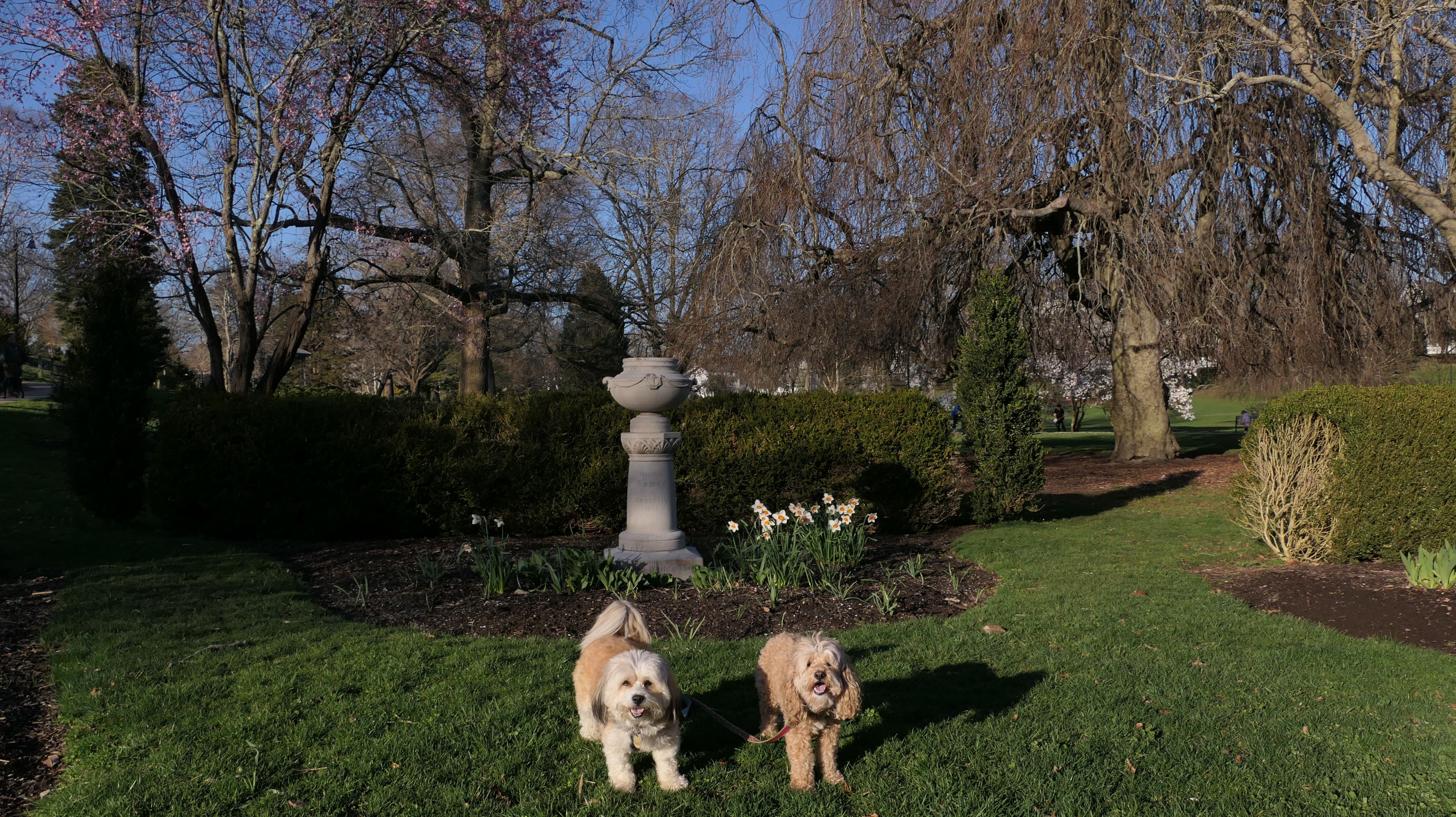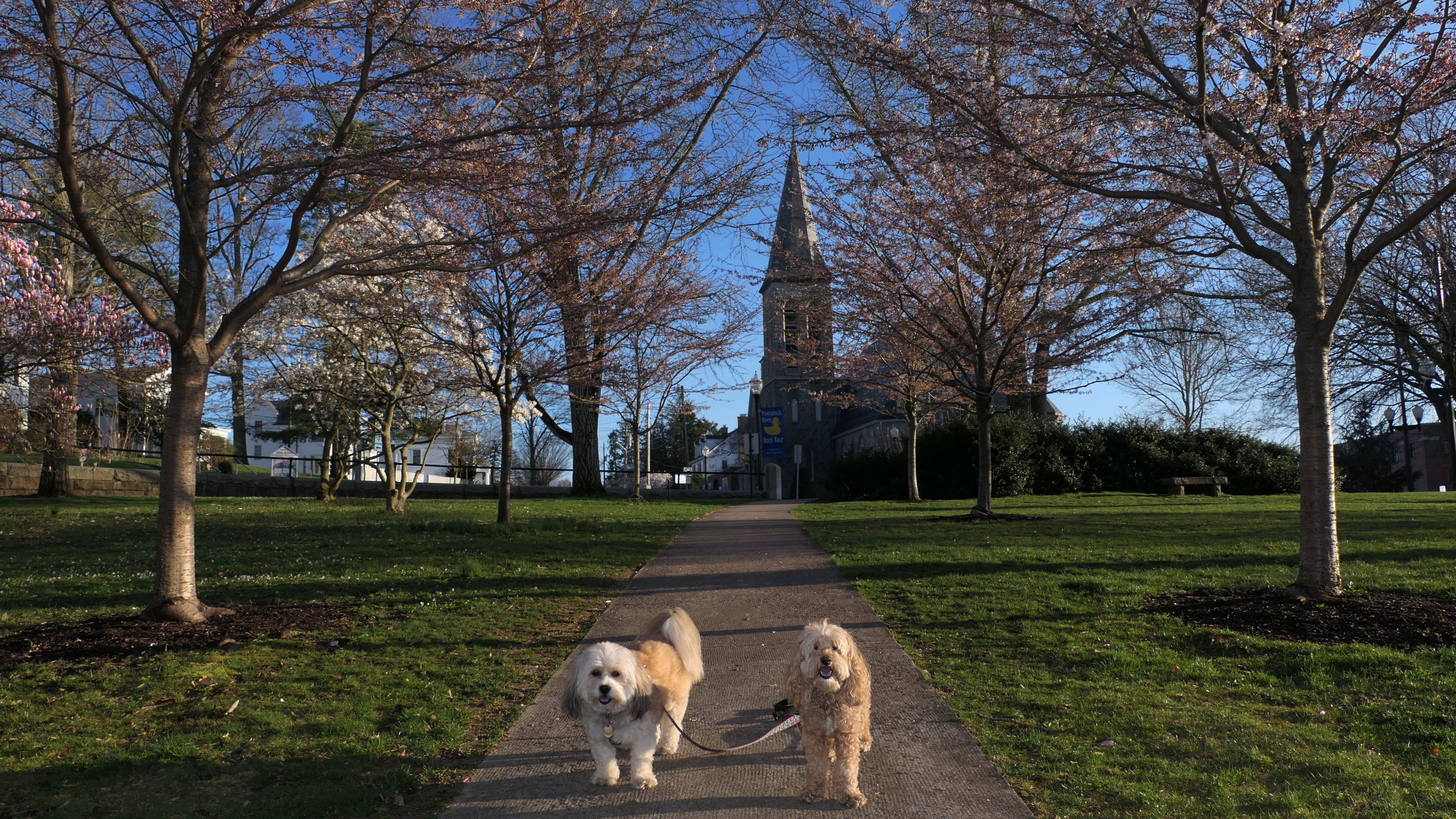 It's hard to believe with all the trips we made to Rhode Island over the last few years, that we haven't been to this park yet. This is a beautiful park, in the historic downtown section of Westerly. This area is just over the Pawcatuck River bridge, that connects Westerly to the Pawcatuck section of Stonington, CT. The park is privately owned by the Memorial and Library Association of Westerly. It looks really wonderful in the spring time, with all sorts of trees and flowers blooming. In addition to the pictures in the park, some pictures below are from the area immediately surrounding the park. We lucked out with the weather. It had poured all day, even during our drive here, but by the time reached the park, there wasn't a cloud in the sky. This was a fun walk on what turned out to be a beautiful spring evening.