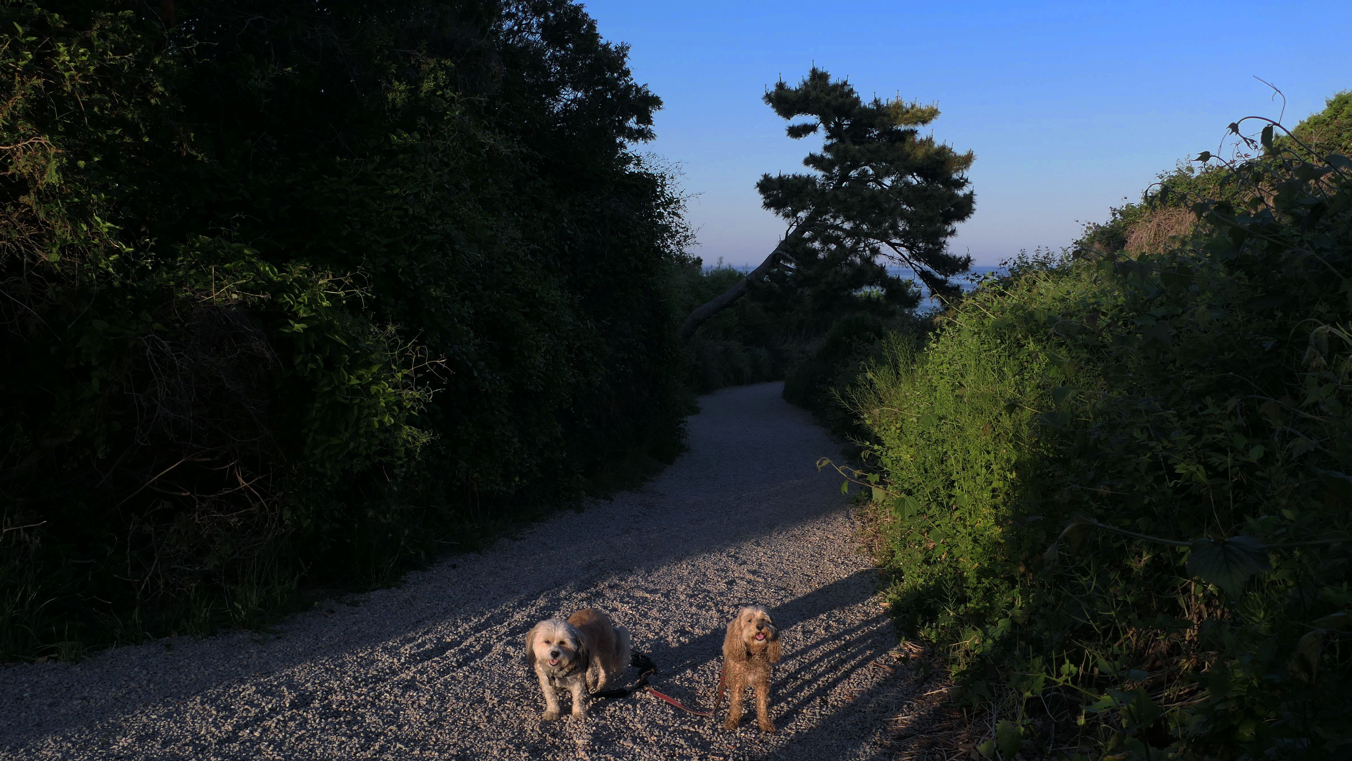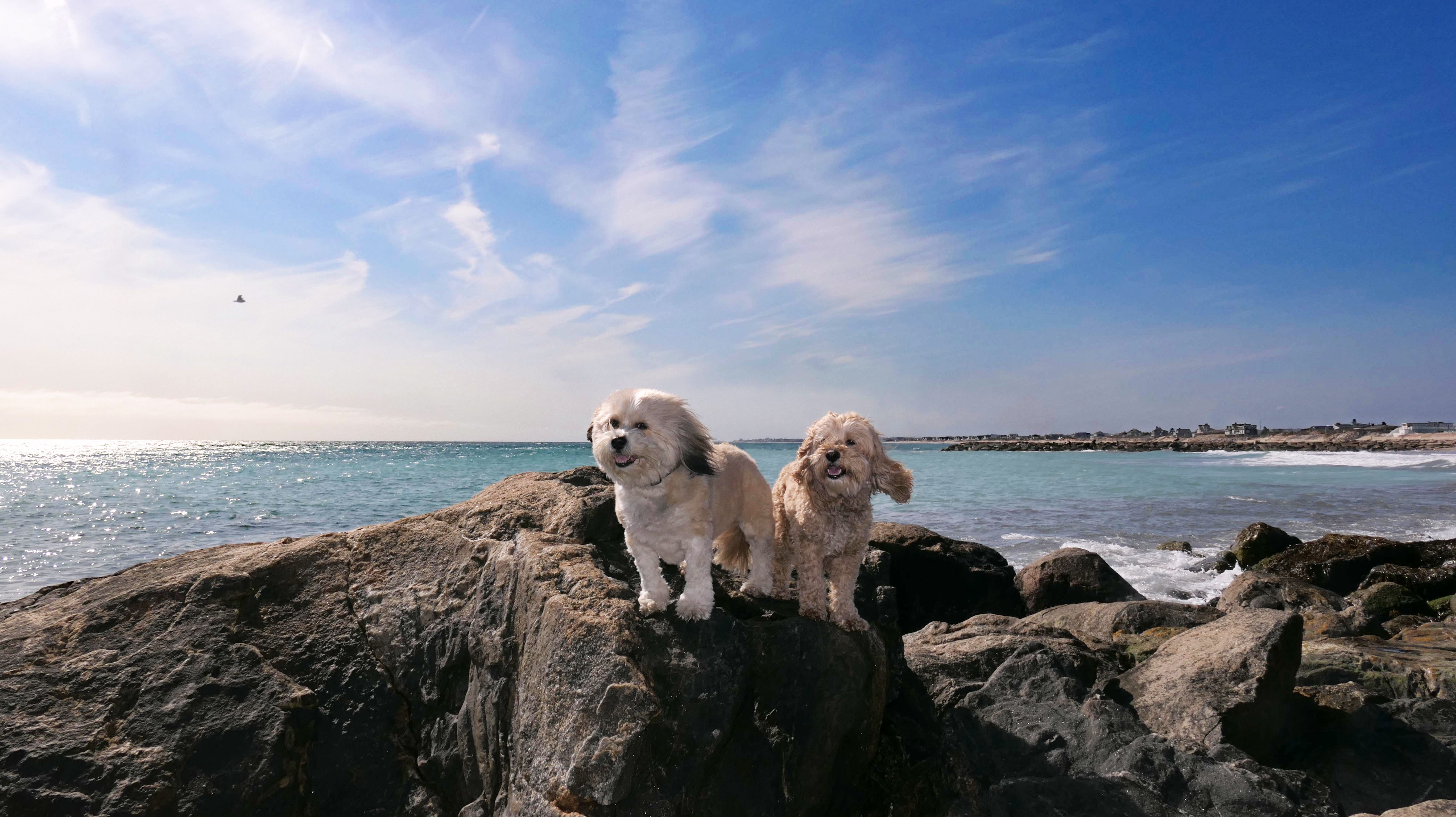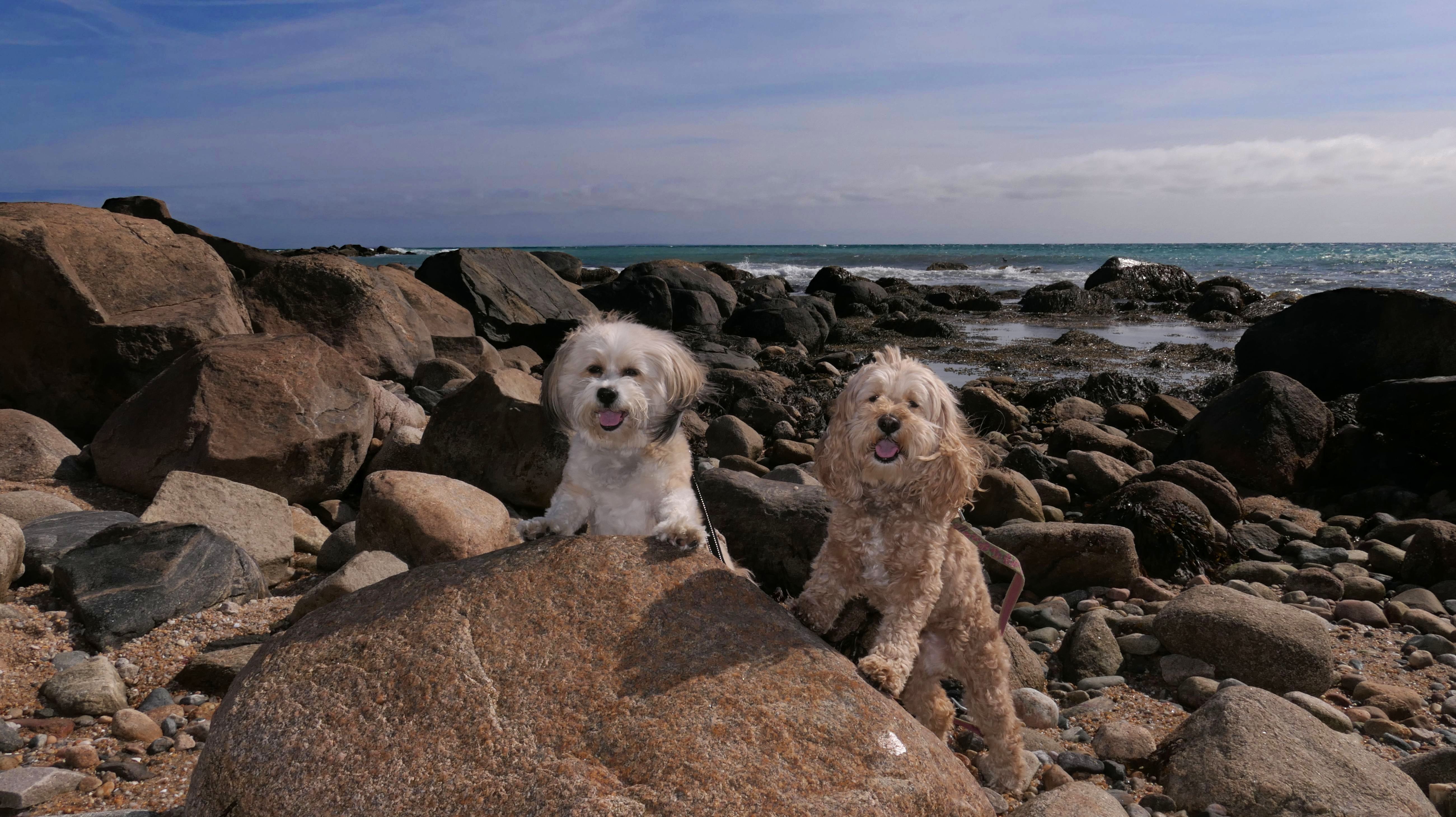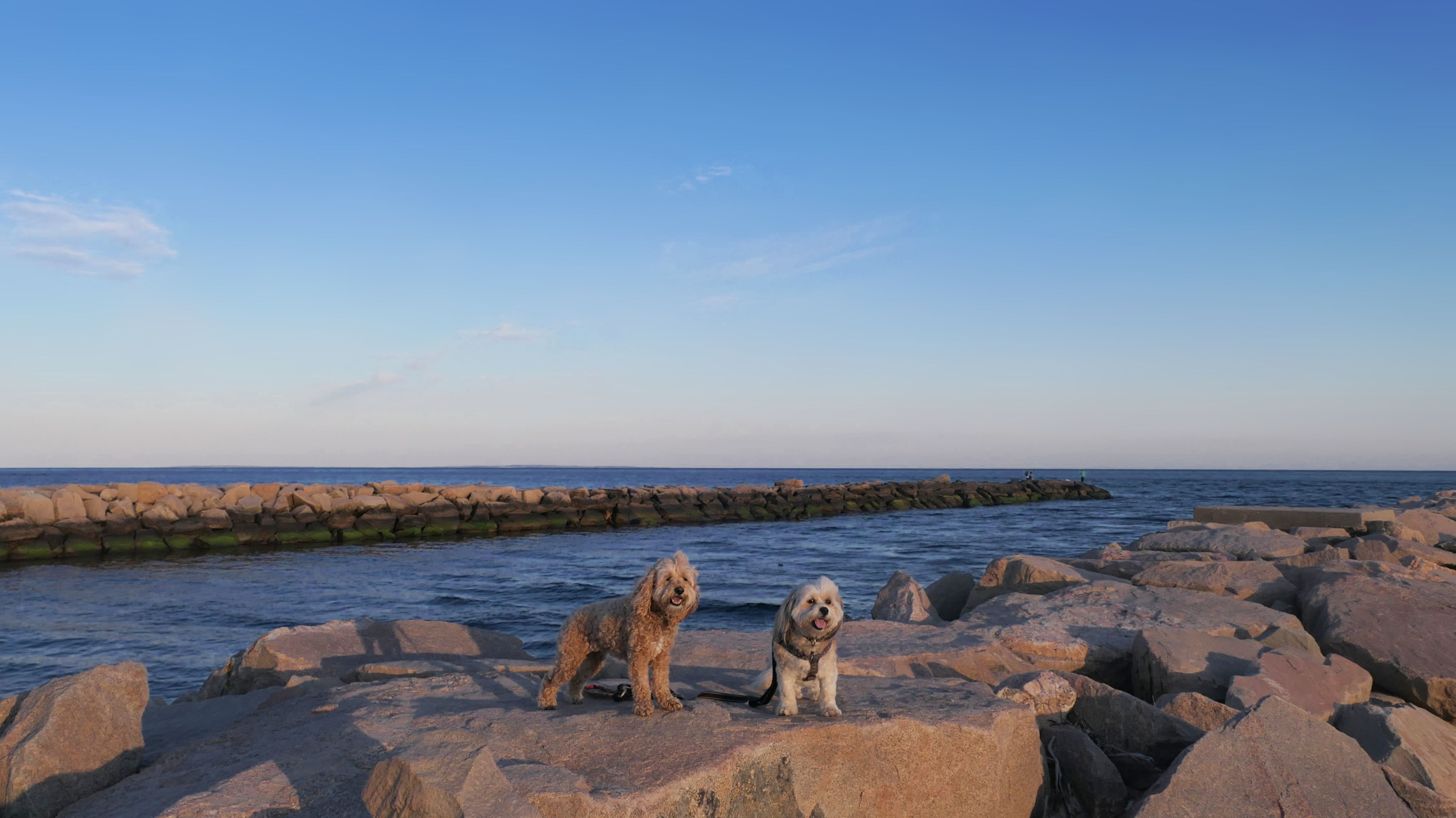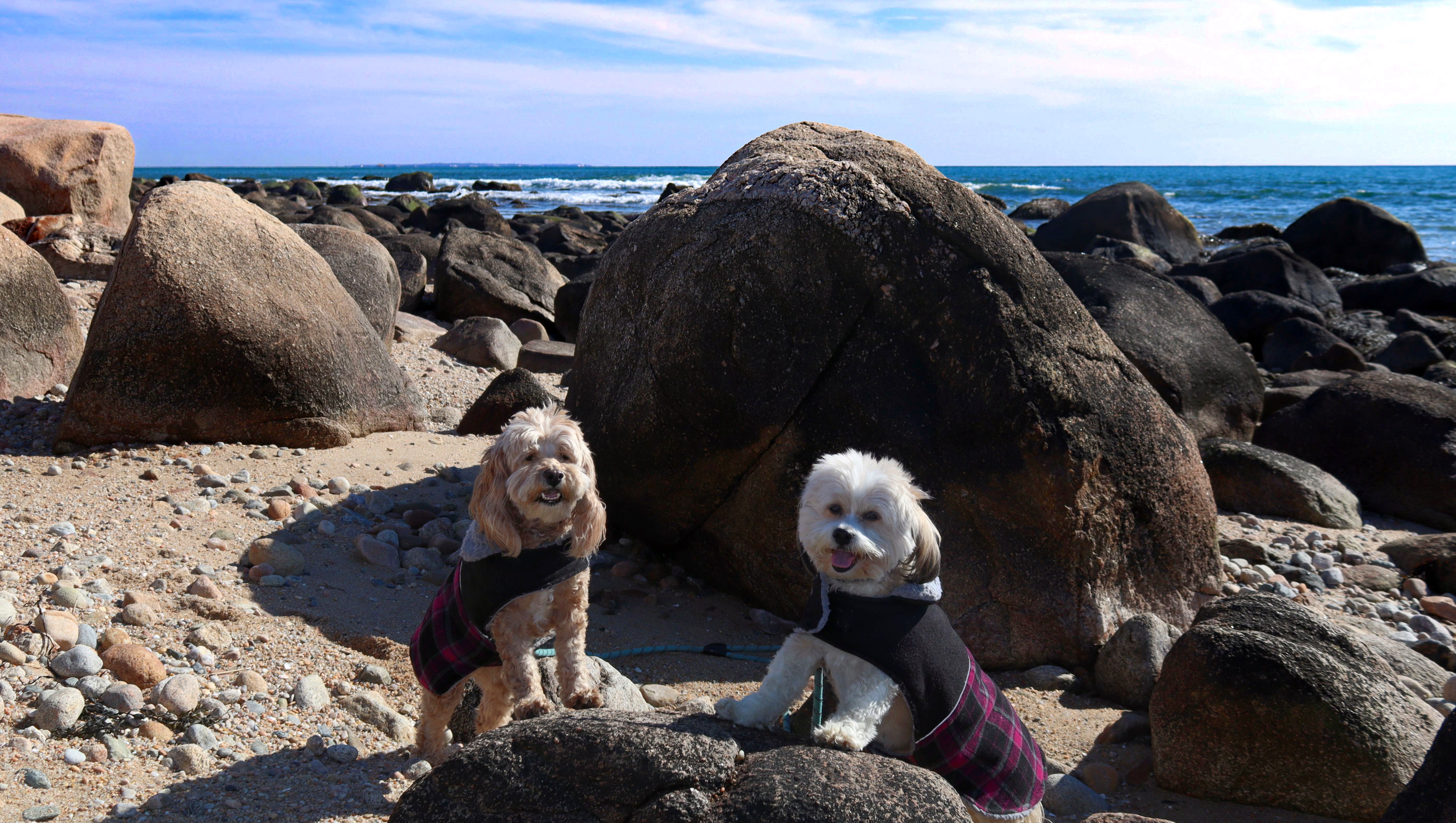 We've been here many times before, but this was only the second time we managed to complete the full loop. The first was during our very first trip to Westerly, way back in December 2020. We attempted it again last summer, but high tide and overgrown trails around the rocks stopped us short. This time, we arrived right at low tide and started out on the bay side. The dogs love this part—it's calm, and they enjoy splashing around in the gentle water. Near the tip of the point, there's a small stream we have to cross to finish the loop. Back in 2020, it was cold and windy, and I had to wade through the stream to avoid turning back. Today, I still had to cross it, but the water was so low it felt more like stepping through a puddle. For the first time, we made it up to the ruins—remnants of an old military fort hidden among the dunes. The narrow trails leading there were just barely passable, and they'll be even tougher to navigate later in the summer when growth thickens. It was exciting to explore something new in a place we thought we knew well. (In 2020, we had skirted the rocks to complete the loop—I didn't even know the ruins existed then.) We wrapped up the walk along the ocean side, where the views of Block Island were strikingly clear. Usually, the waves on that side are pounding, but today the sea was surprisingly calm. With the seasonal dog restrictions starting May 2nd—when pups are only allowed after 6 PM—this was one of the last afternoons we could enjoy this walk freely. All in all, it was a great three mile loop on a beautiful spring day.