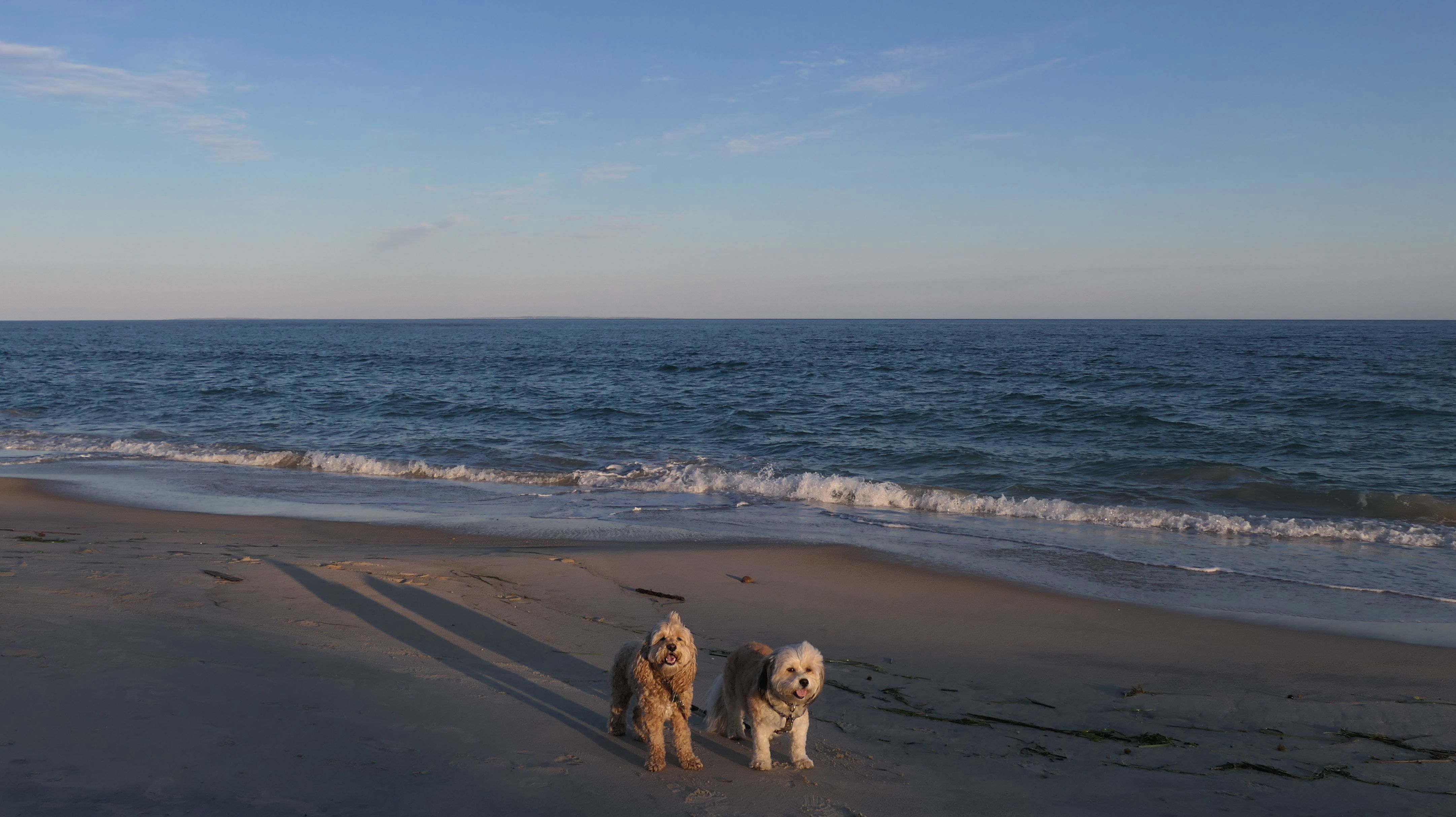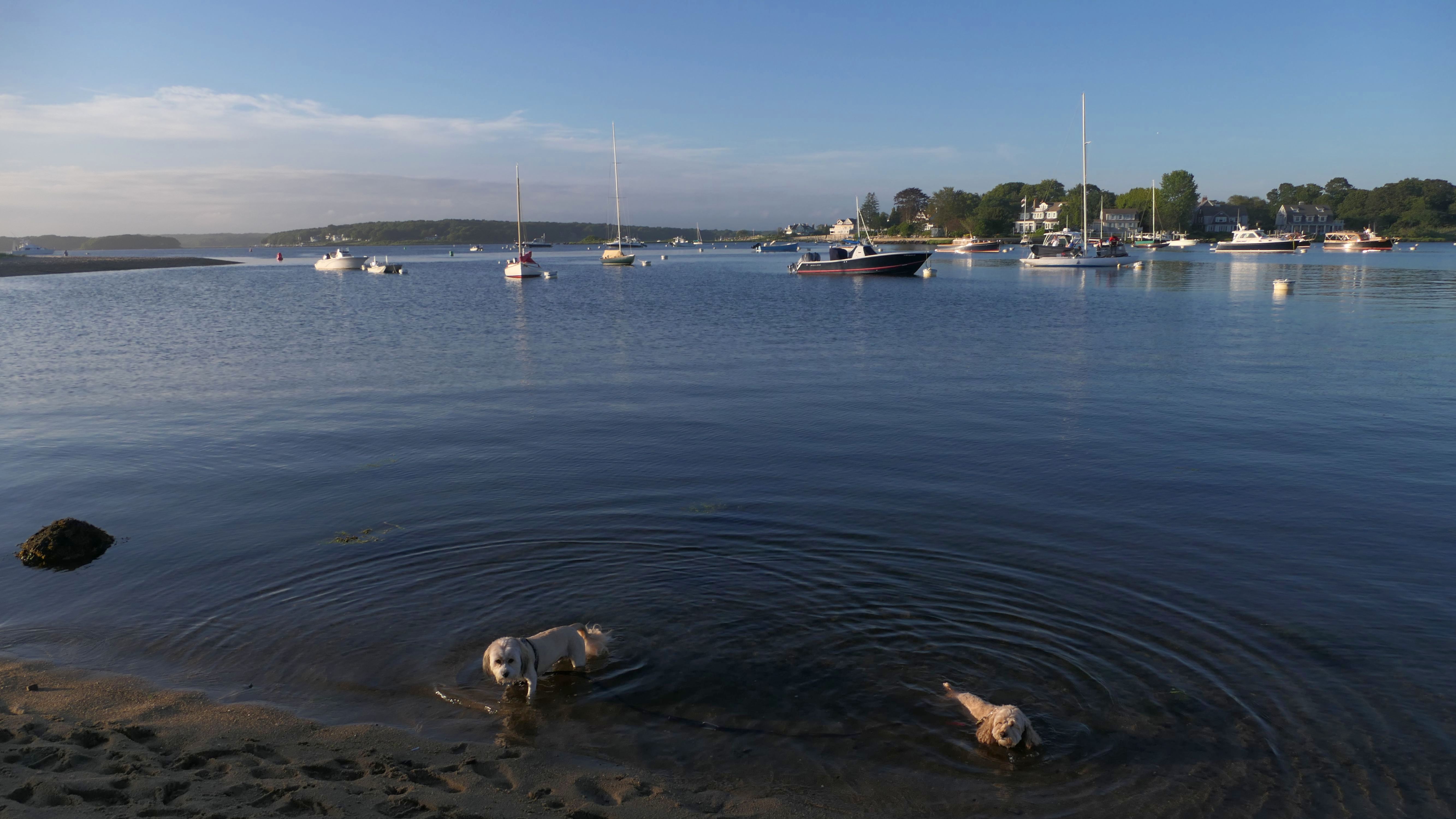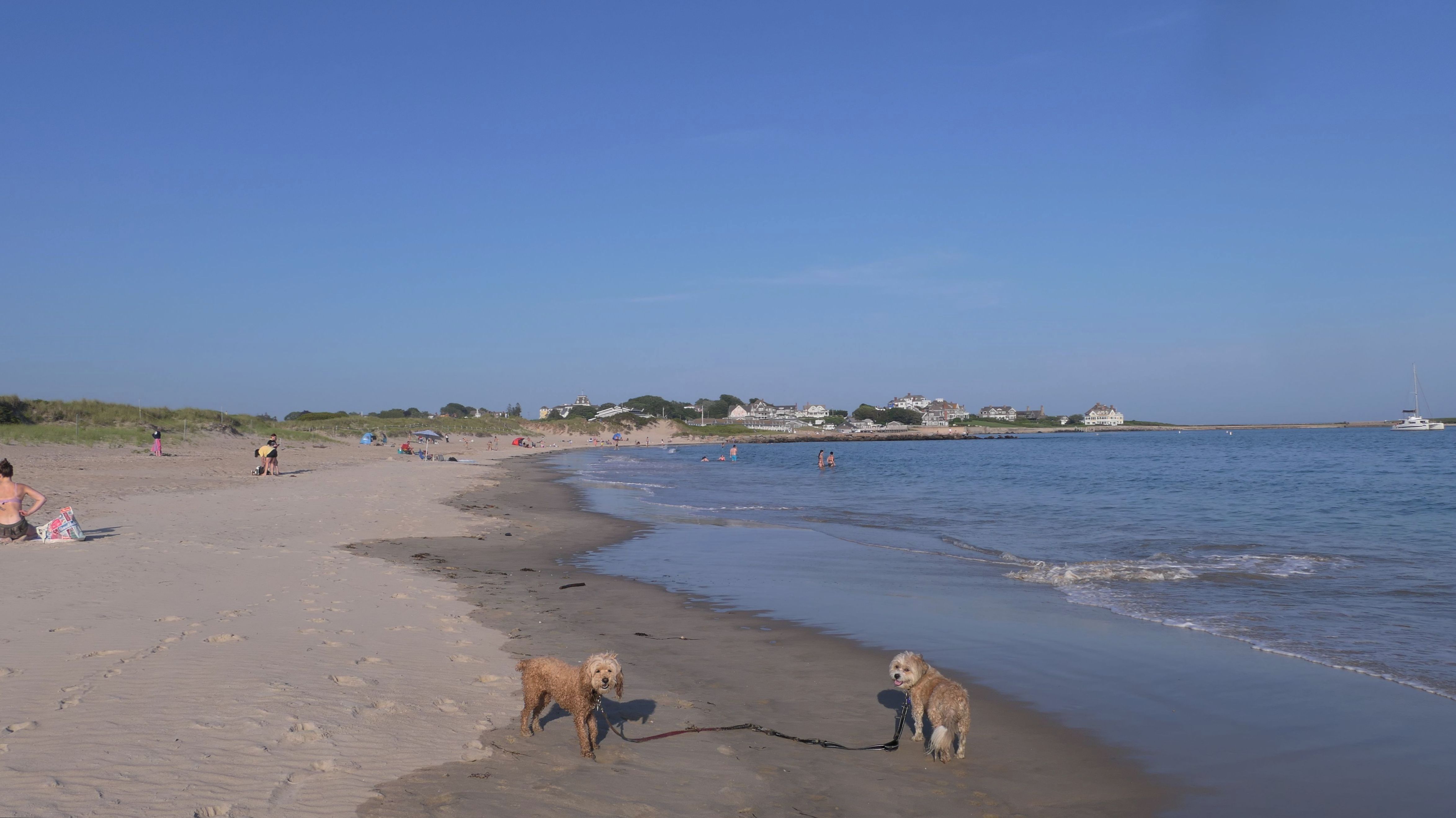 It was the hottest day of the year, and this was our final stop. We waded through the edge of the waves, walking about a half mile up the beach before turing around and heading back to Watch Hill. We've been here a bunch of times before. It's one of our favorite places, and dogs are allowed after 6PM during the summer months. This was a nice way to wrap up a very busy day that started in Narragansett and ended here.
