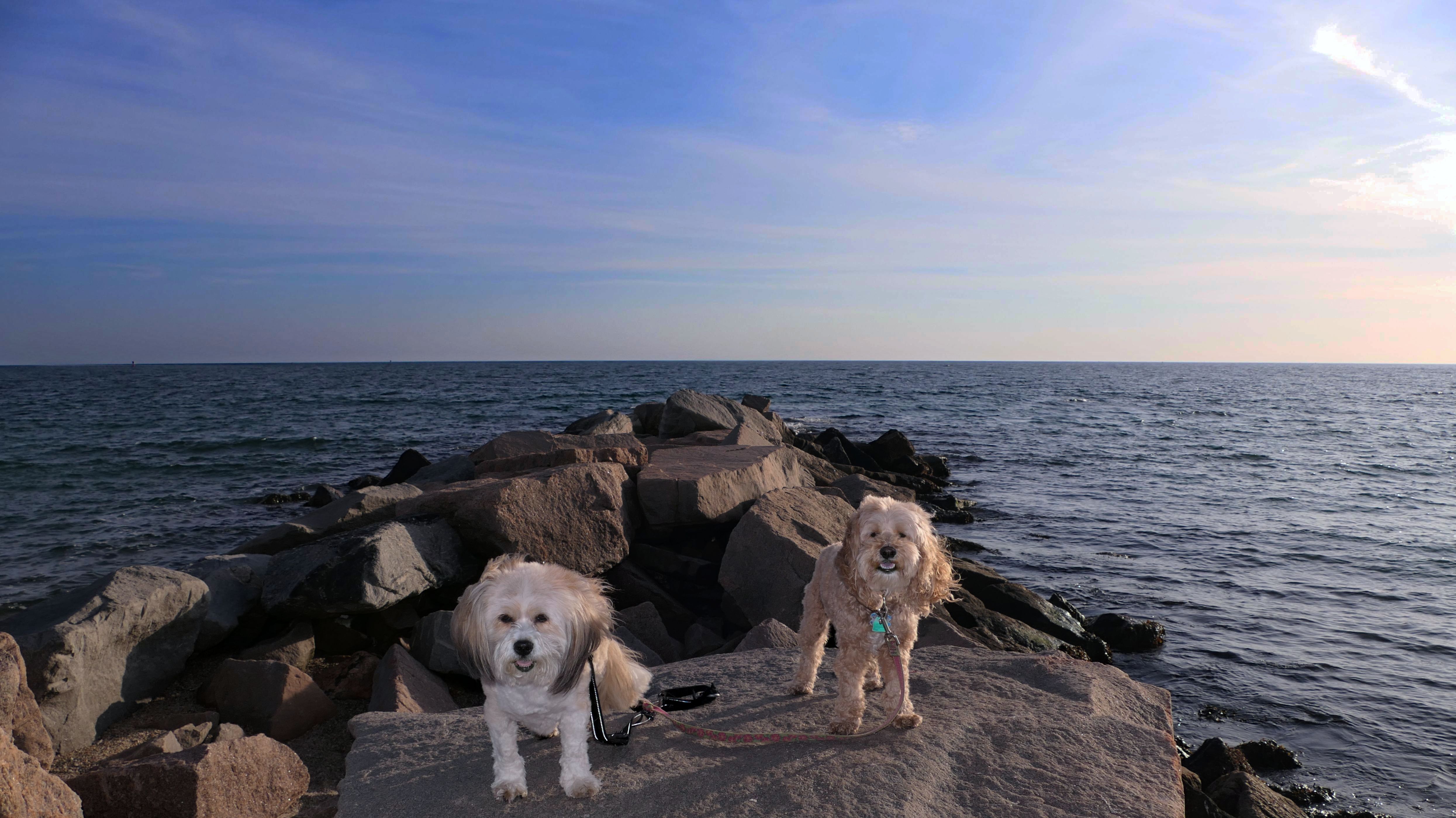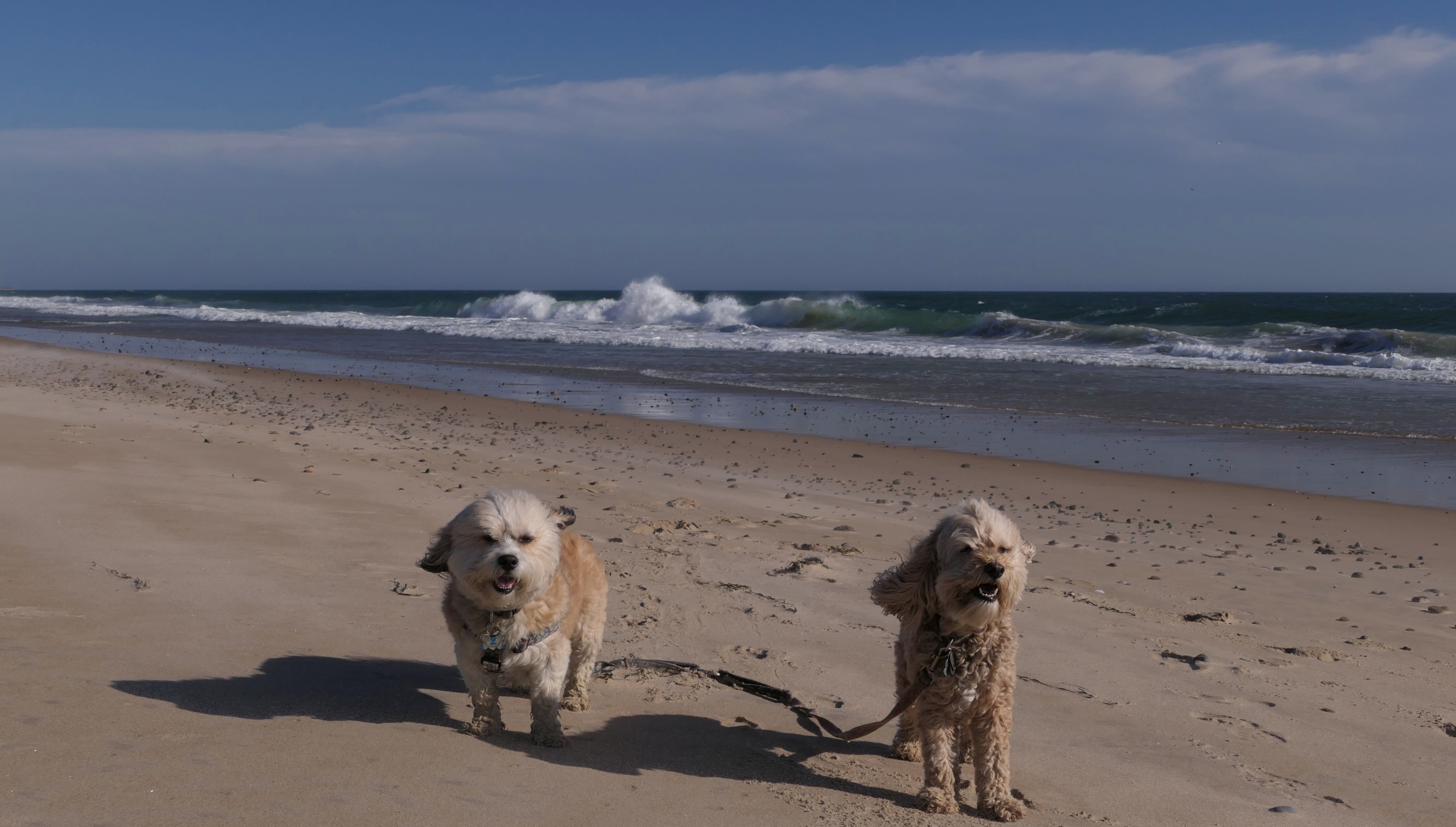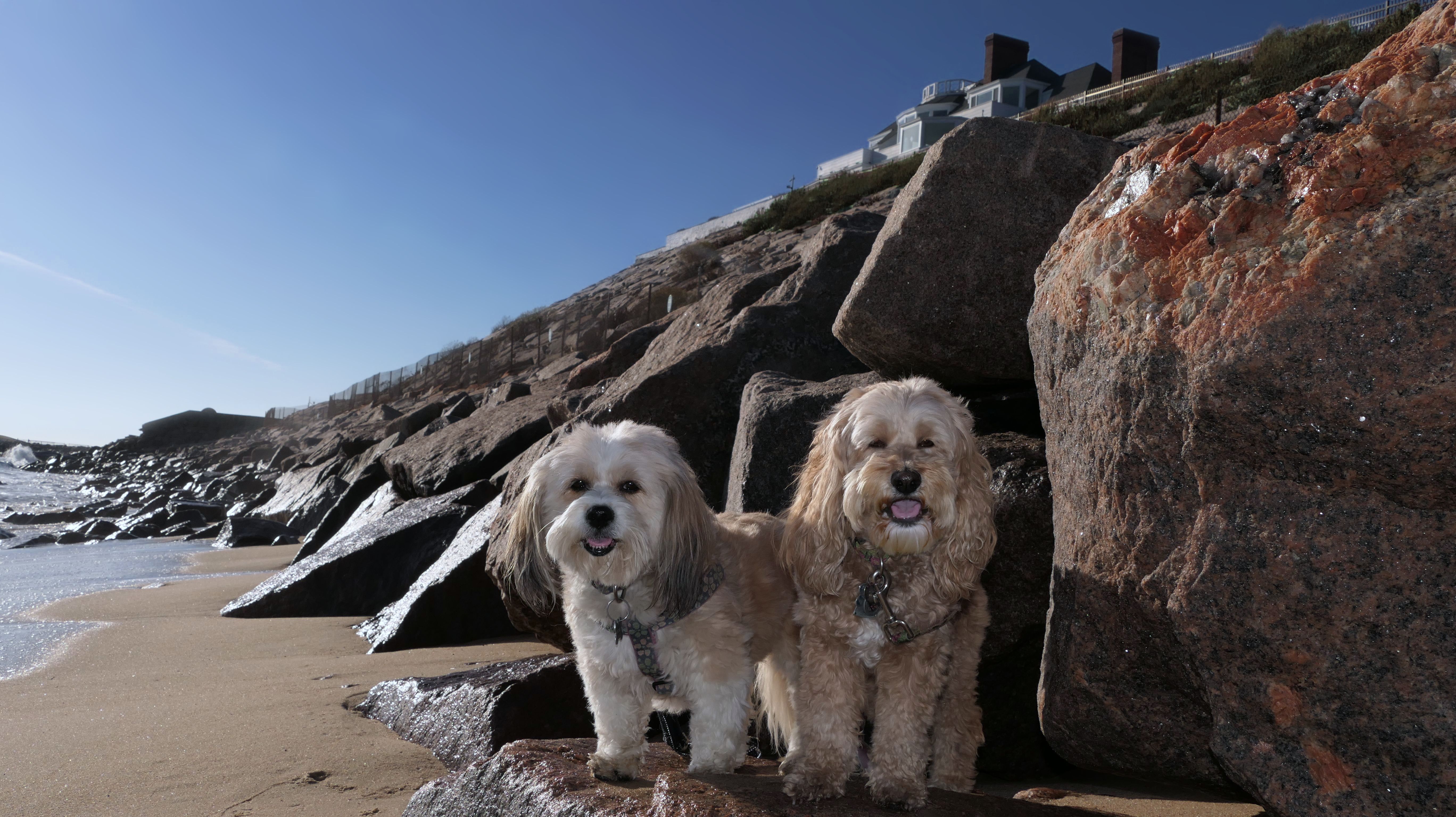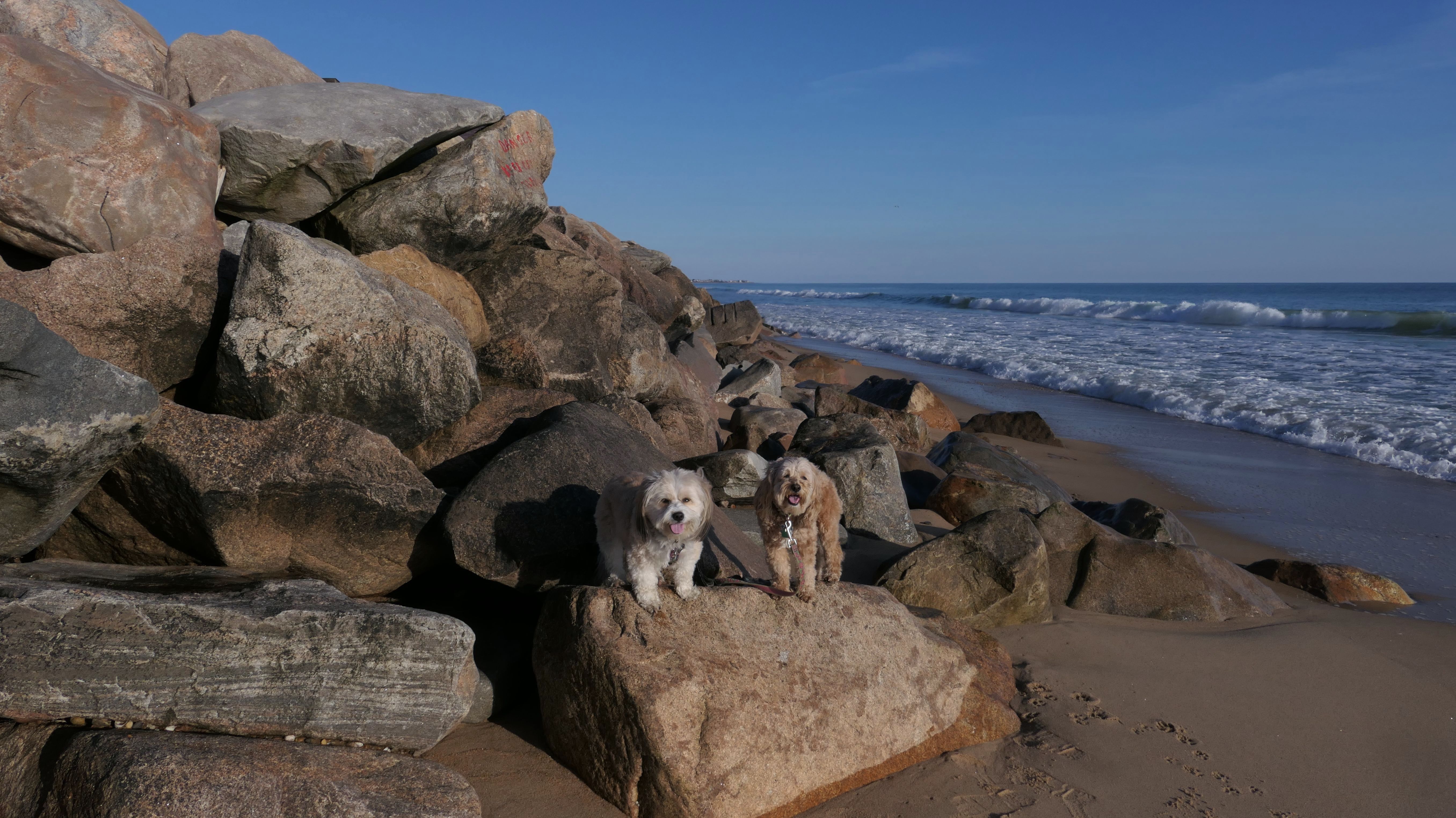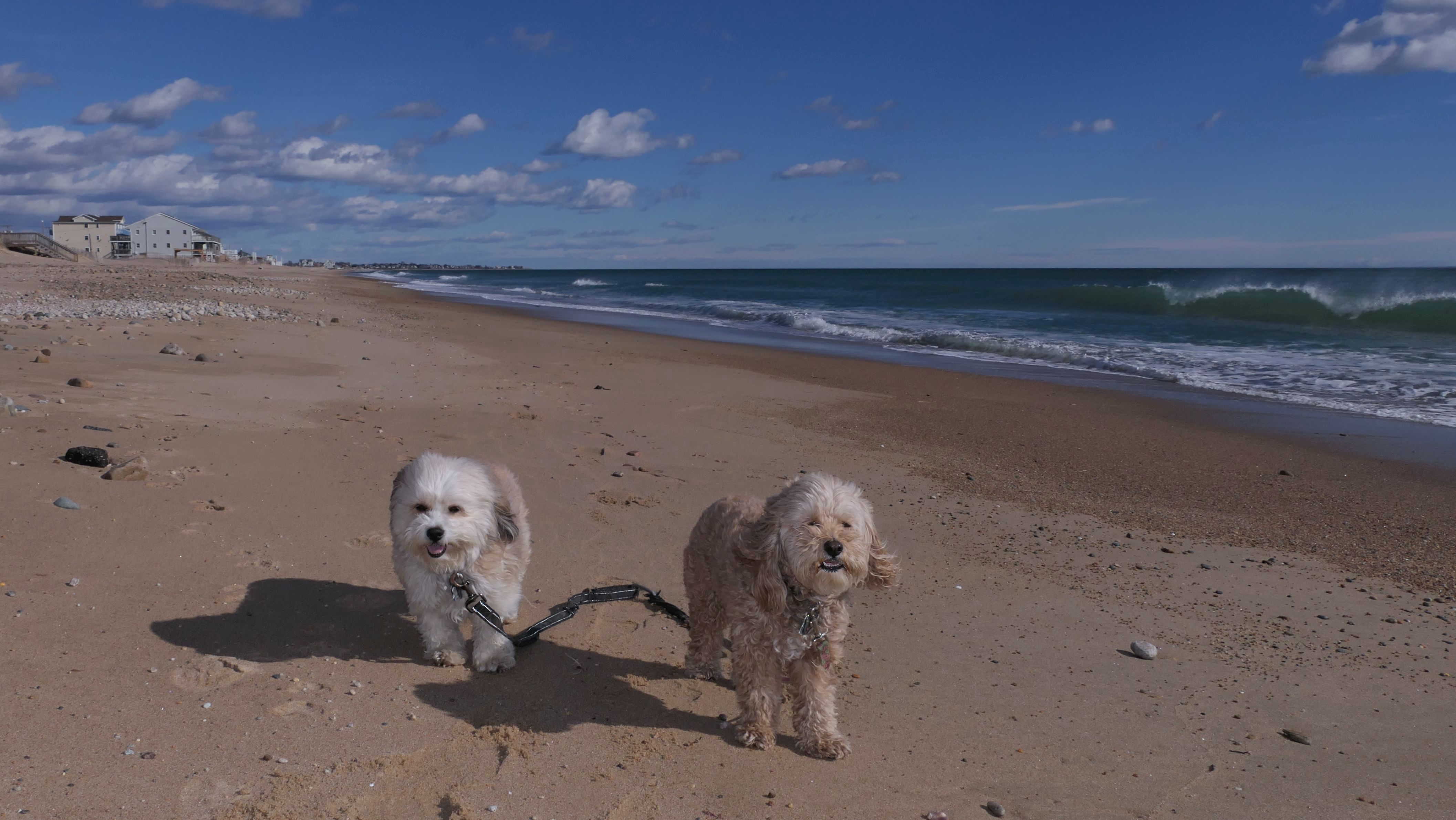 We had record temperatures inland, approaching the mid-80's, so we of course went to a beach! I didn't feel like driving to New Jersey for the 3rd straight day, so we made a return visit to Misquamicut. It wasn't as warm here, probably low to mid 70's, but very breezy. I suspect the wind kept people away. We explored some of the surrounding area before walking the beach. The waves were really ripping here. Mandy kept trying to walk in the water, but Lexi would pull her away. It was a fun adventure, despite the windy conditions.