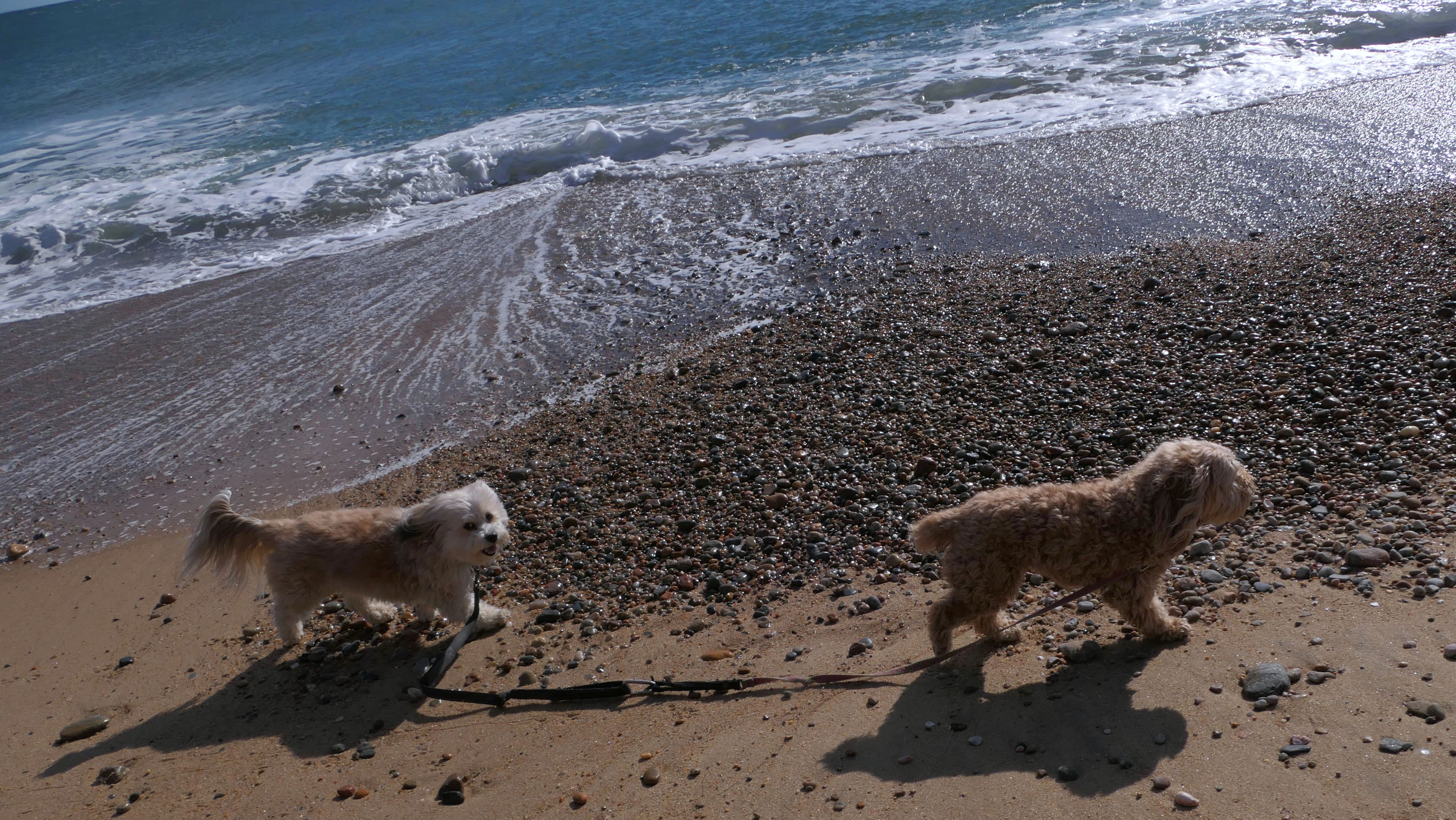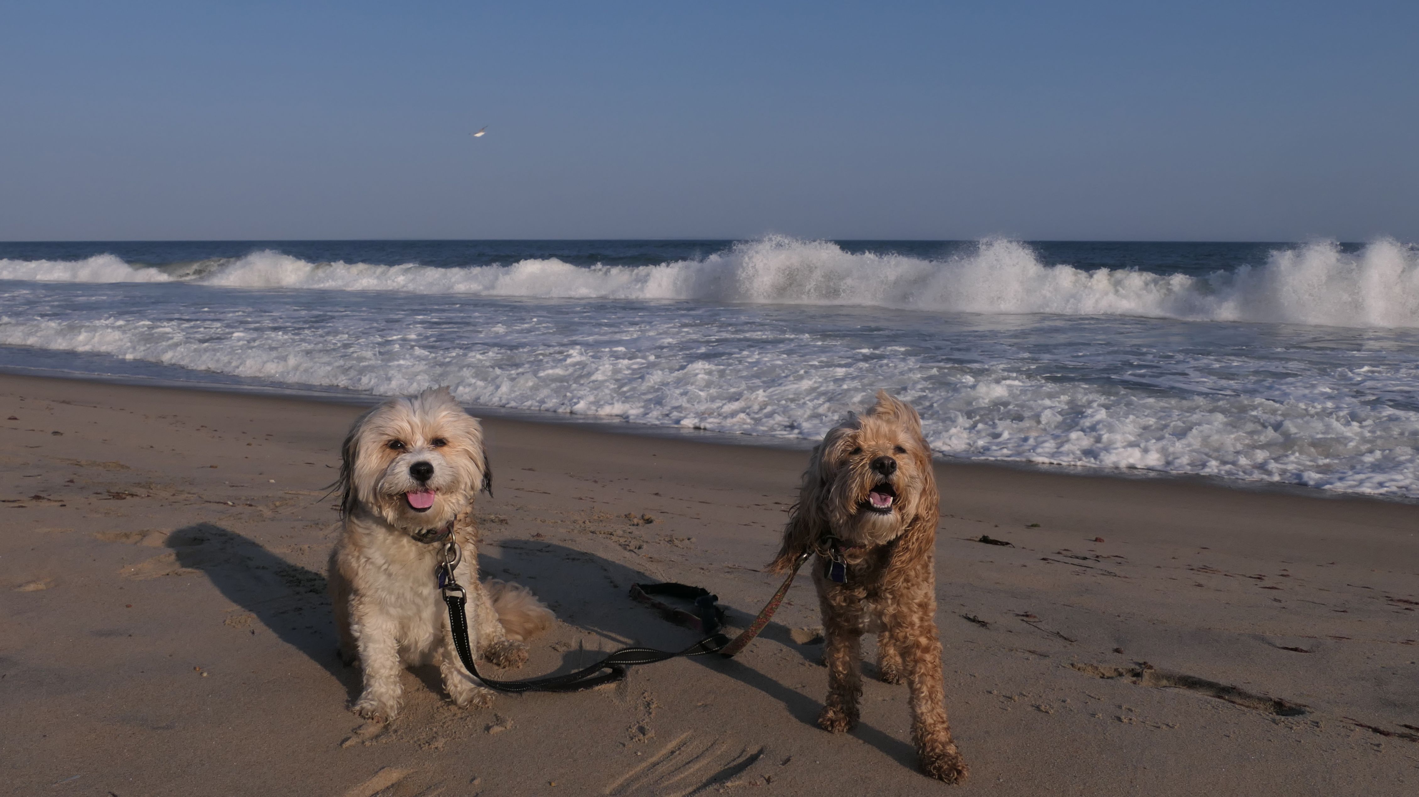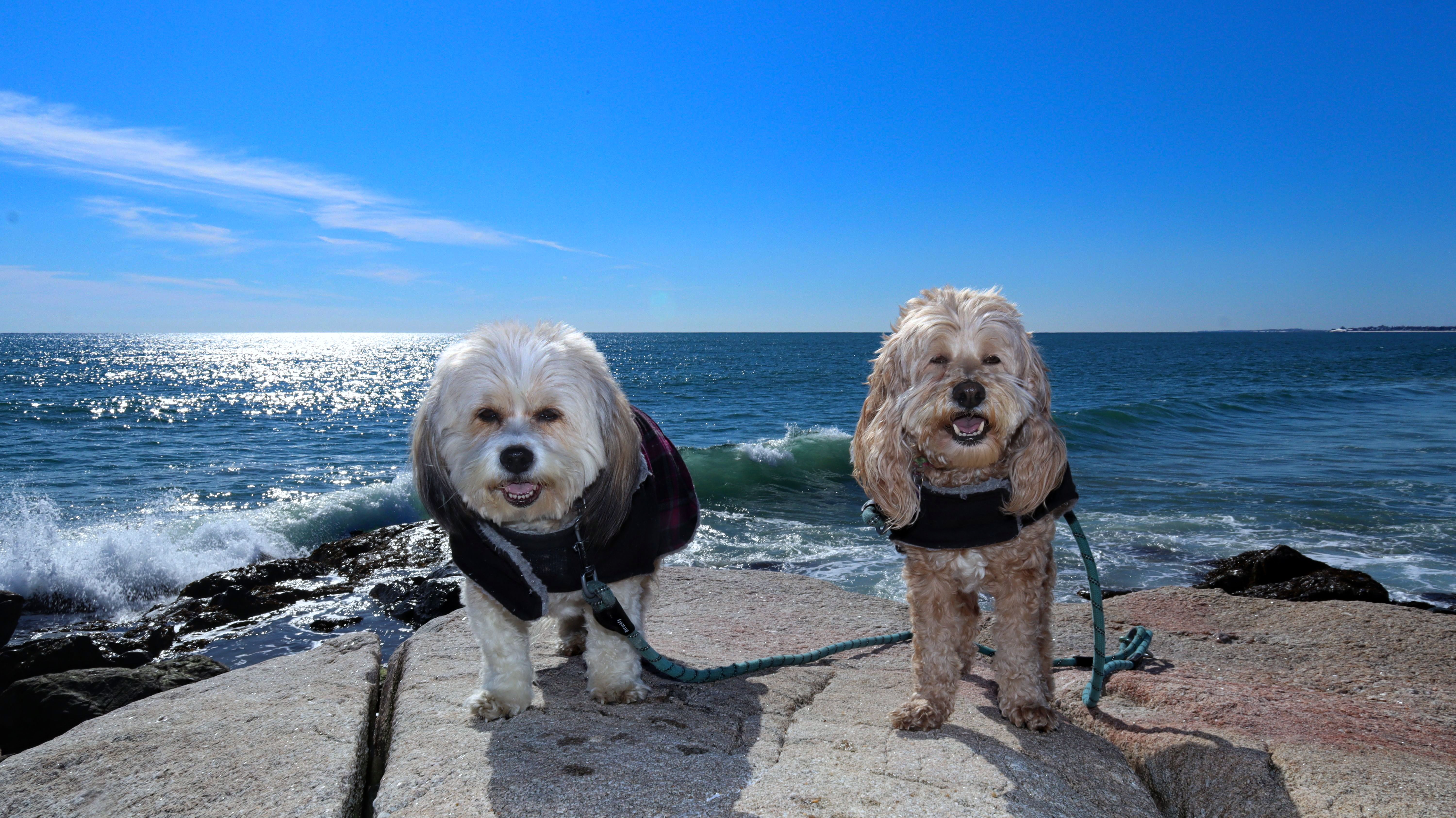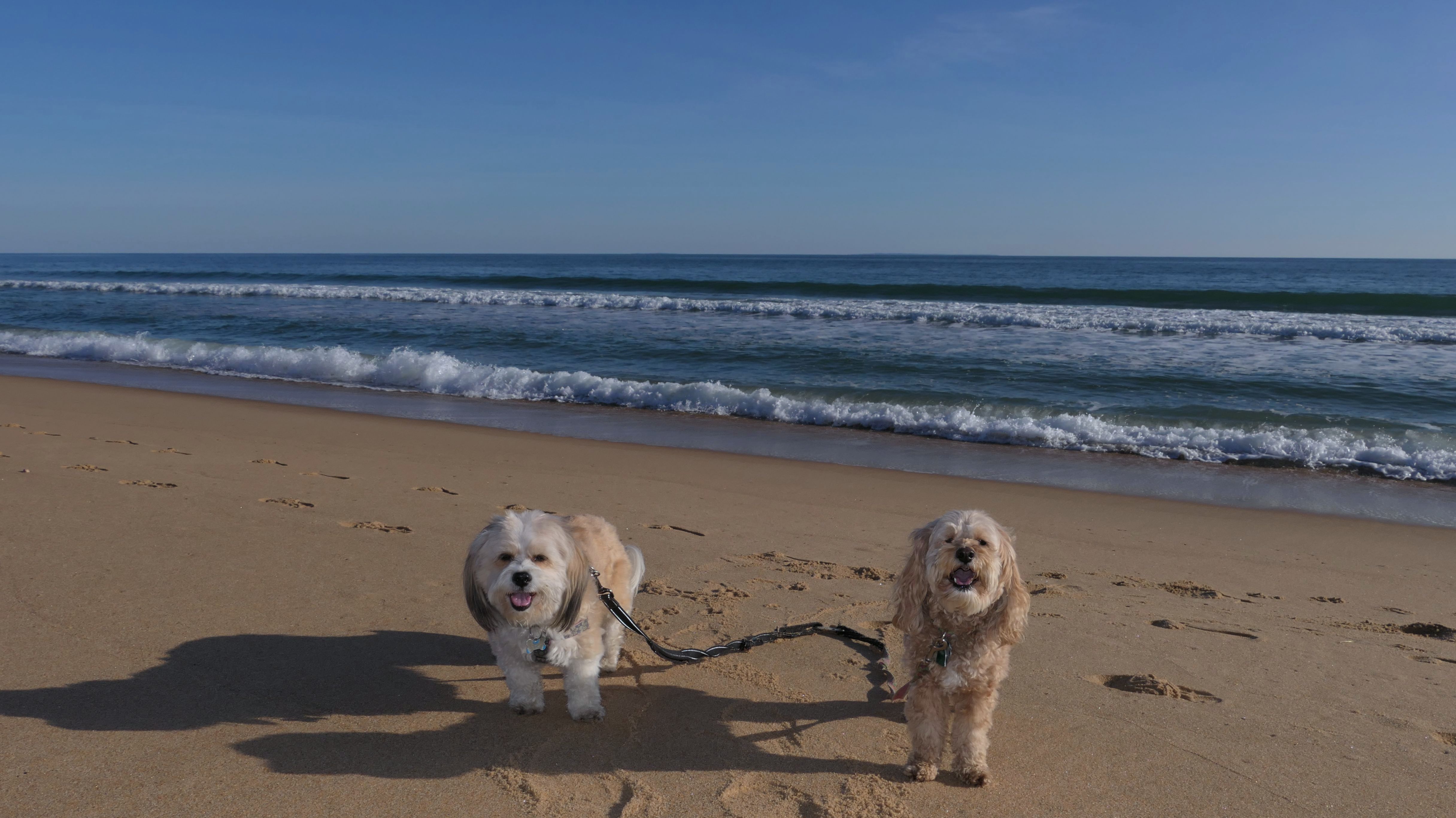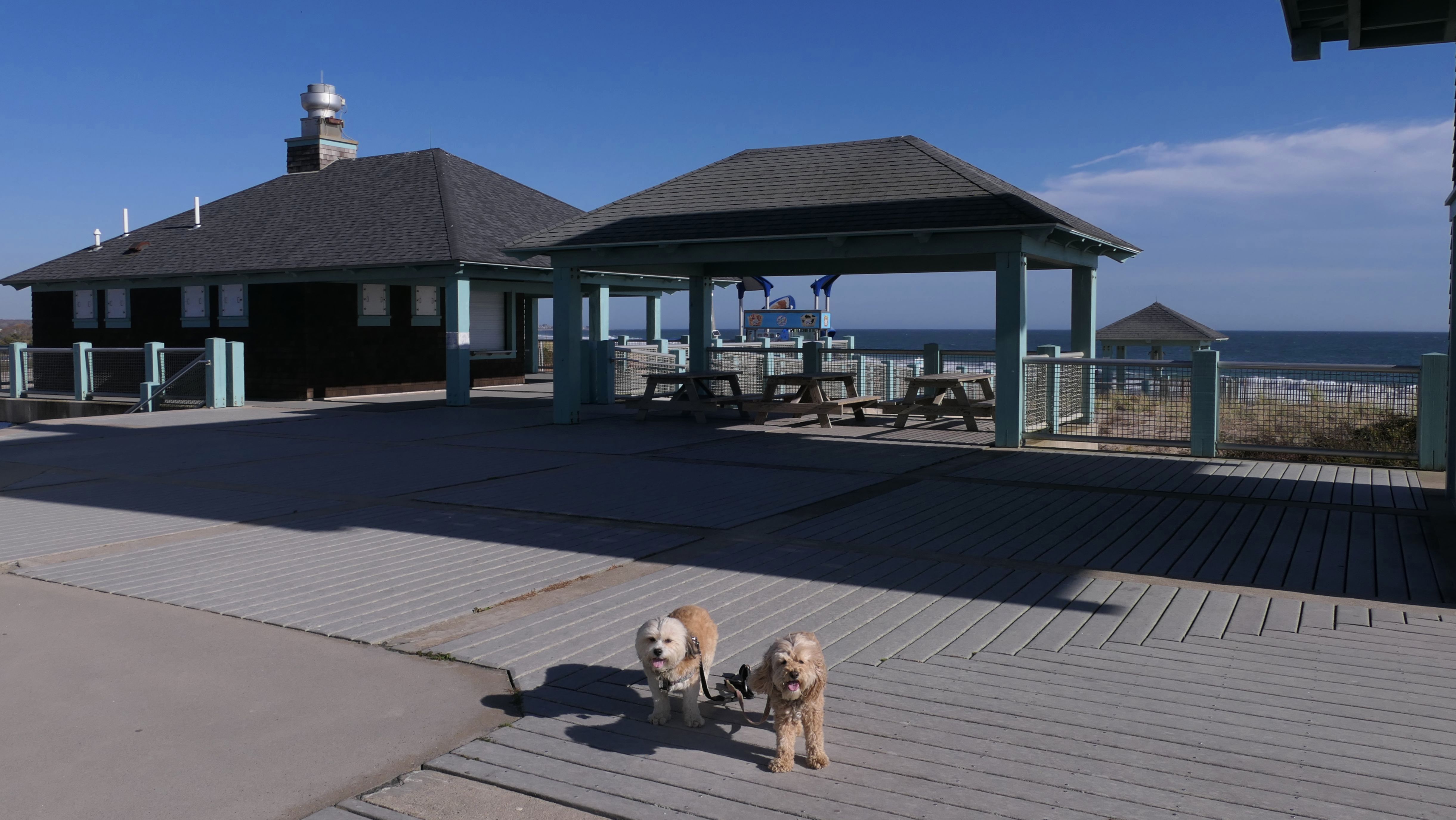 We had record temperatures inland, approaching the mid-80's, so we of course went to a beach! I didn't feel like driving to New Jersey for the 3rd straight day, so we made a return visit to Misquamicut. It wasn't as warm here, probably low to mid 70's, but very breezy. I suspect the wind kept people away. We explored some of the surrounding area before walking the beach. The waves were really ripping here. Mandy kept trying to walk in the water, but Lexi would pull her away. It was a fun adventure, despite the windy conditions.