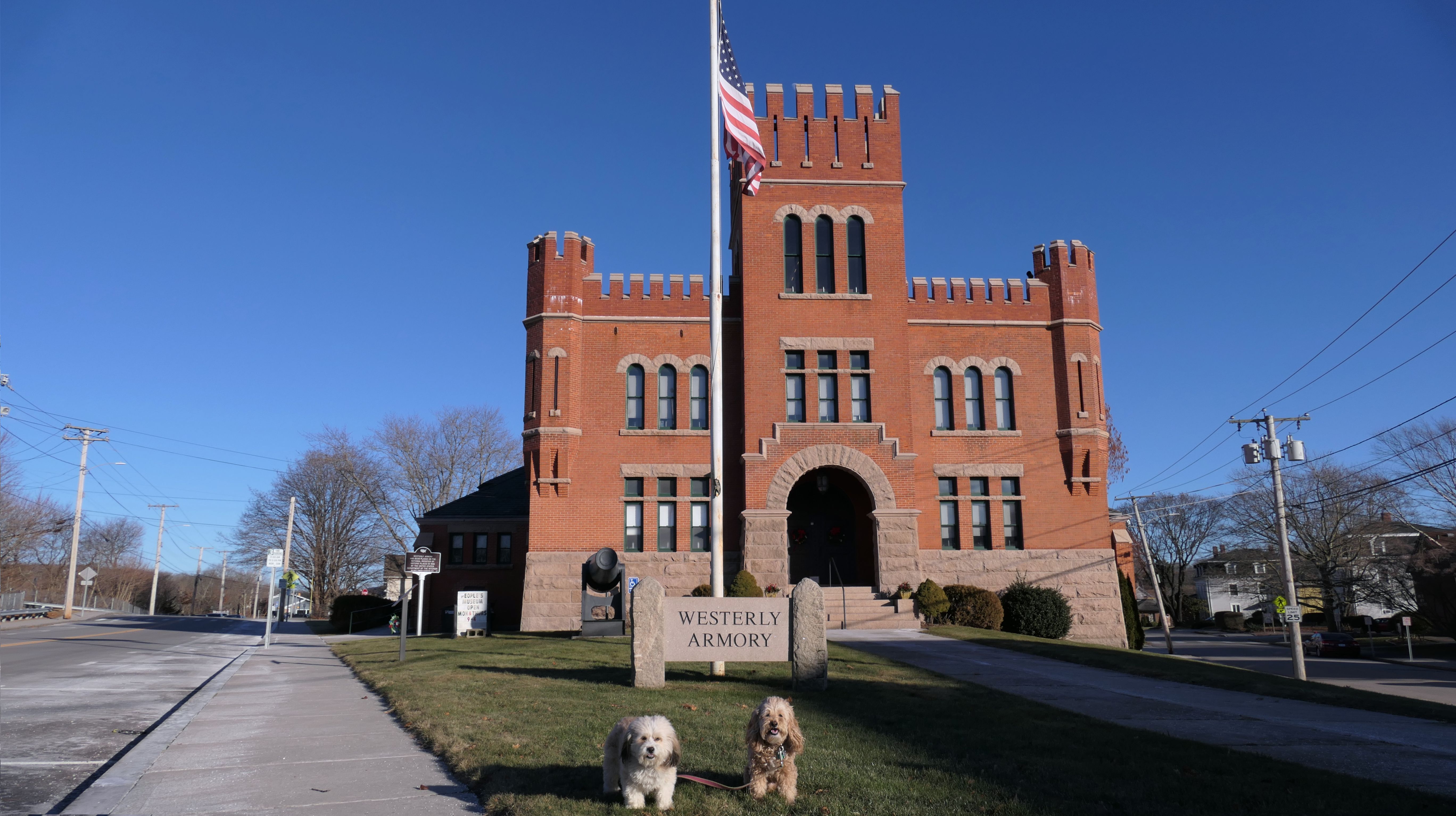 This adventure covered Rooney Park and the surrounding area. The actual park is basically just a small patch of grass next to the train station turned art gallery. We also walked a loop around the surrounding streets, covering a little over a mile. Our walk also included looping through Wilcox Park, but there's no new entry for that park, since we've covered that park thoroughly on previous trips. We did take pictures around the downtown area, and in front of the Westerly Armory, but kept the walk short because it was a very cold and windy day.