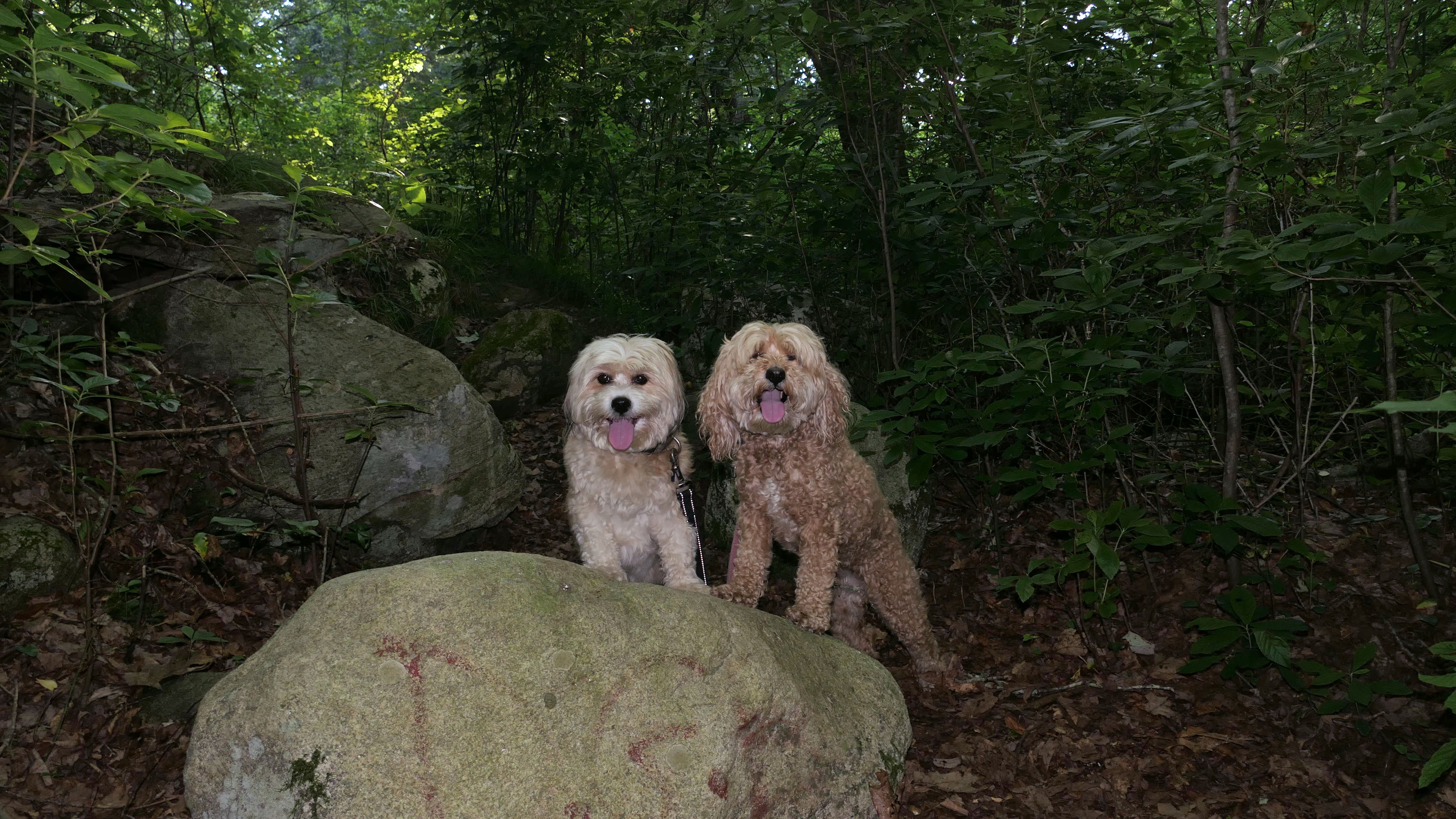 This is the scenic overlook off of the aptly named Spray Rock Road. There's a small parking area. You're only allowed 30 minutes to park during the summer months. We stopped to takes some photos of the dogs on the rocks. The combination of the sunset and the approaching storm clouds made for a very nice backdrop.