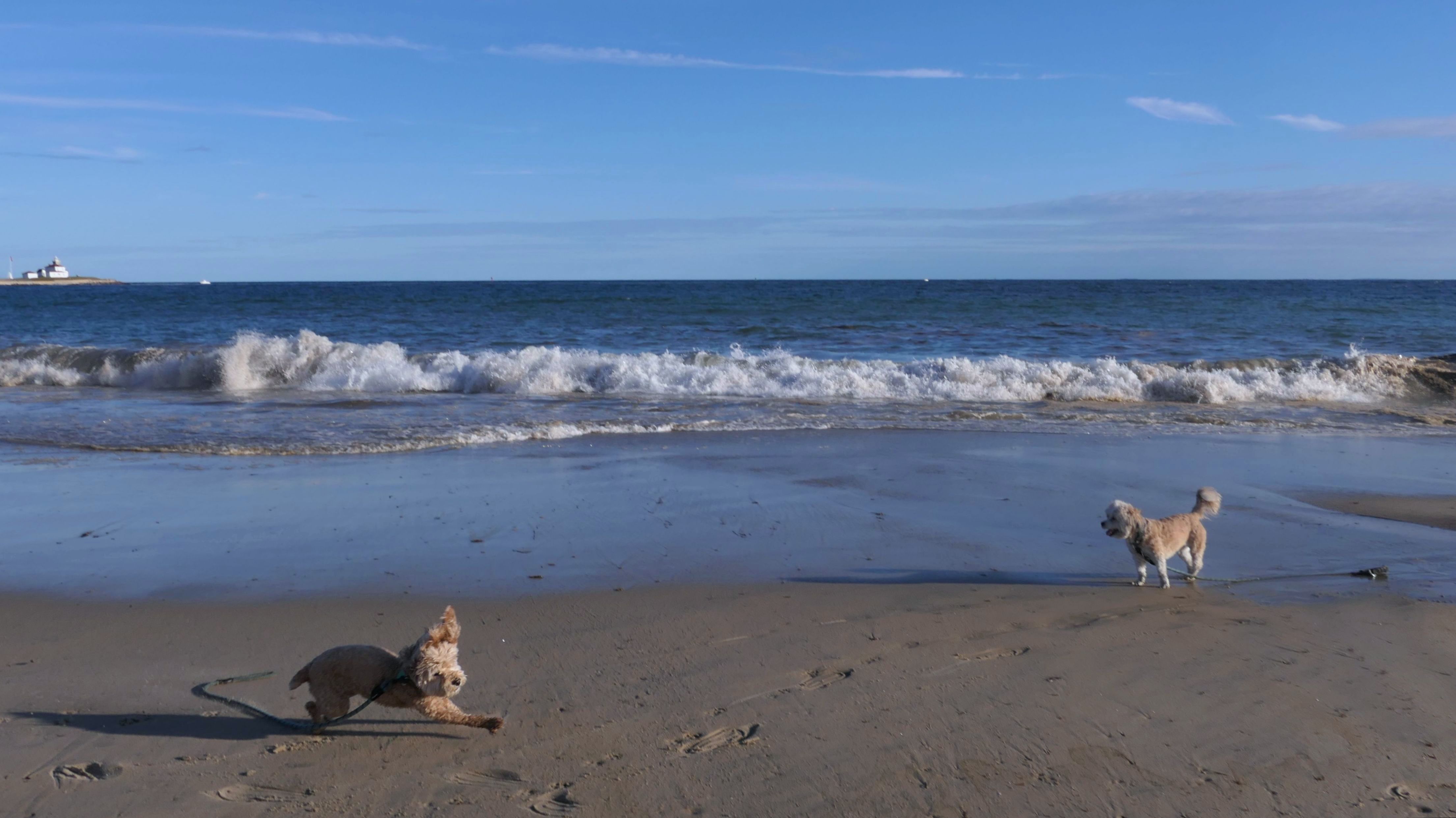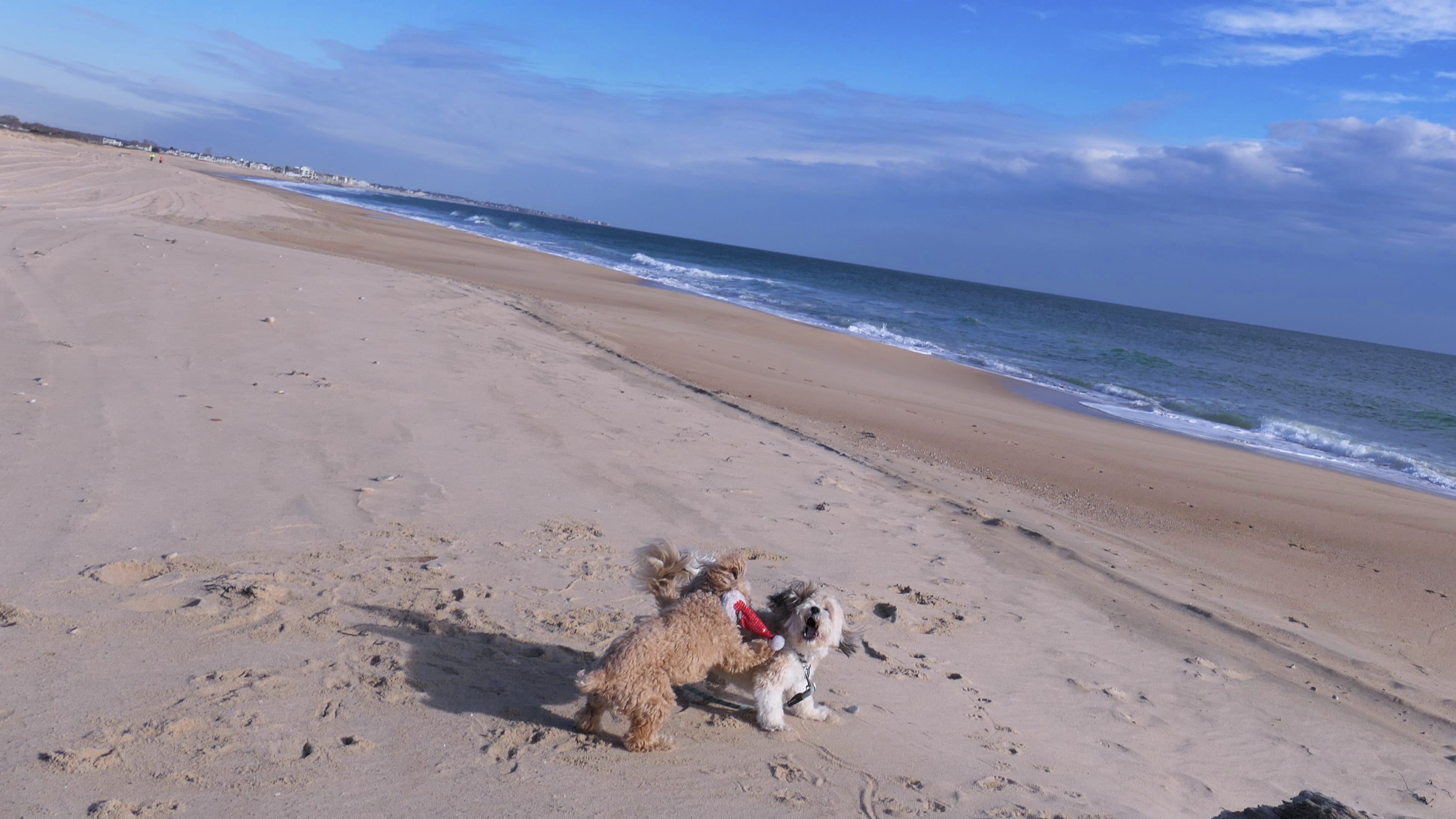 This marked our third consecutive Christmas Day visit to a Rhode Island beach. It's become a tradition for us. We usually arrive earlier in the morning, but this year we didn't make it there until about 12:45 PM. The forecast had promised clearing skies around 1 PM, yet the clouds were still hanging on when we arrived. About twenty minutes later, though, they finally broke apart and the day turned beautiful. With family visiting later, we only had about an hour for our outing—but it was just enough time for a refreshing two-mile walk and for Lexi to get all her zoomies out.