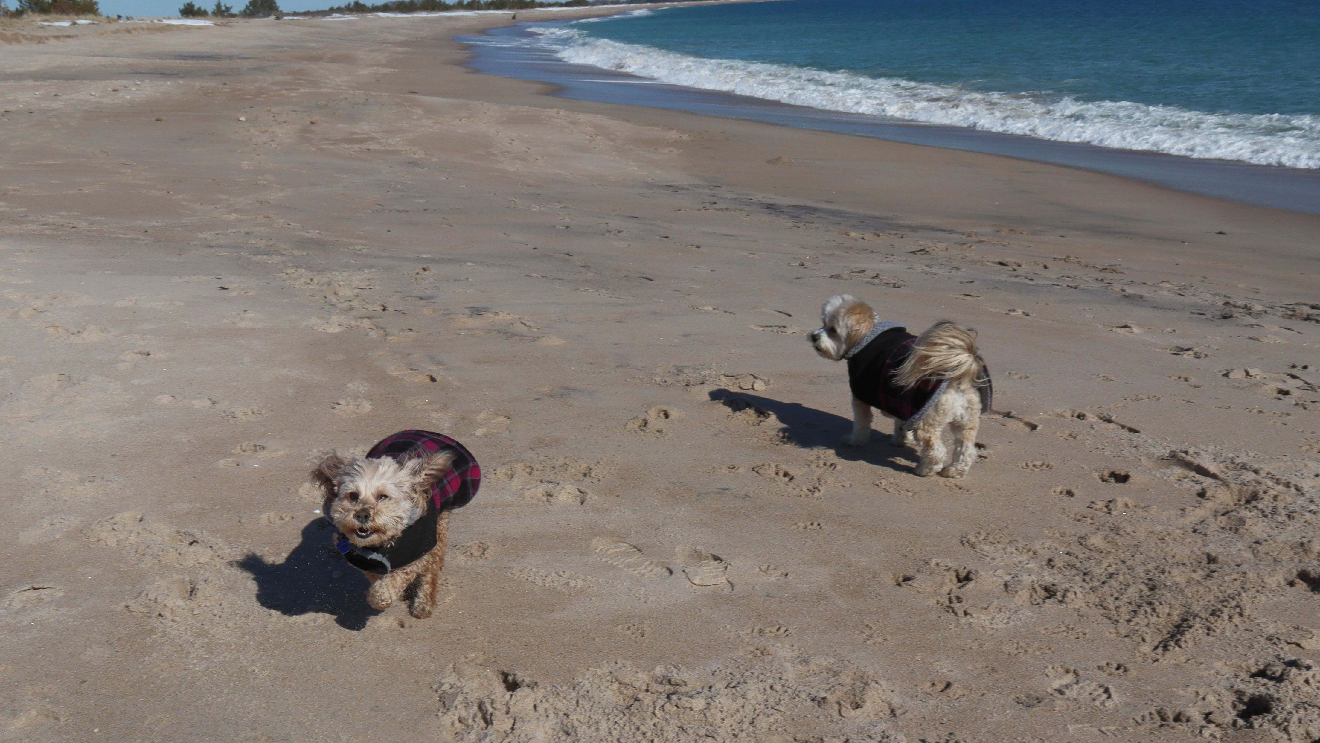 After the weather we've had the last few weeks, it was great to get out on a mild afternoon. We walked over to this beach from Weekapug Overlook. We walked almost three miles total, and Mandy and Lexi got to run and play on the beach. It was a fun afternoon.