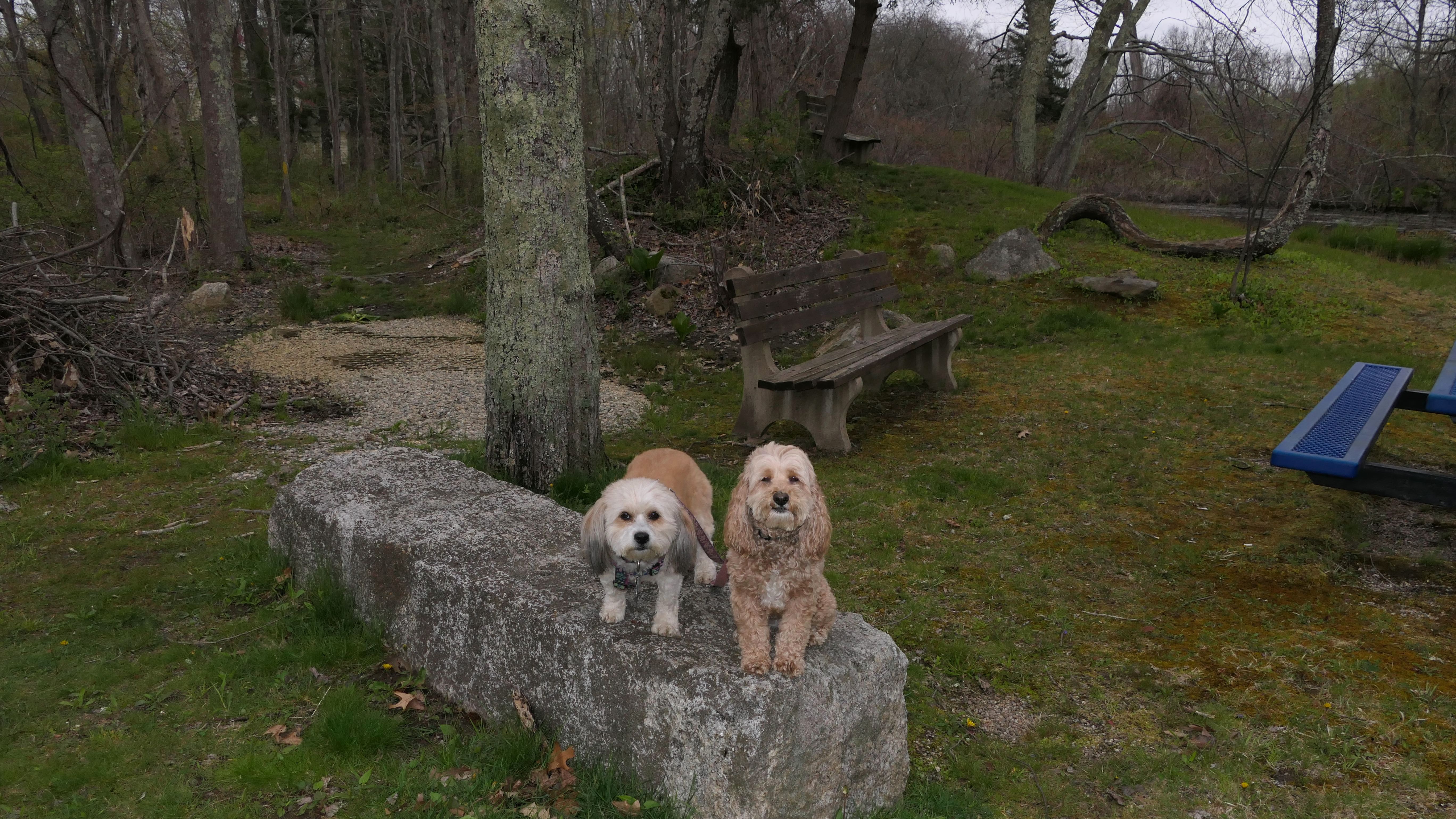 The All-Trails reviews for this trail were so-so, but I was pleasantly surprised. The main trail is the yellow blazed "Percy Cook Trail". It starts at a nice parking lot with a picnic area on Rt 316, and connects with Andover Elementary School, before ending at the Hop River Trail. There is a very steep hill to get down to the Hop River Trail, which of course means a very steep climb back up! On our way back, we used the orange blazed trails that loop back and around the Percy Cook trail. It was a very pleasant hike on a dreary day.