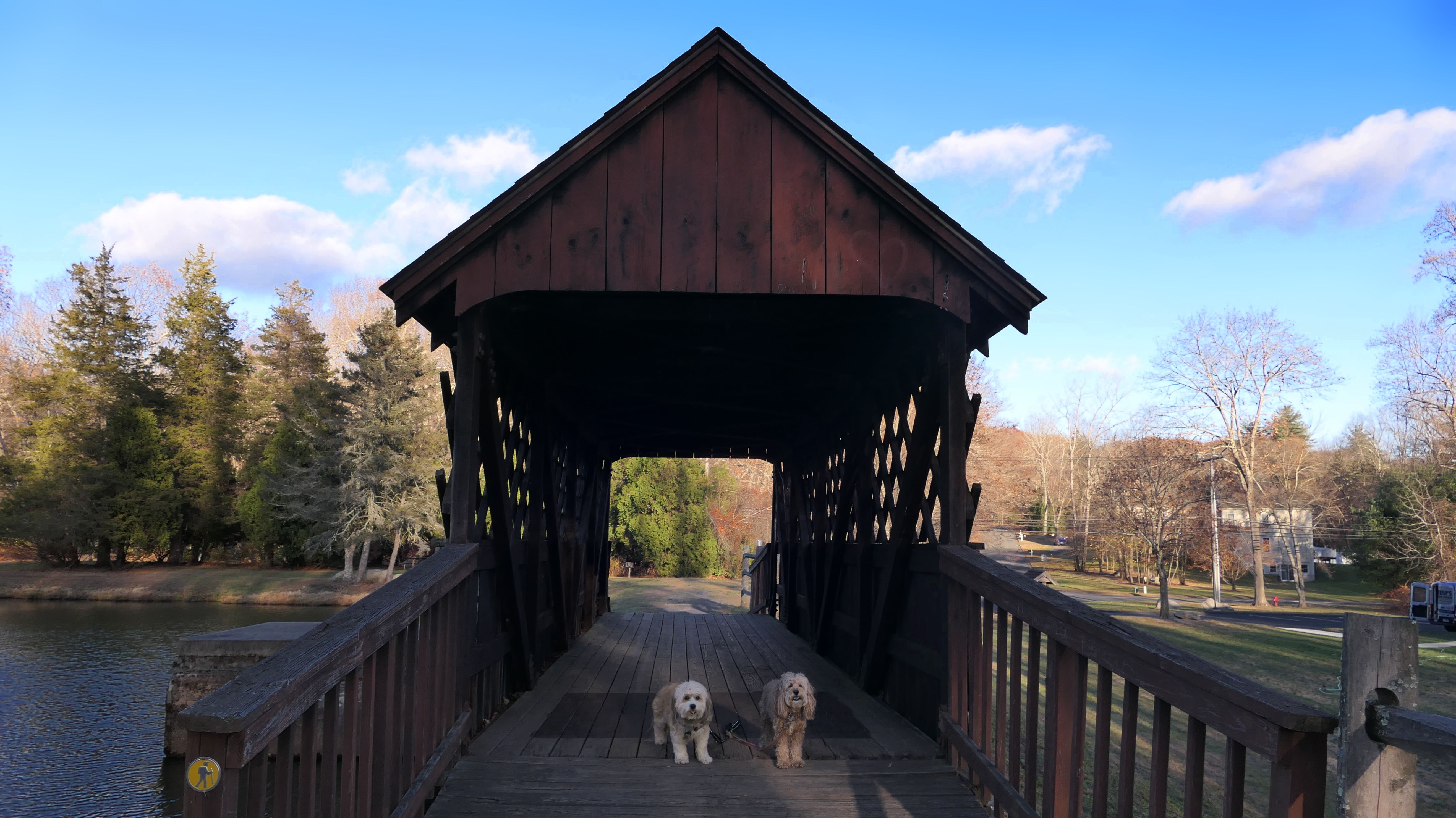 This is a town park with an old-fashioned covered bridge. There are some short trails on the other side of the bridge that connect to Buckingham Park and a series of walking trails.