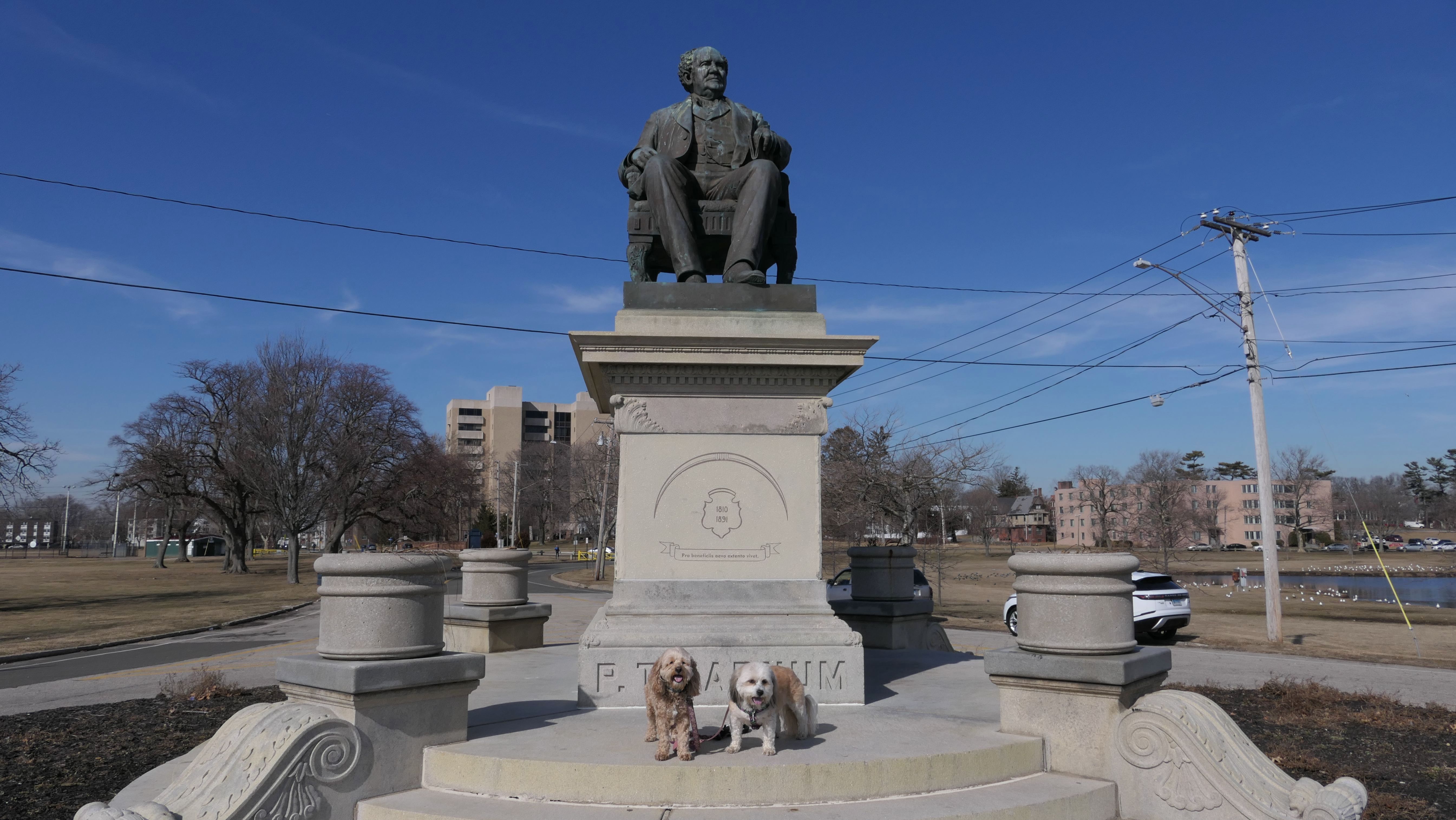 I wanted to come here when I was making my first run through all the towns, but the All-Trails app tagged the trail as "No Dogs". The other issue preventing me from visiting is the parking situation. Evidently, it costs $30-$40 to park if you're not a Bridgeport resident. I happened to see some reviews of this place on other sites which indicated it is a good place to walk your dog. In fact, the "trail", which is just a sidewalk that runs along side the beach for 2 1/2 miles, is dog friendly as they even have a few poop bag dispensers. As for the parking situation, we simply parked on one of the nearby streets that go through the University of Bridgeport campus. The park seems nice. Besides the beach, there is a grassy area with picnic tables and athletic fields, and a lot of statues and monuments, including a statue of P.T. Barnum. I knew he was famous for the circus, but I did not know that he was once mayor of Bridgeport! It was another unusually warm February day, so it was a great day to go for a walk by the beach!