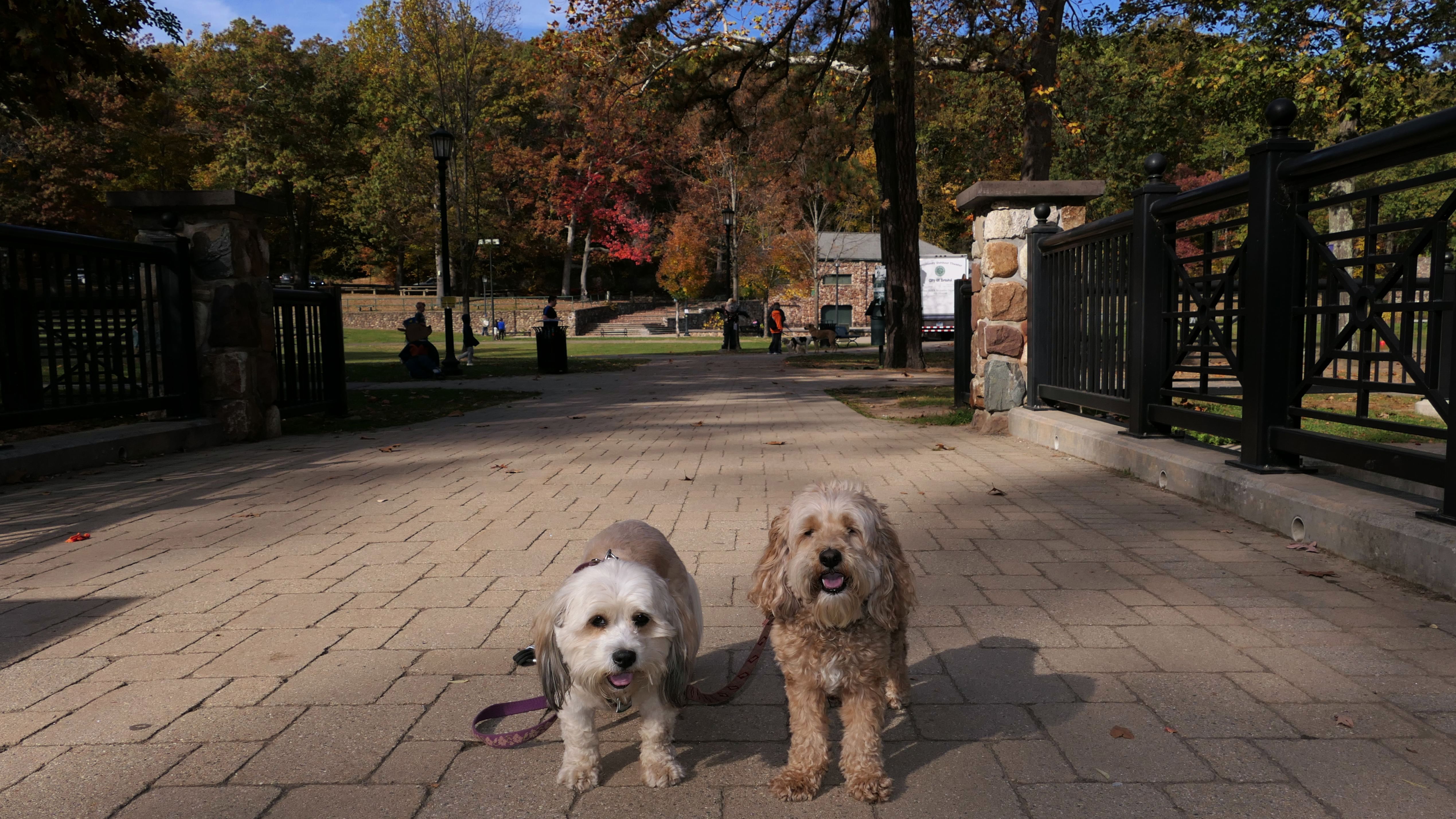 I was impressed with this park. I thought it was really nice. There's a lot going on here, a pond, some trails, some athletic courts, etc. It was kind of a gray and gloomy day, and the dogs were a mess from the trail we did prior to this. I planned to come back in the spring when the weather was nicer and there is more color, but never did. Instead, I returned in the autumn, and the park was beautiful!