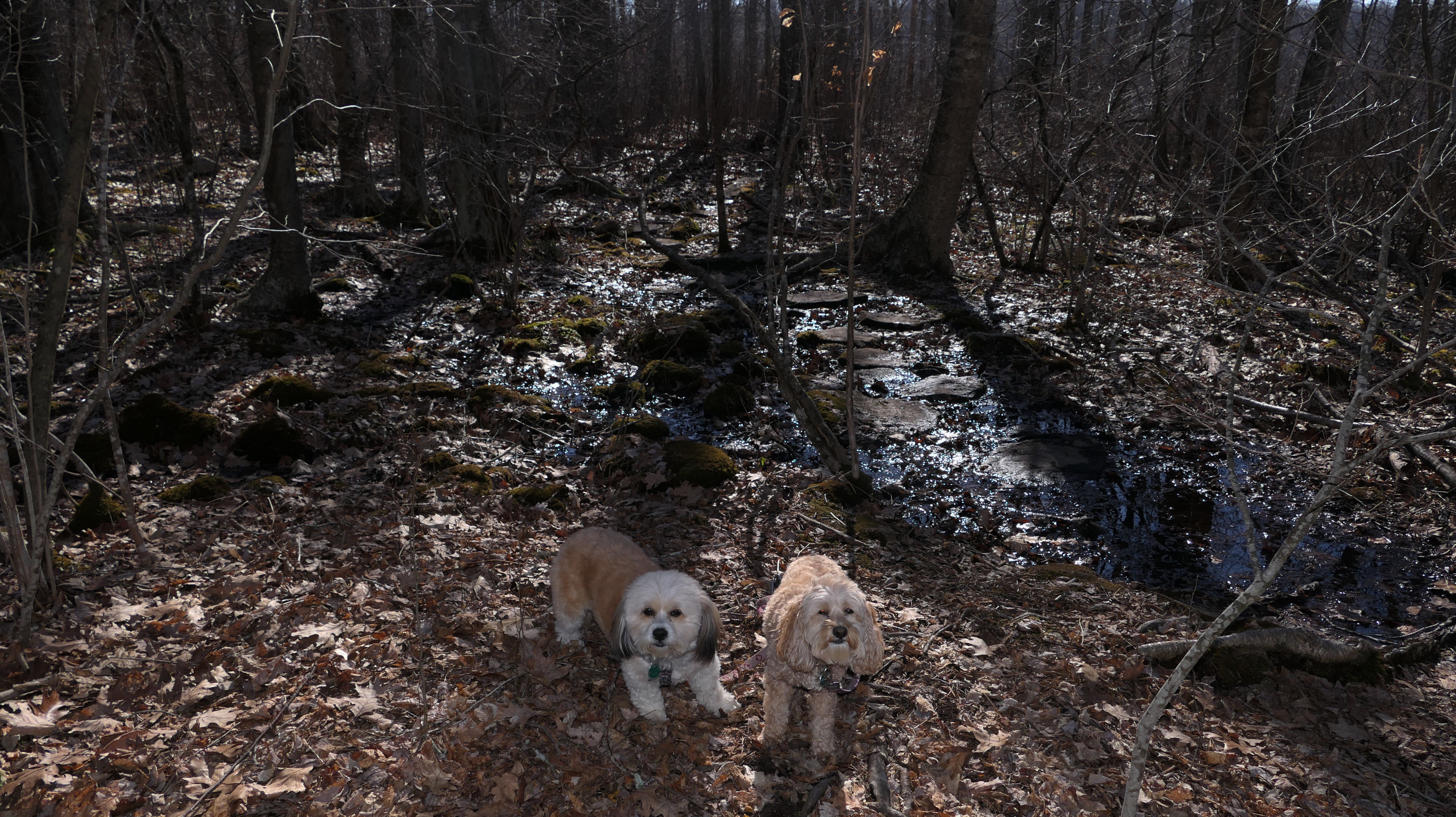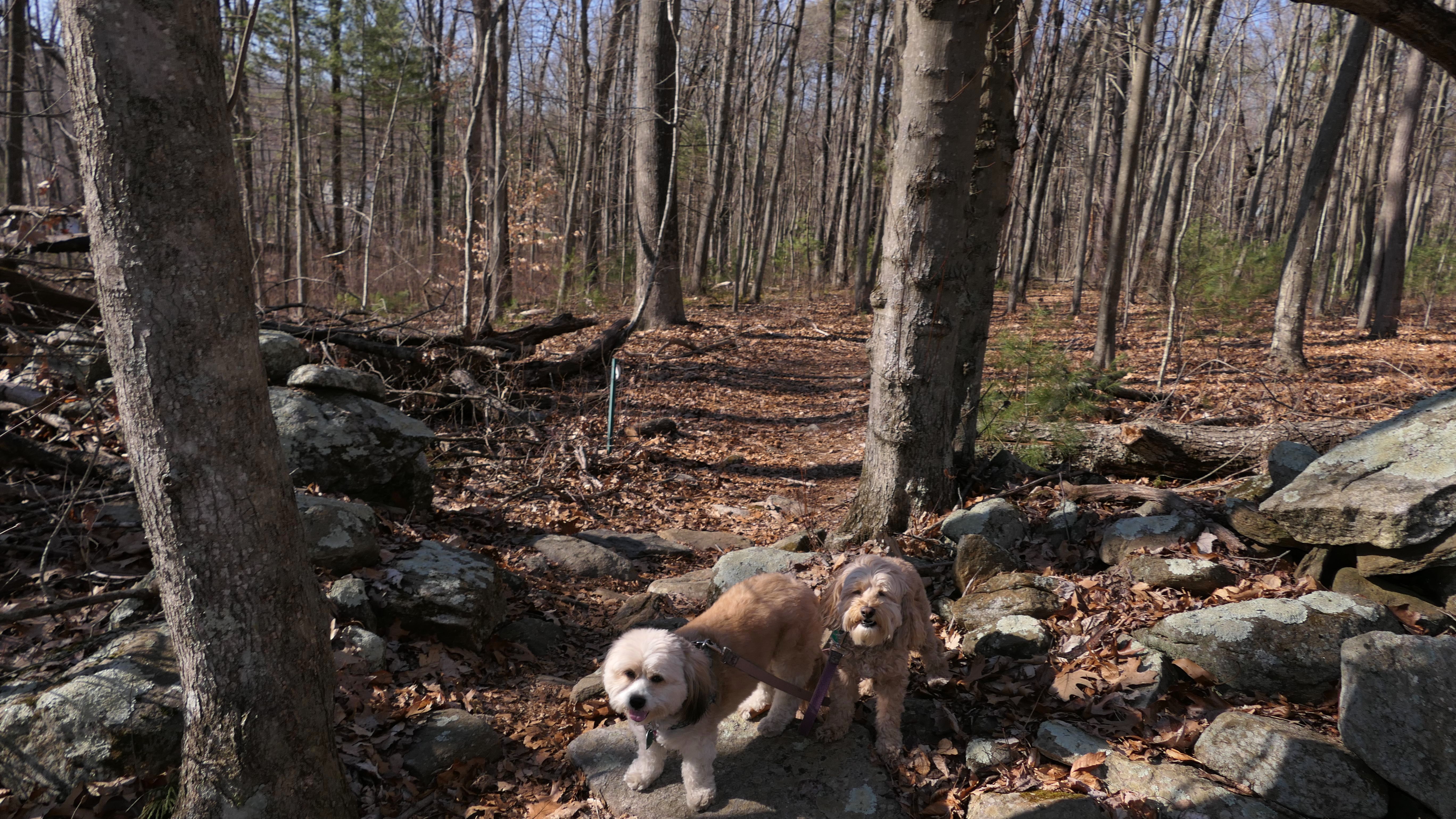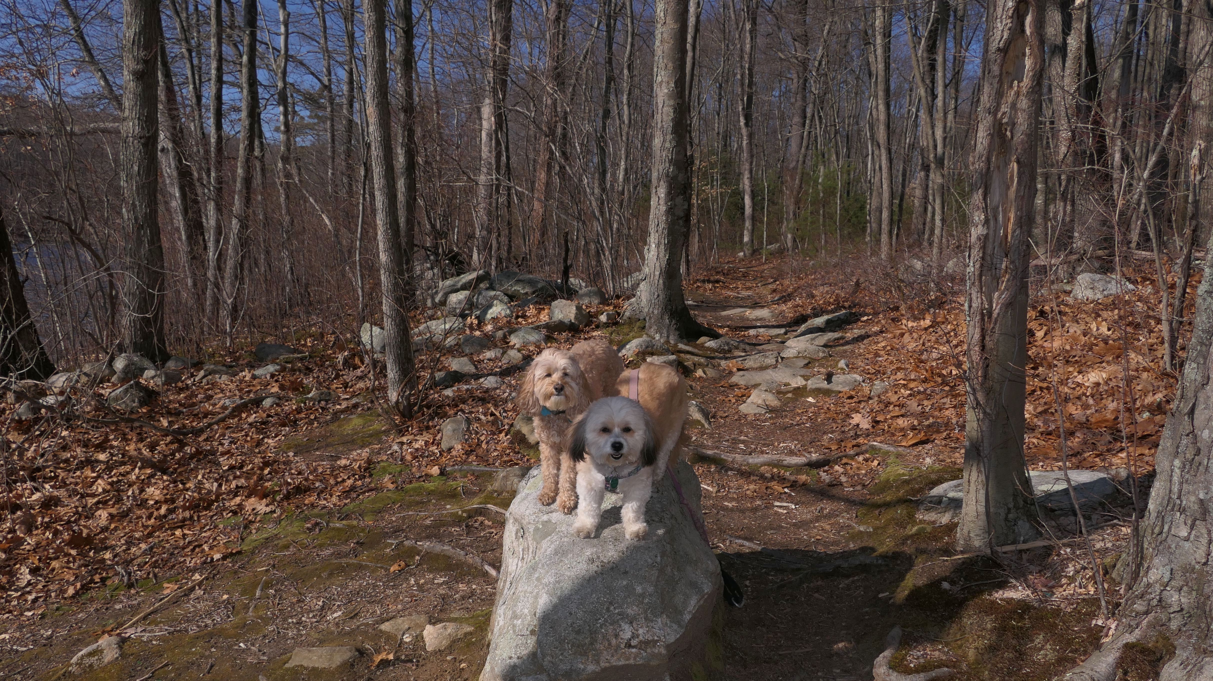 This is a small state park. It's so small, the sign calls it a recreation area, not a park. At any rate, the state land is the area east and south of Mono Pond. It's a nice pond that was quite scenic, even at the very end of winter (It was the first day of spring, but it didn't start officially until 5:24 PM, and we were here a couple hours before that). There's a trail that runs along side the pond. I was amazed that the trail was dry, that is until it wasn't. About half way through, the trail was completely washed out. I couldn't find a way around the flooded area...at least not with the dogs! So we didn't finish the trail. I was also surprised at the number of flying gnats, considering it wasn't even spring yet. Still it was a very nice day, and the pond was lovely, so it wasn't a bad way to spend a half hour or so with the dogs.