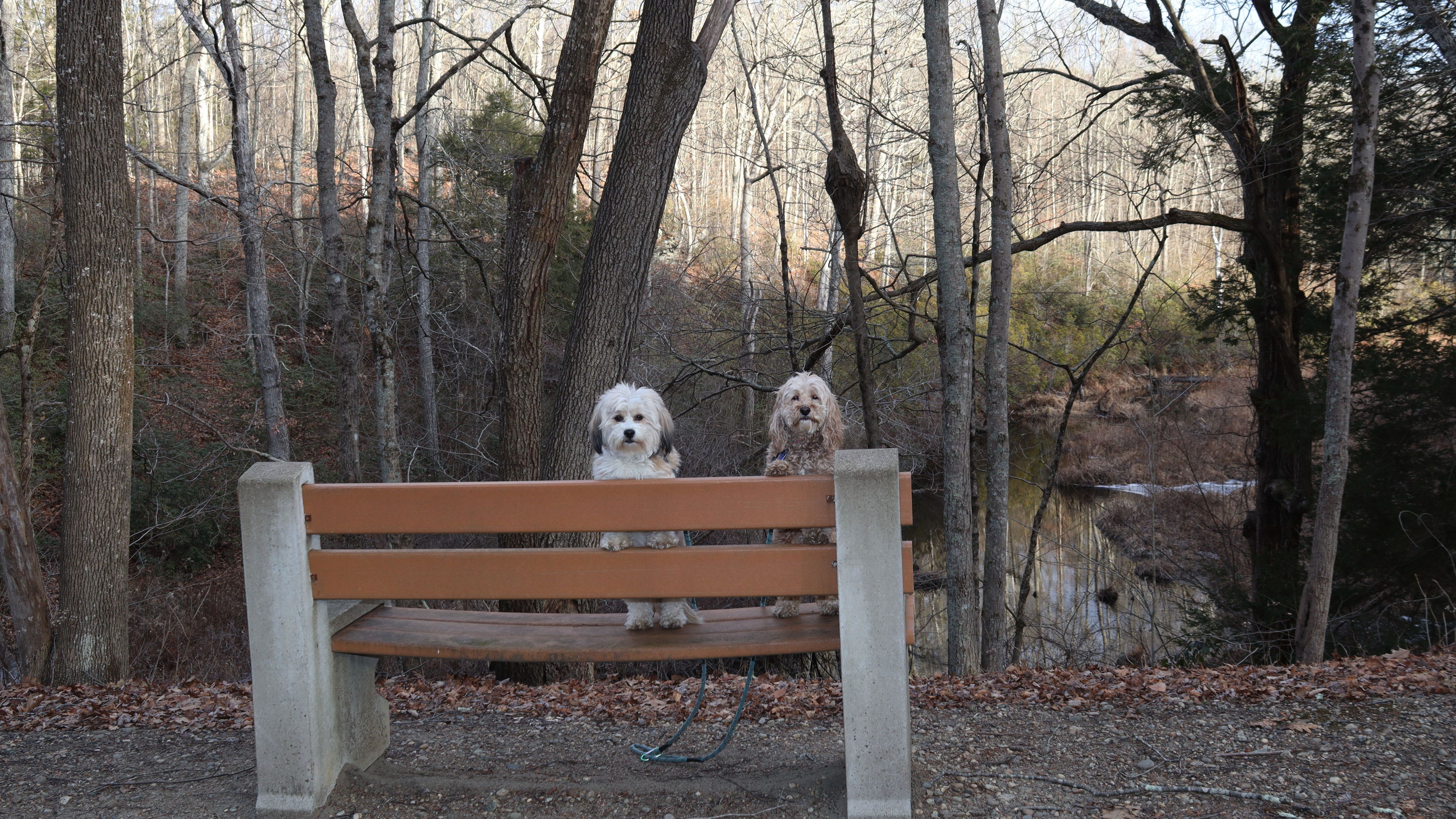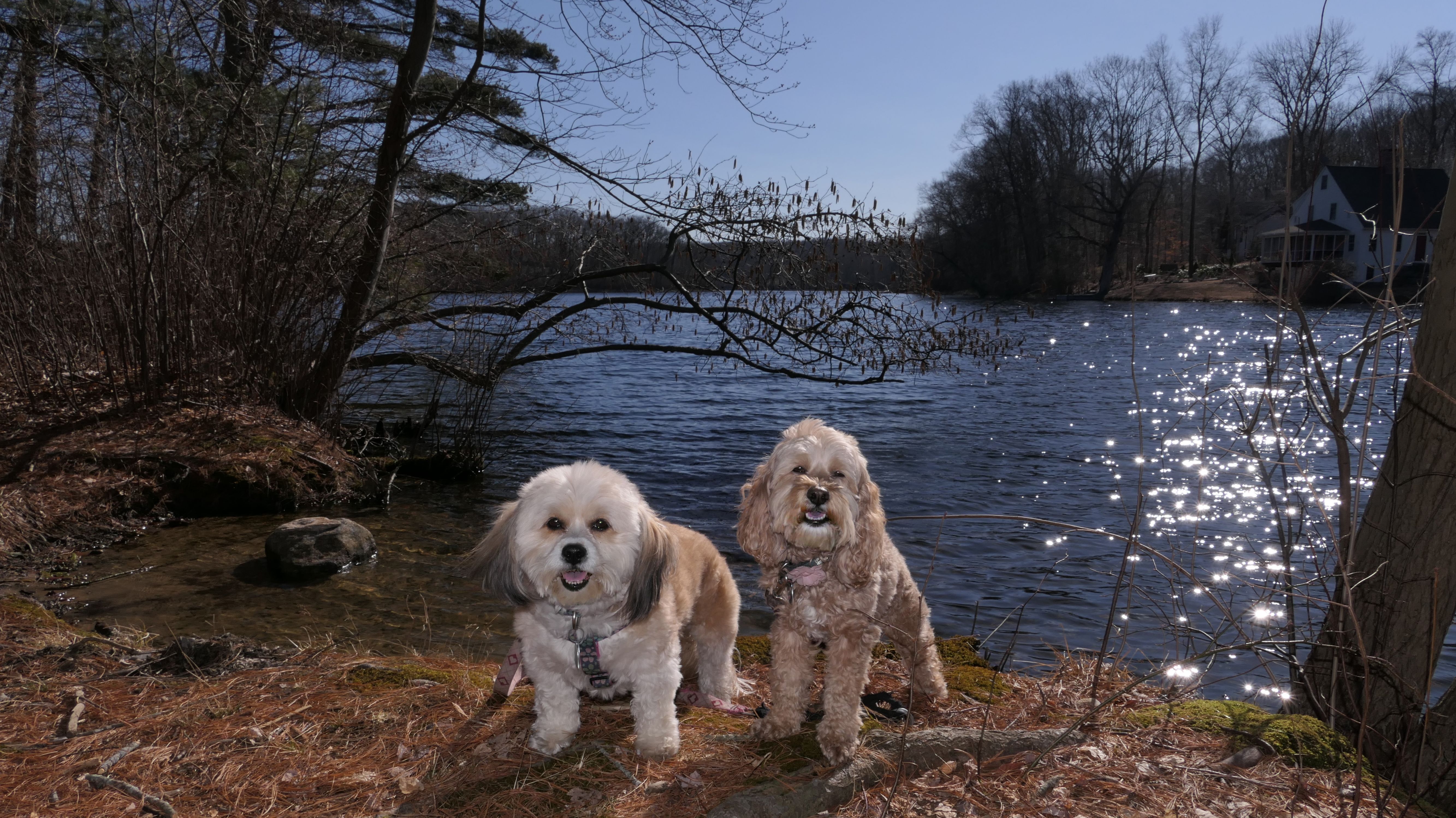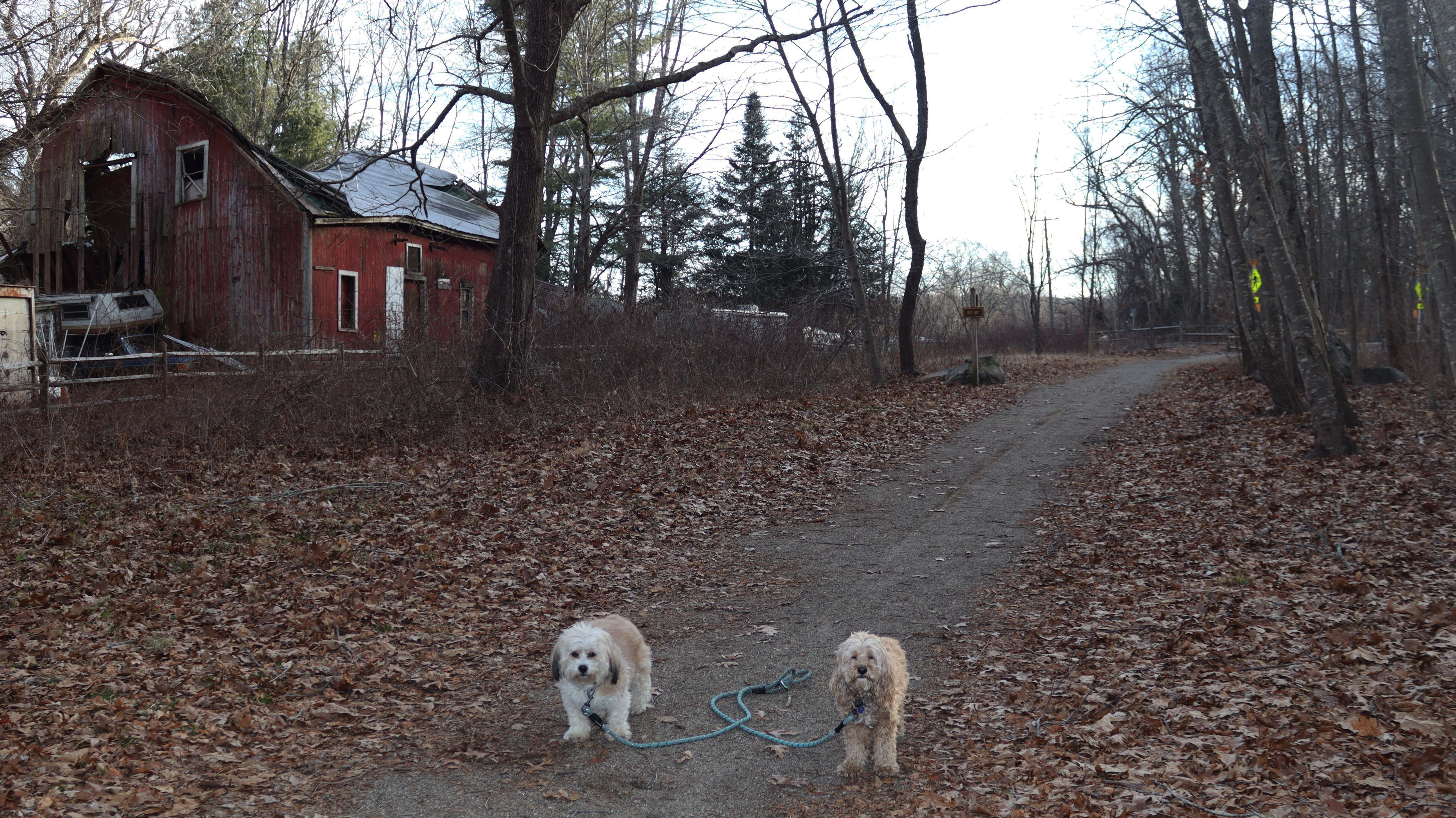 This is a small state park. It's so small, the sign calls it a recreation area, not a park. At any rate, the state land is the area east and south of Mono Pond. It's a nice pond that was quite scenic, even at the very end of winter (It was the first day of spring, but it didn't start officially until 5:24 PM, and we were here a couple hours before that). There's a trail that runs along side the pond. I was amazed that the trail was dry, that is until it wasn't. About half way through, the trail was completely washed out. I couldn't find a way around the flooded area...at least not with the dogs! So we didn't finish the trail. I was also surprised at the number of flying gnats, considering it wasn't even spring yet. Still it was a very nice day, and the pond was lovely, so it wasn't a bad way to spend a half hour or so with the dogs.