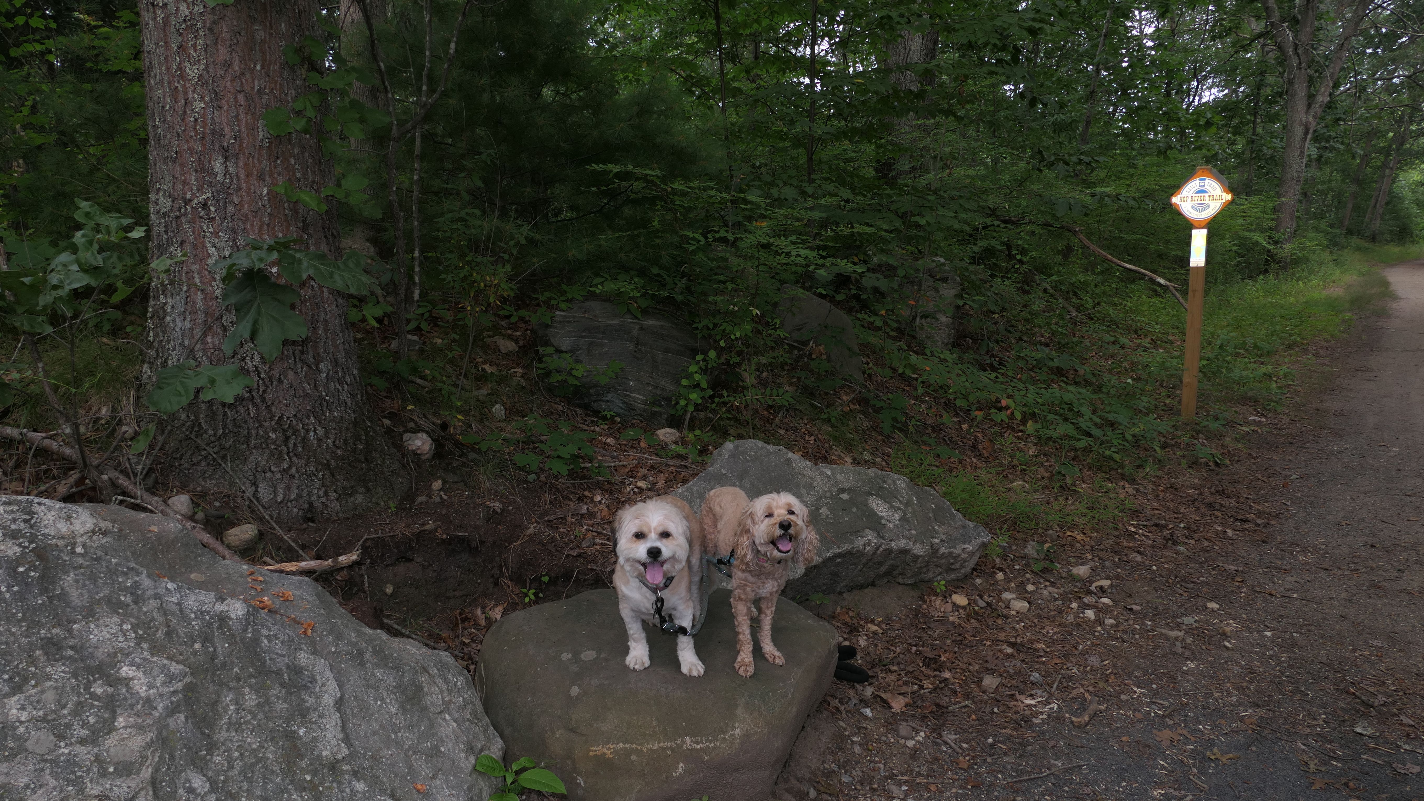 This is the continuation of our second go around on the Hop River Trail. This was the section from the Hop River Road parking area in Coventry, to where we left off last time at Parker Bridge Road on the Columbia/Andover town line. Most of this short 1.5 mile section is in Columbia. Wildfire smoke from Canada affecting the air quality, and to be honest, I wasn't feeling that great, so we only walked about 3 miles total.