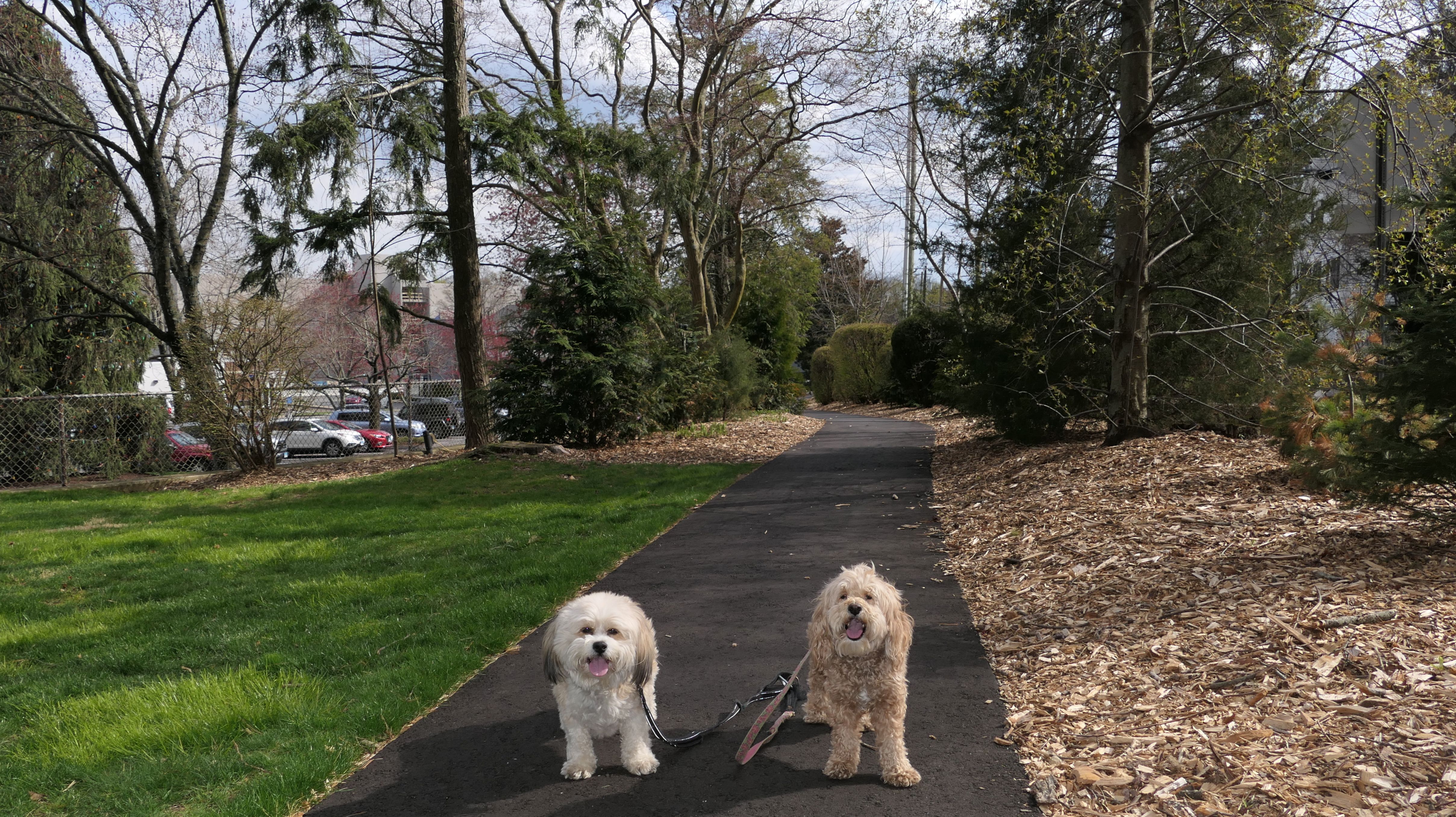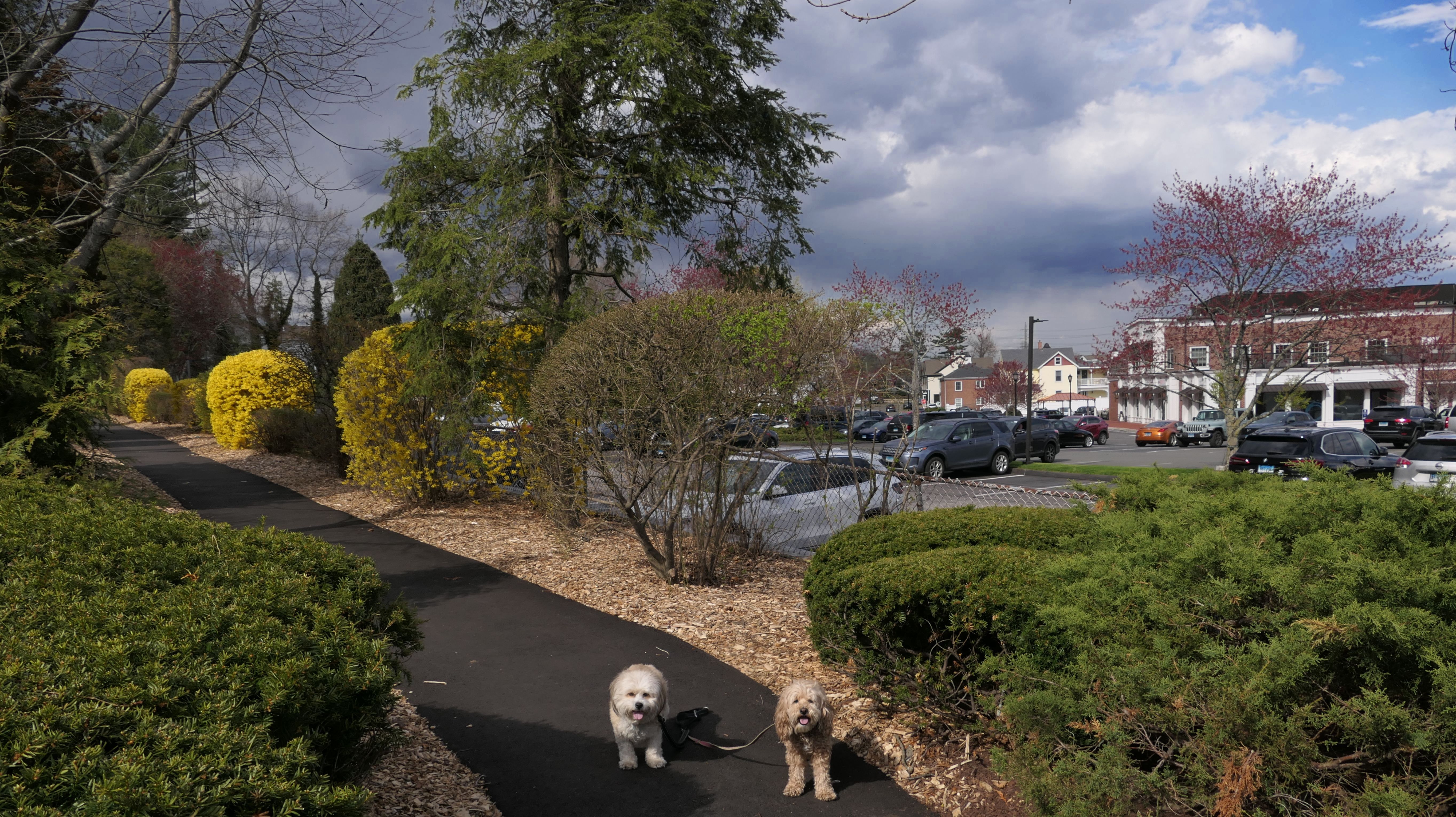 This is a nice park across the street from the train station. It's a very popular place to bring your dog for a walk. Dogs are actually allowed off-leash in the park from dawn until 10:30 AM, Monday through Friday. We weren't here during that time period, so they stayed on leash. It was a weird day weather-wise. The sun popped out for a bit. The park isn't that large, so we walked a bit through the shopping area nearby, before the winds picked up and it started to rain.