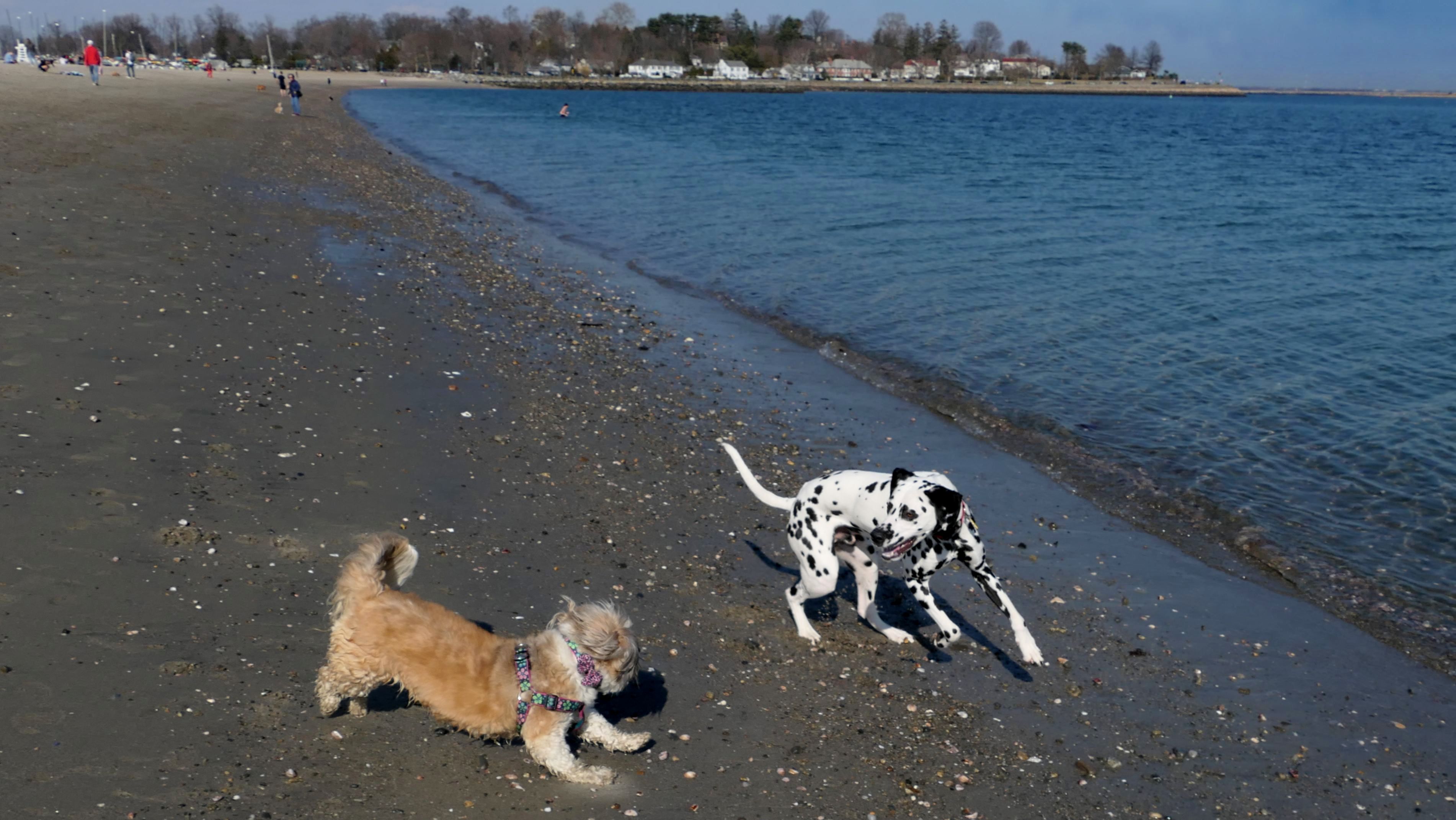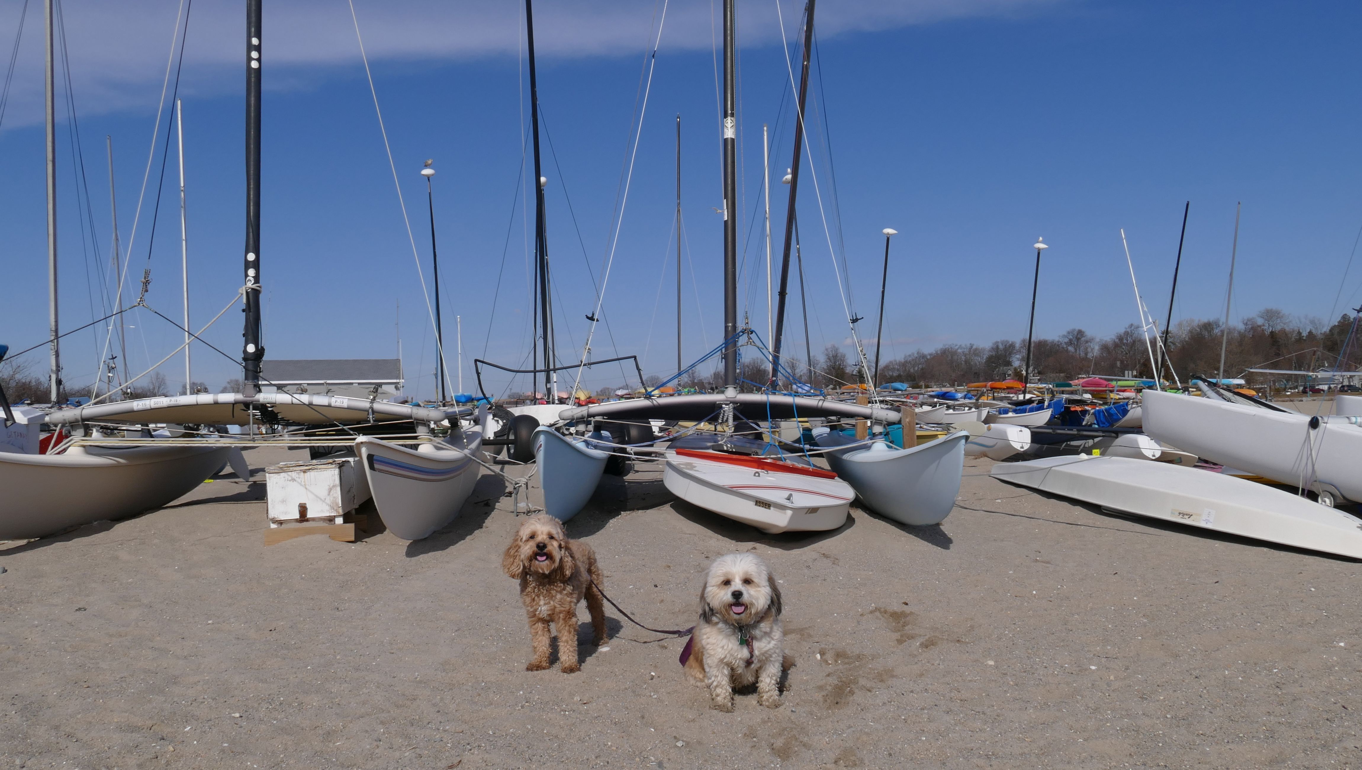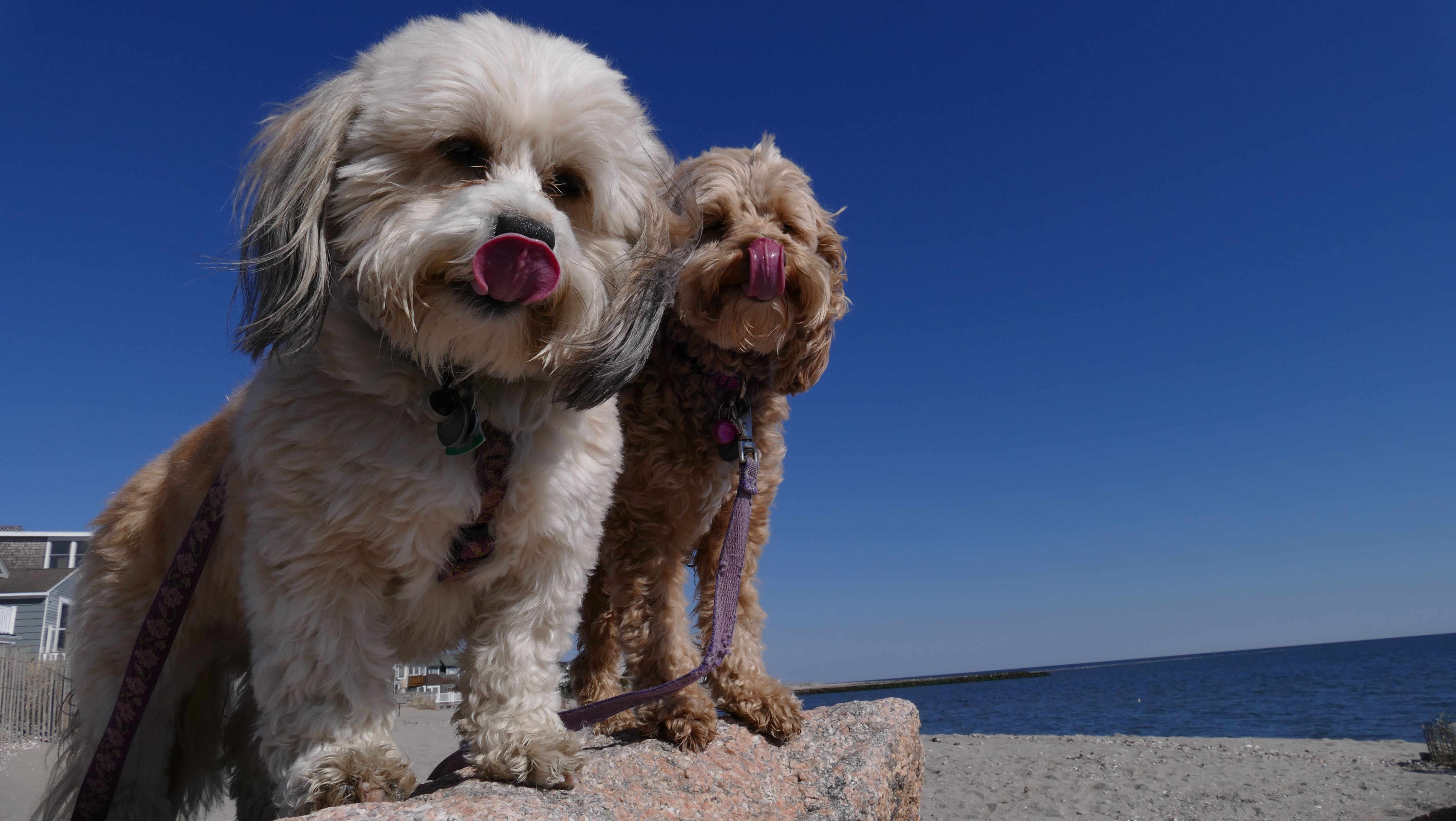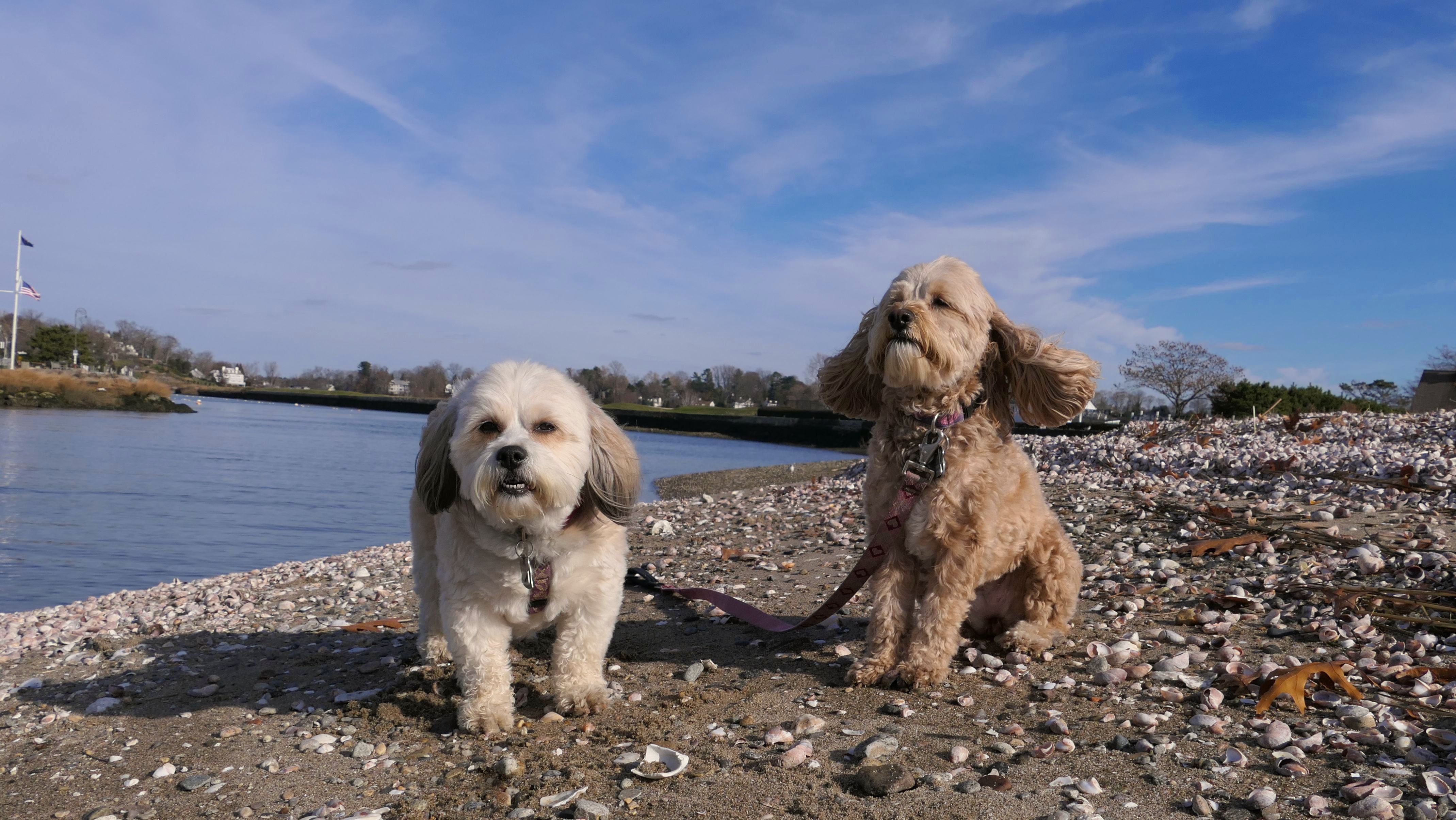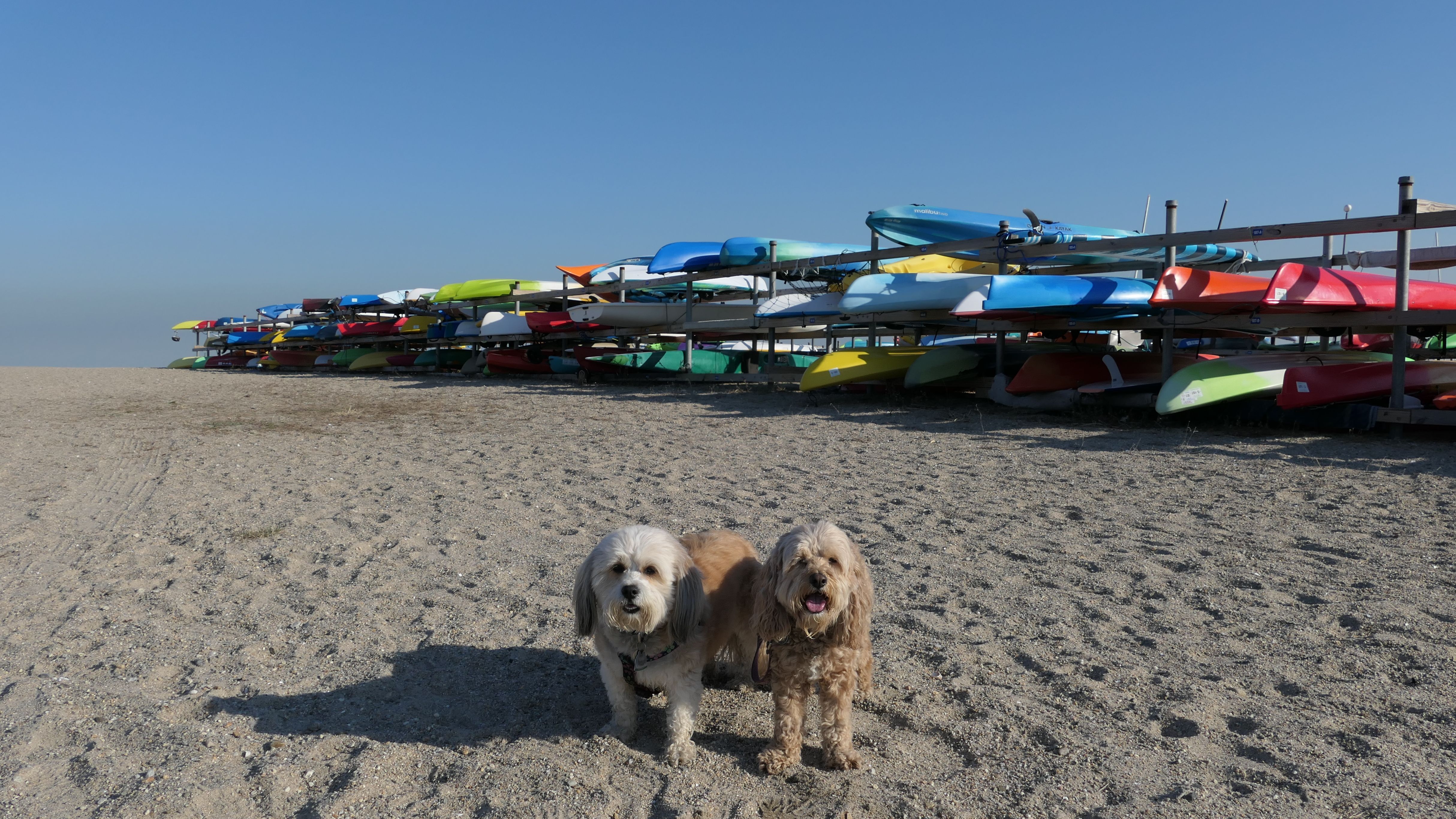 Our fourth visit here was on a warm Friday in mid March. We arrived after hiking at Pine Creek and Ash Creek. Since we had already done our walks, I brought the pups here just to play. Unfortunately they were too tired and didn't play all that much, so we explored the area near the rocks on the part of the beach near the Bridgeport border. They did invade a picnic. Fortunately, the women loved the dogs and didn't mind.
