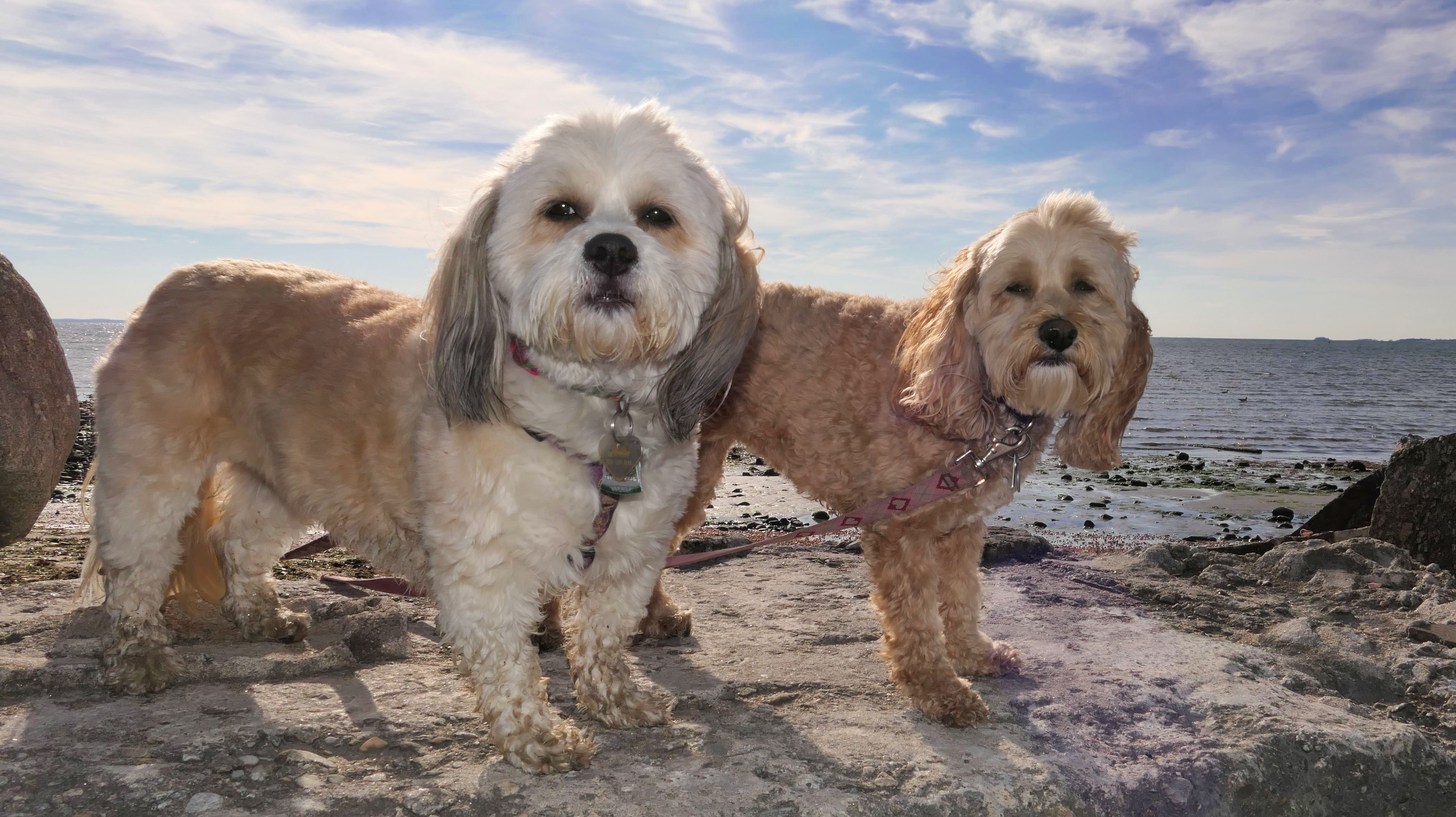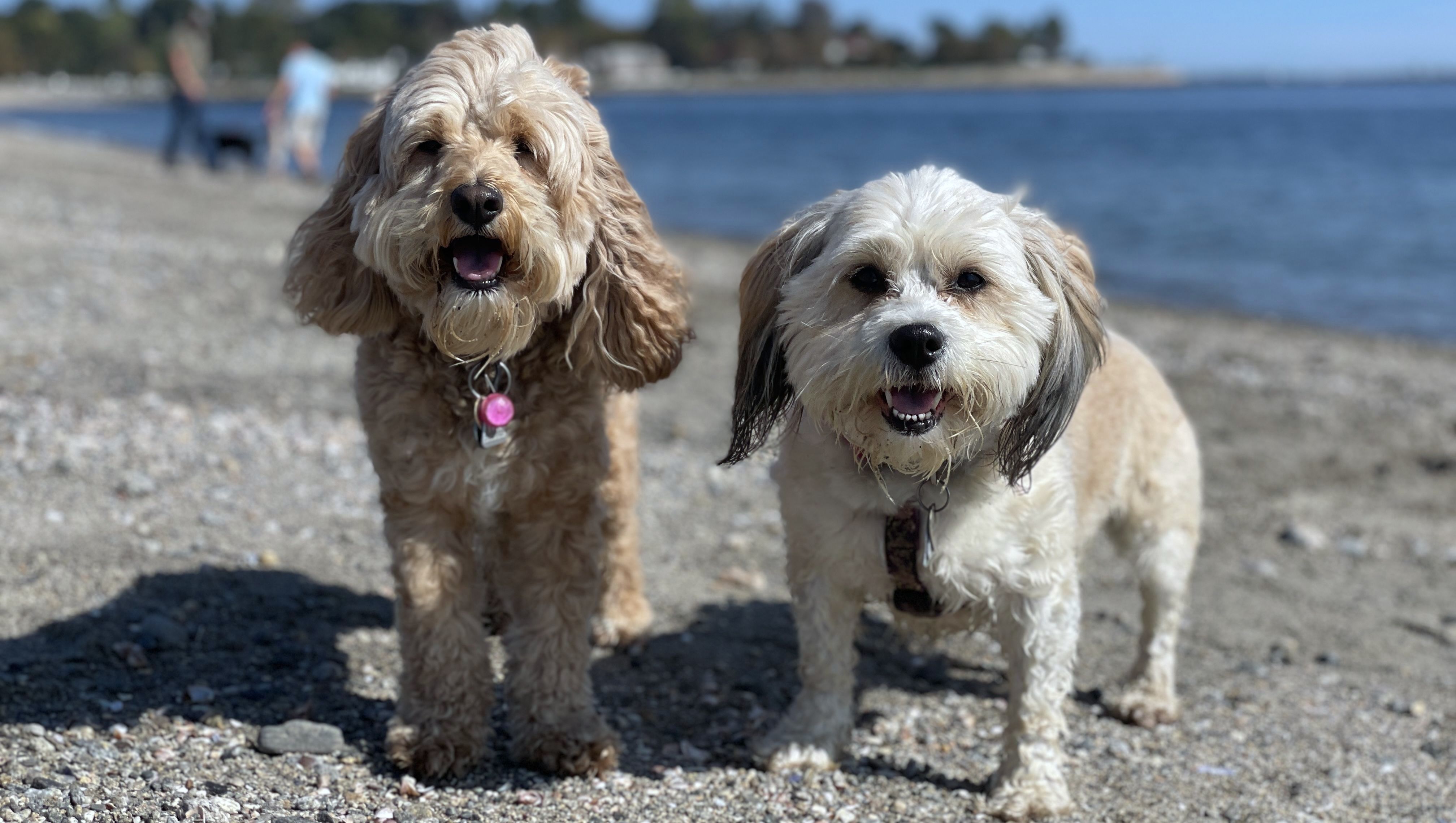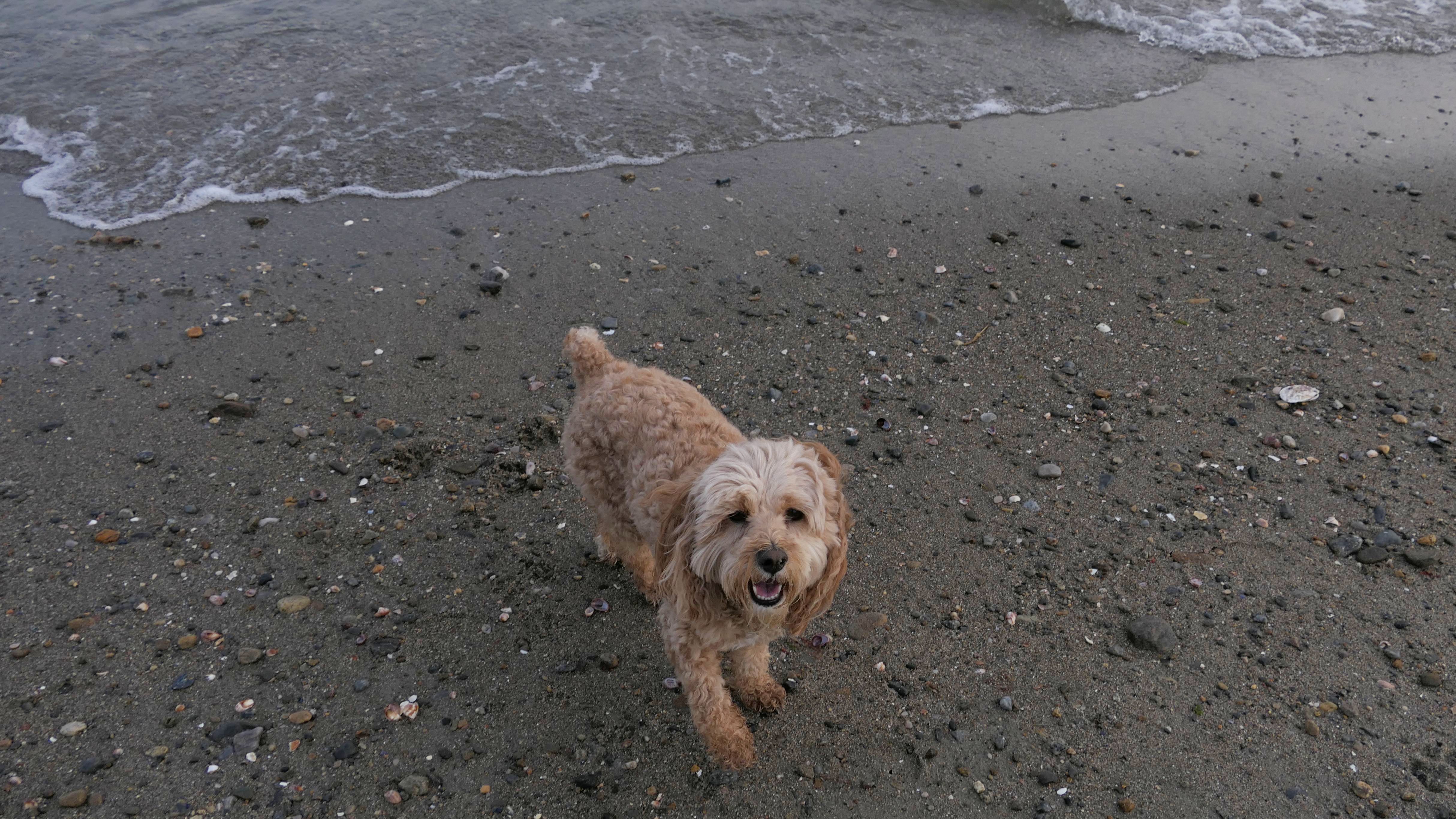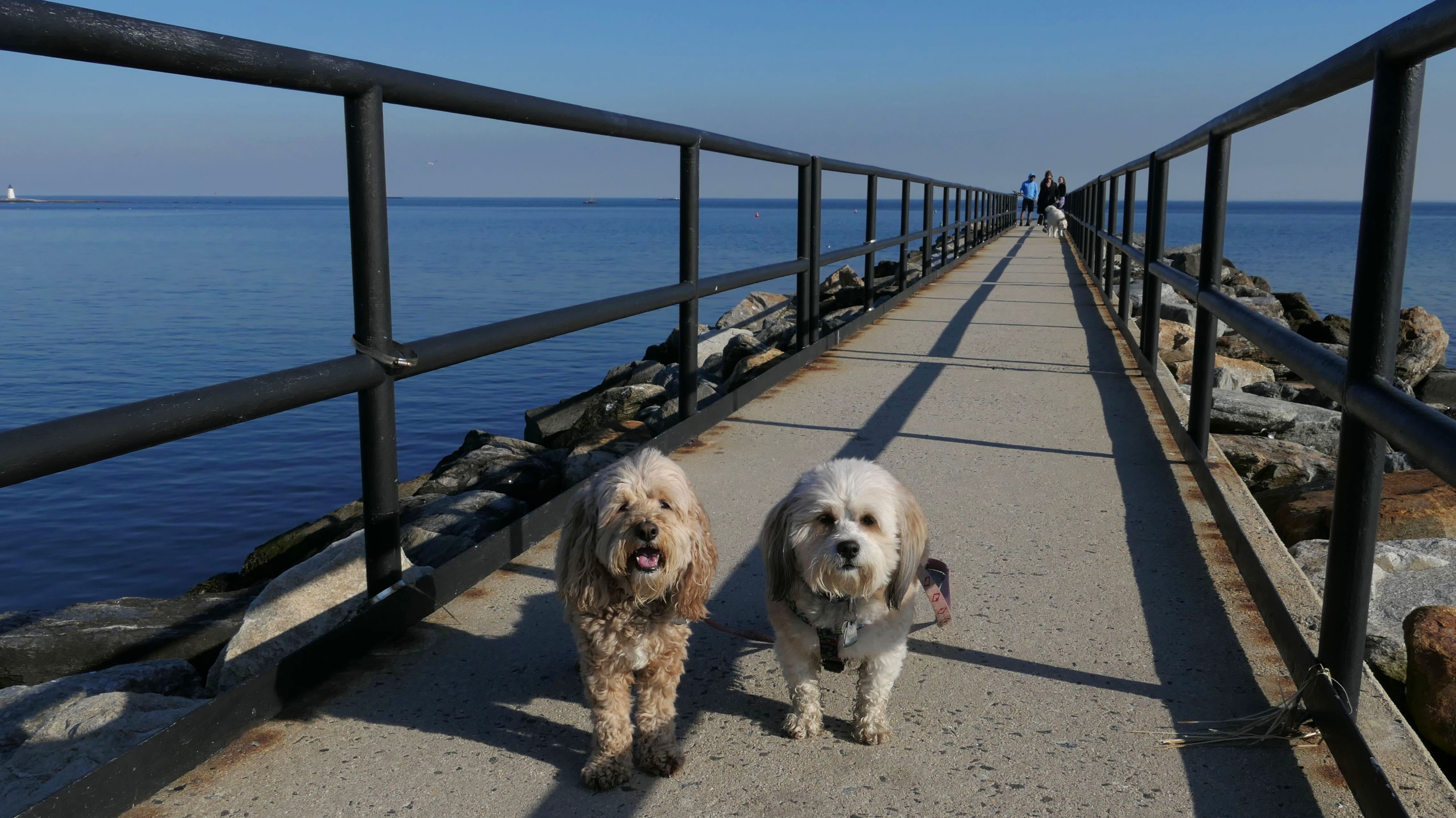 Our fourth visit here was on a warm Friday in mid March. We arrived after hiking at Pine Creek and Ash Creek. Since we had already done our walks, I brought the pups here just to play. Unfortunately they were too tired and didn't play all that much, so we explored the area near the rocks on the part of the beach near the Bridgeport border. They did invade a picnic. Fortunately, the women loved the dogs and didn't mind.