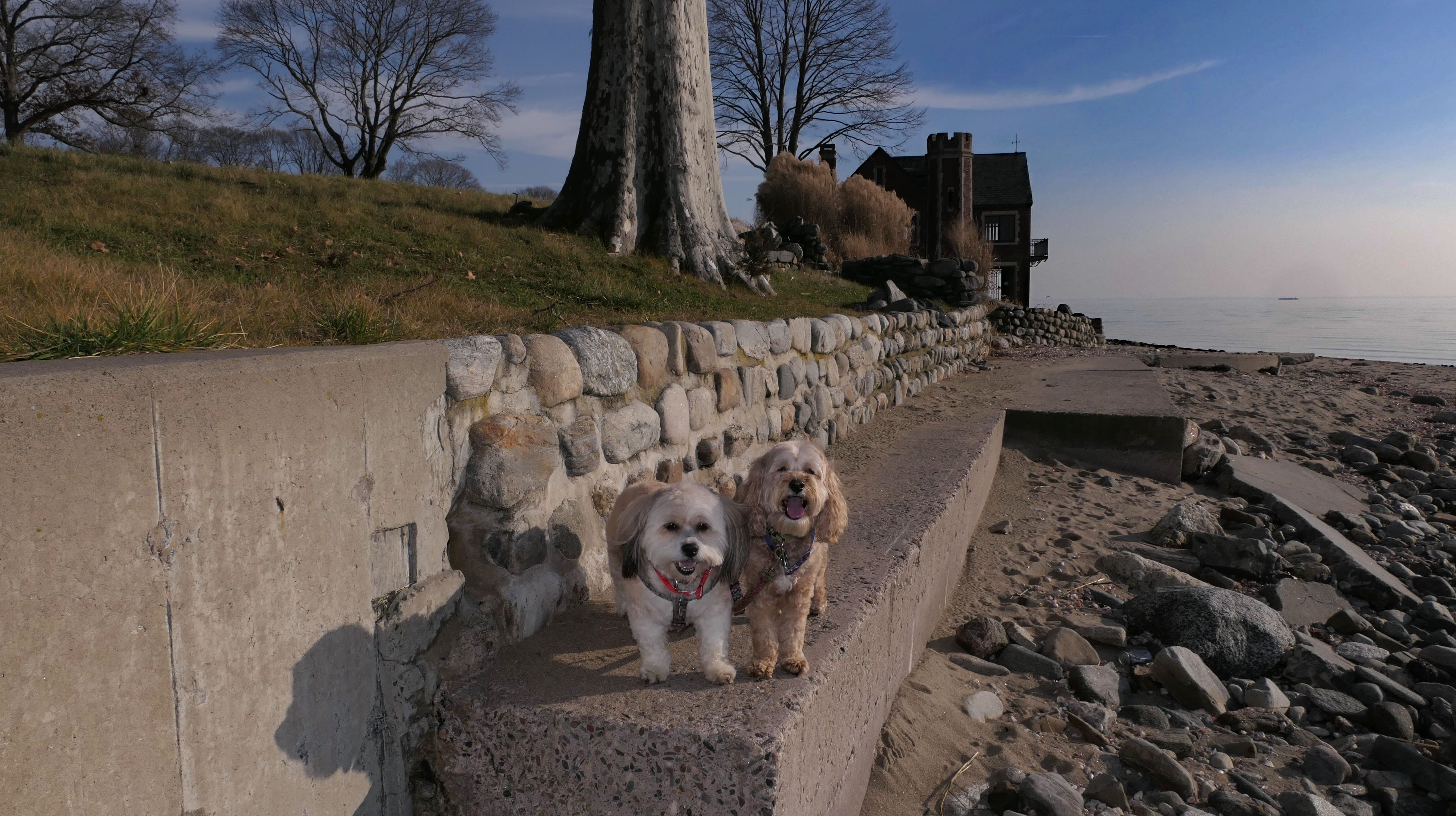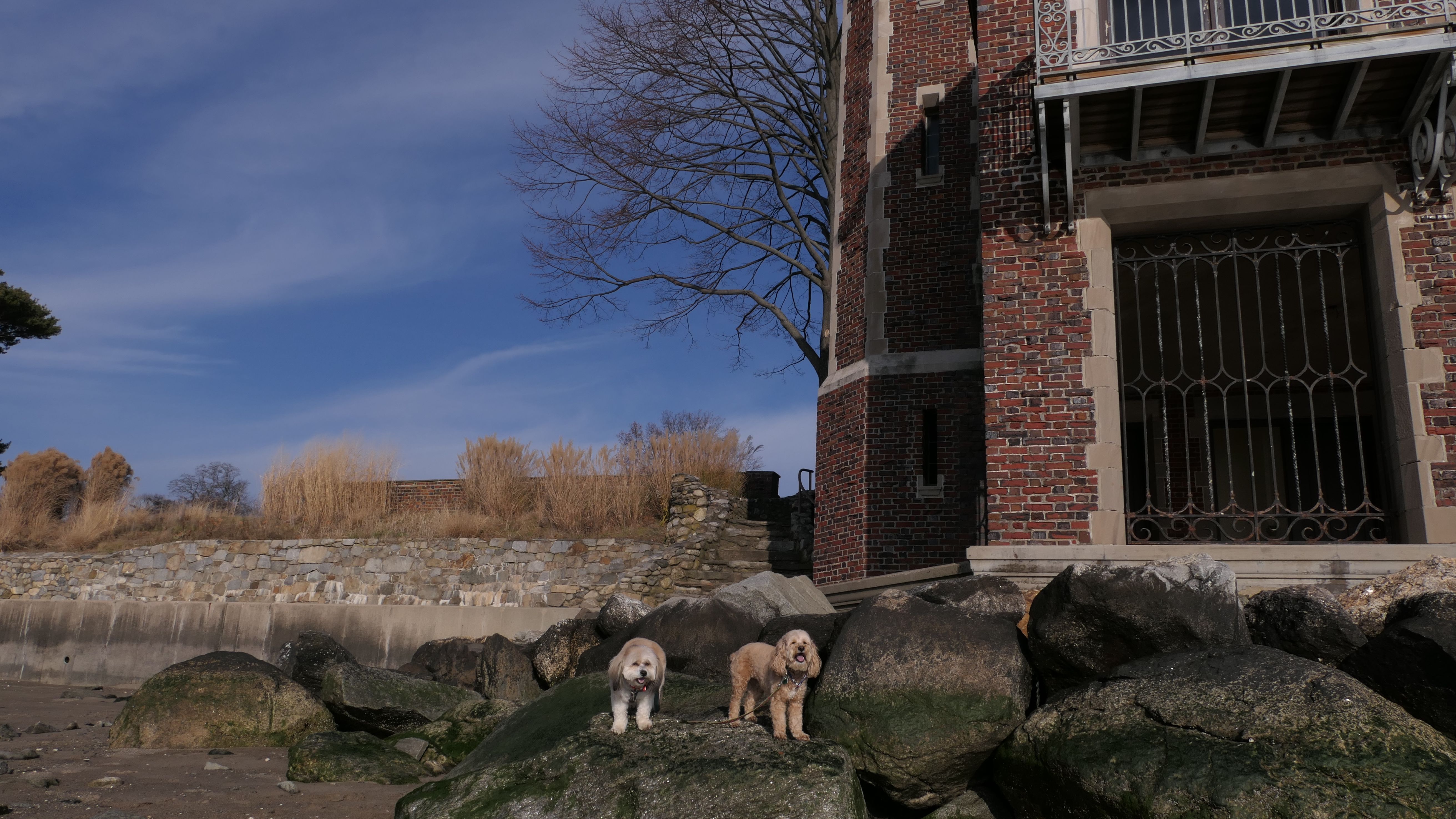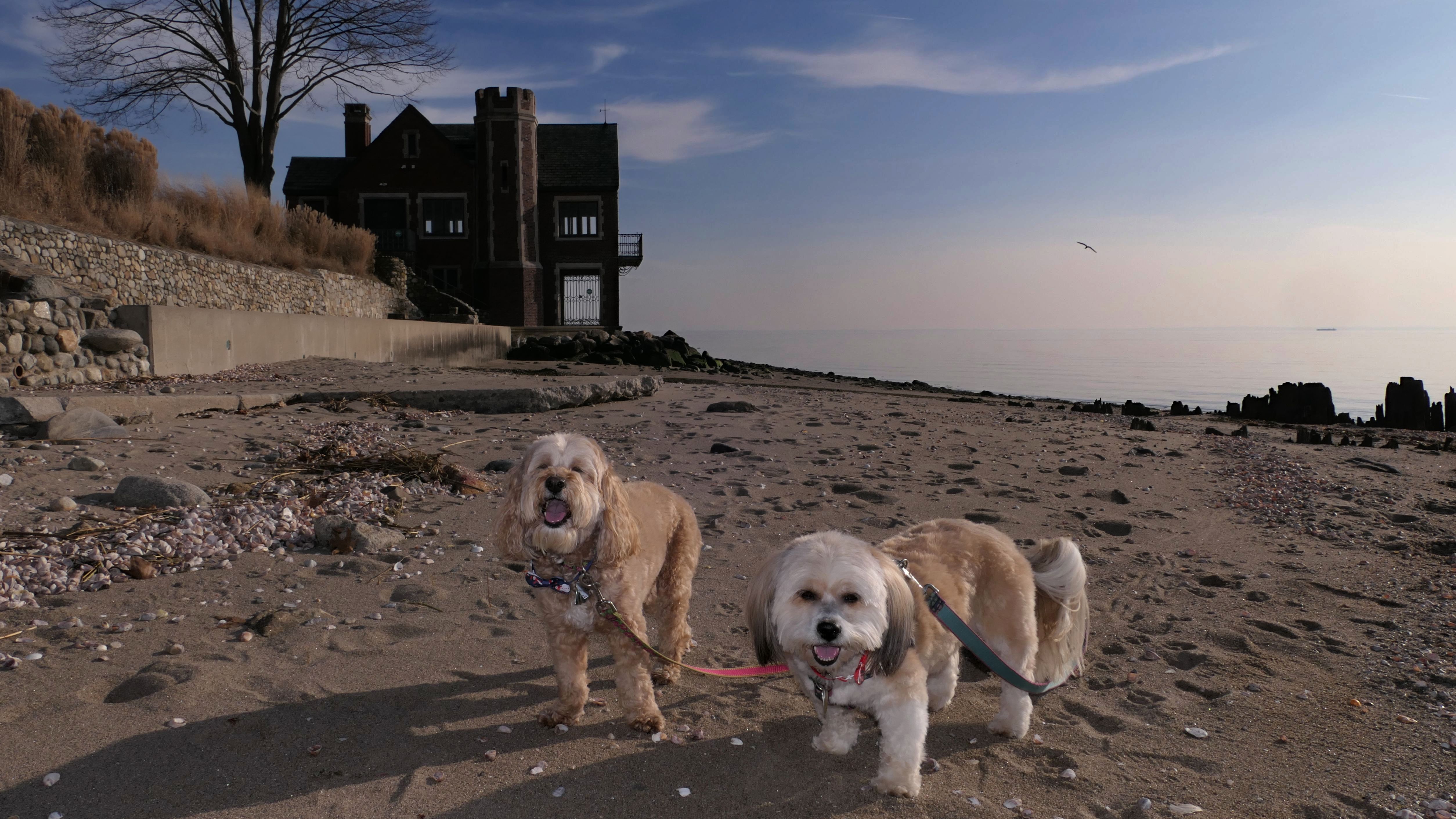 This beach was a pleasant surprise. Like the other Fairfield town beaches, dogs are allowed Oct 1st through March 31st. The beach looks super small, but according to the sign, the public is allowed on the adjacent waterfront up to the "median high tide line." We headed northwest toward Sasco Beach, a beach we visited just over two years prior. We walked around a bend, where we encountered a fancy building of some sorts. I think it belongs to the Fairfield Country Club, but I'm not sure. We of course stopped to take pictures in front of it. We also checked out the grassy area behind the building. We probably weren't supposed to be there, but we didn't stay there very long. There's a short rocky area before Sasco beach, but since we had already visited that beach, we turned around and headed back. We walked just over a mile here total, and headed to nearby Southport Beach next.