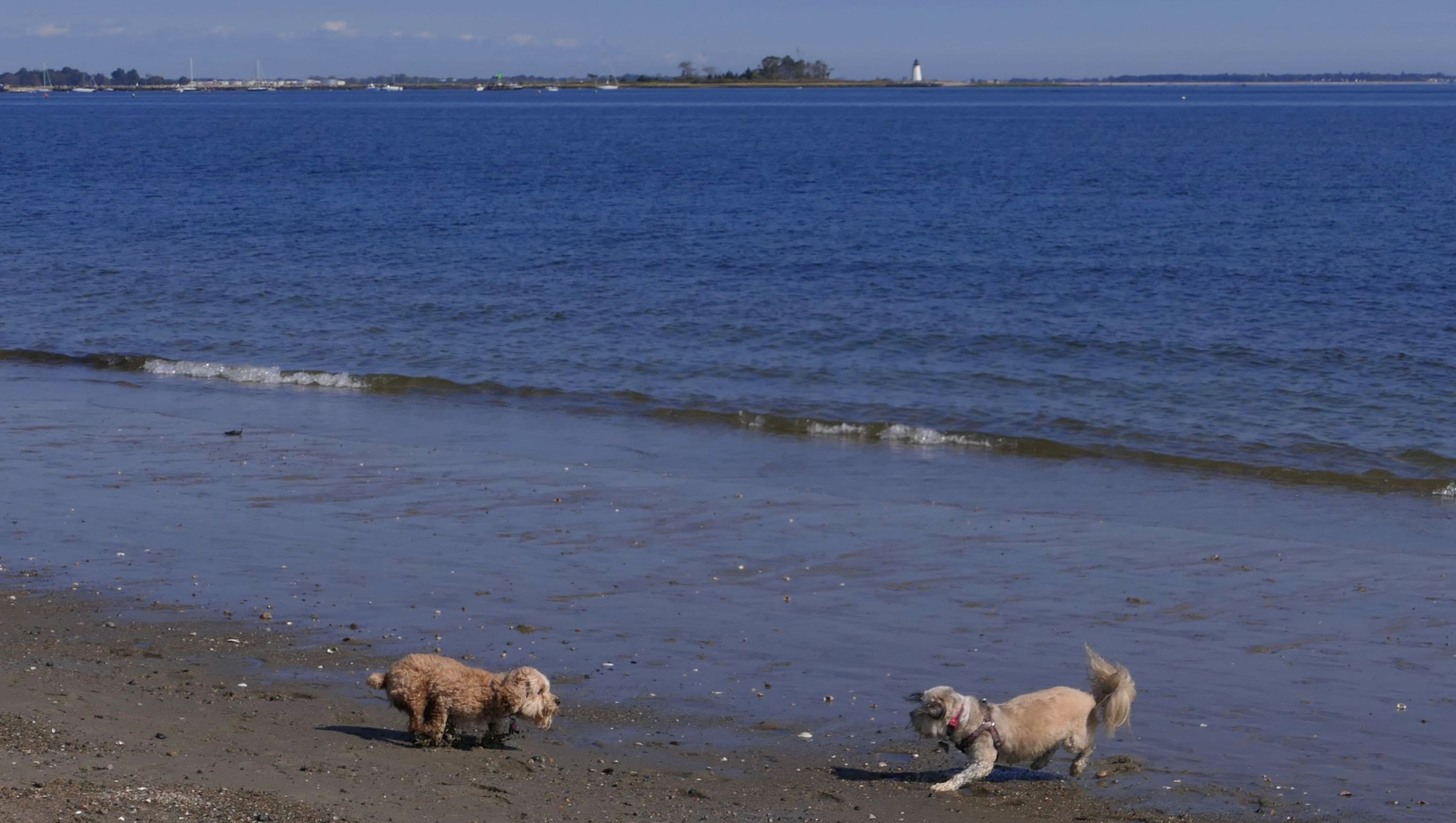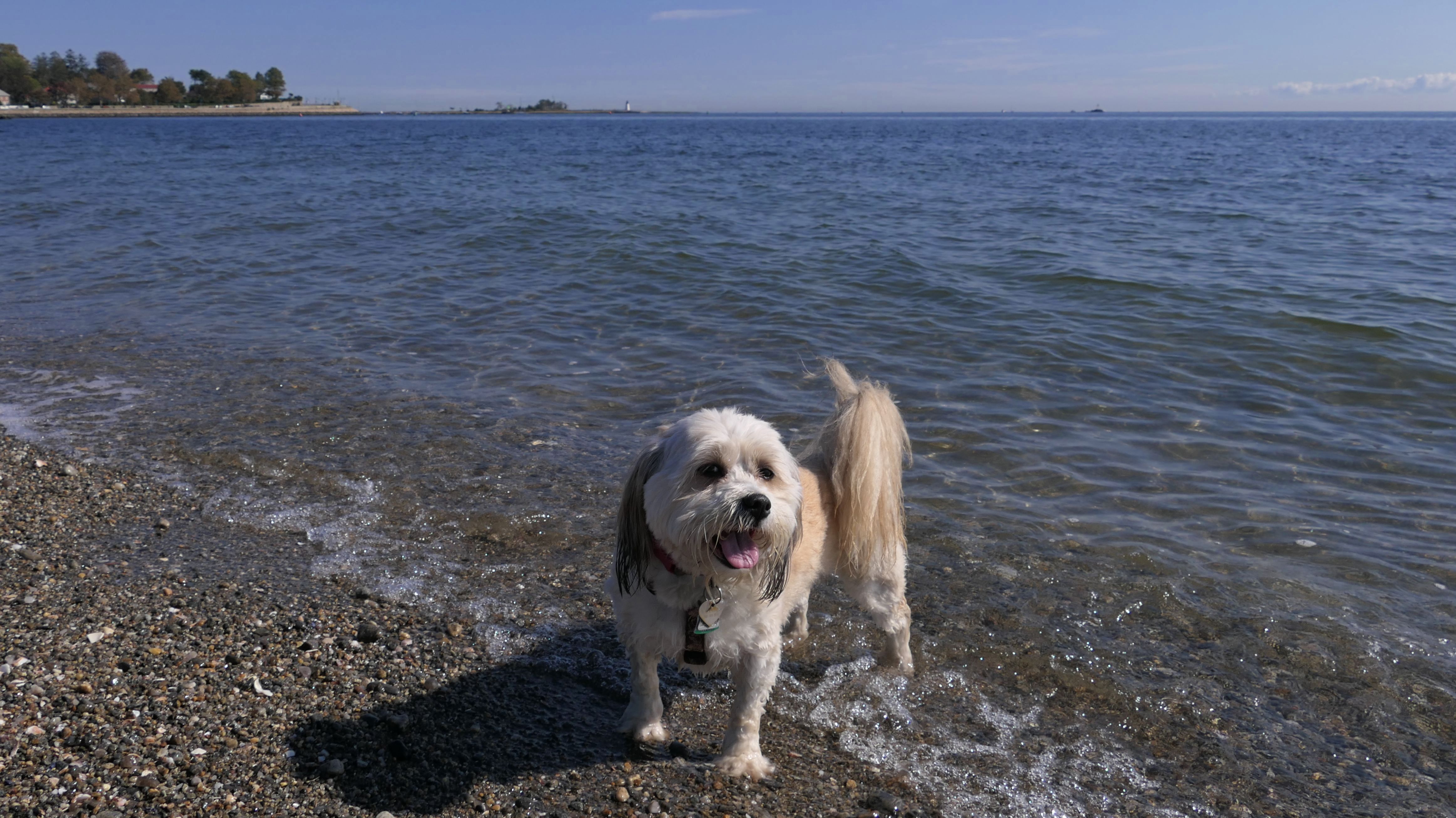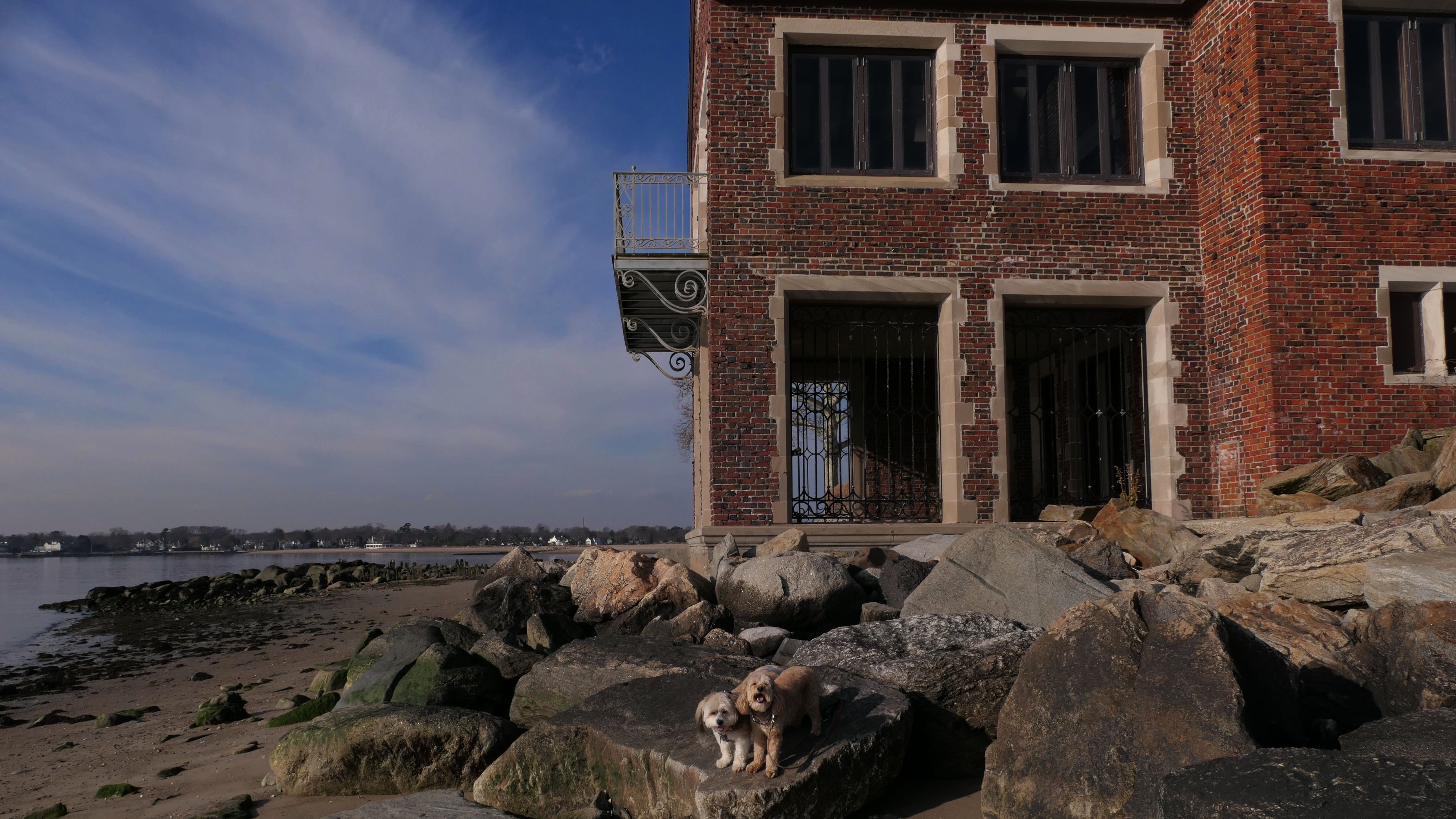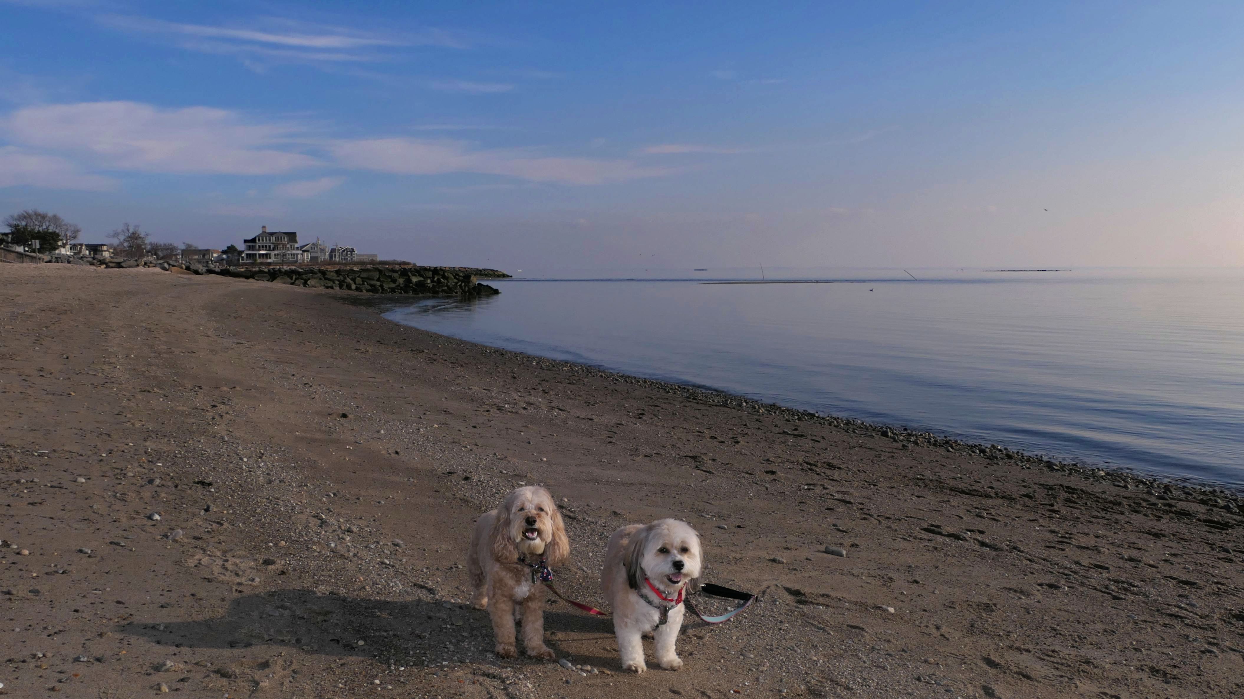 This beach was a pleasant surprise. Like the other Fairfield town beaches, dogs are allowed Oct 1st through March 31st. The beach looks super small, but according to the sign, the public is allowed on the adjacent waterfront up to the "median high tide line." We headed northwest toward Sasco Beach, a beach we visited just over two years prior. We walked around a bend, where we encountered a fancy building of some sorts. I think it belongs to the Fairfield Country Club, but I'm not sure. We of course stopped to take pictures in front of it. We also checked out the grassy area behind the building. We probably weren't supposed to be there, but we didn't stay there very long. There's a short rocky area before Sasco beach, but since we had already visited that beach, we turned around and headed back. We walked just over a mile here total, and headed to nearby Southport Beach next.