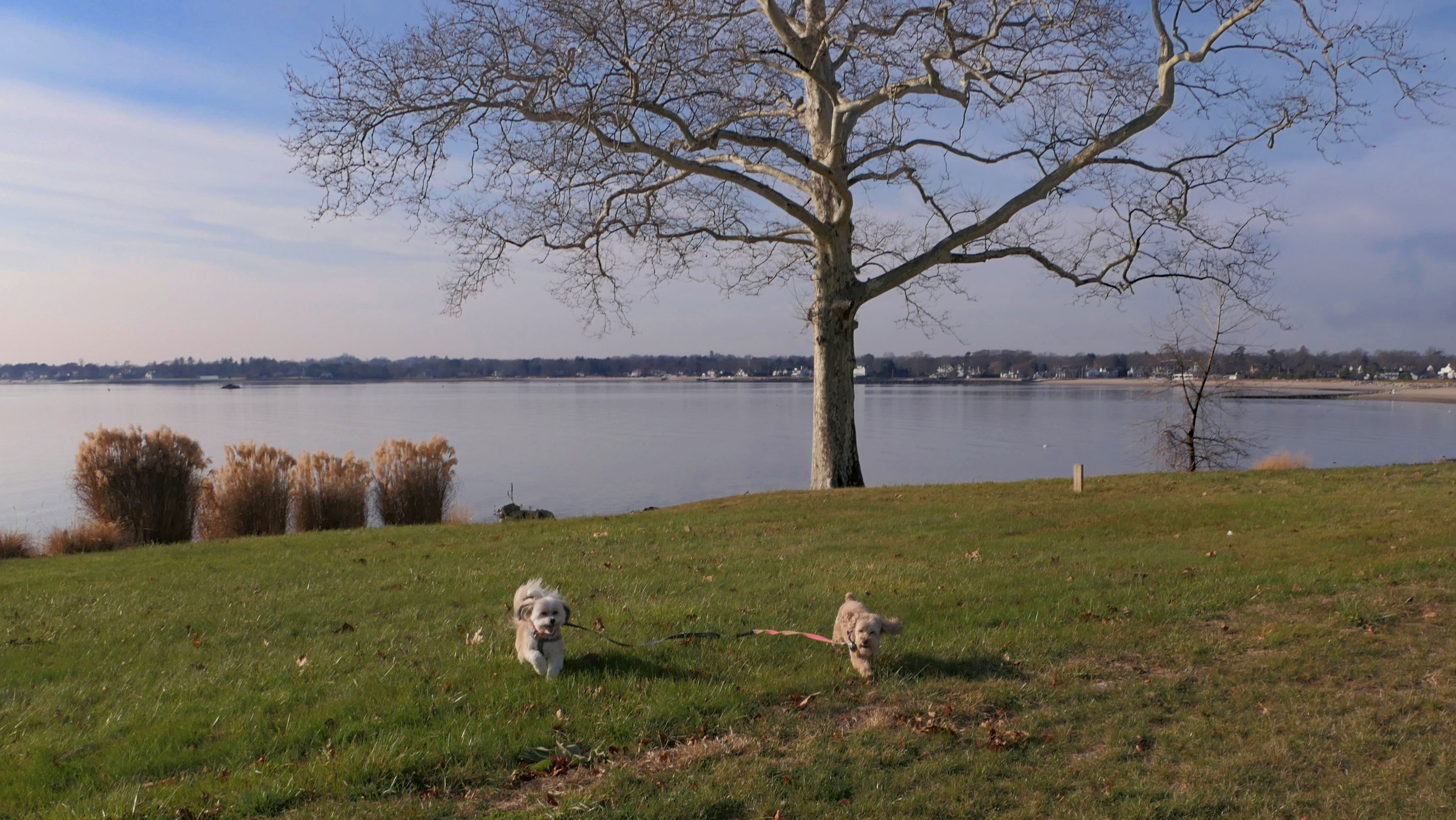 This is another open space area owned by the Town of Fairfield. This one is very near to one of our favorite places, Jennings Beach. In fact, when you walk to the end of the point, you can see the beach just across the water. There's no access to it from here, unless you want to swim. The other part of the trail starts behind the South Benson Marina, near a small playground. This is a short walk, and there is also access to the water here, where dogs can go in and take a quick dip.