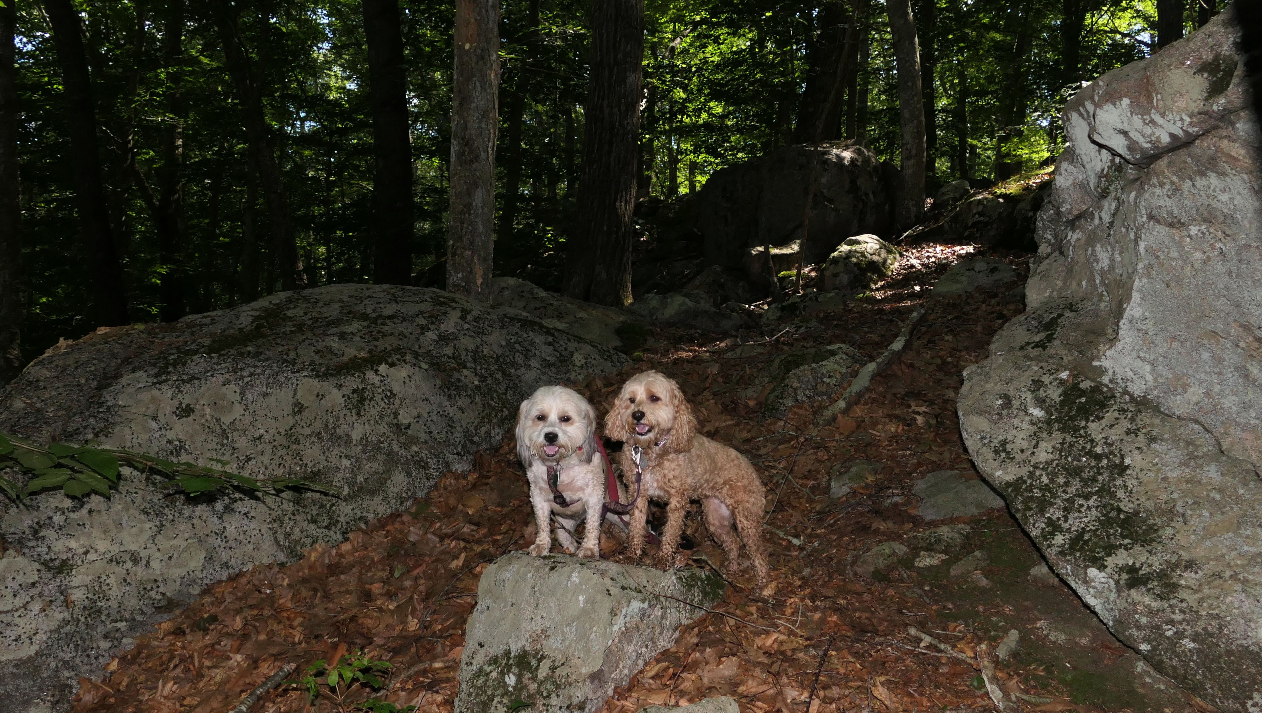 This area of the state was about eight degrees cooler than the Hartford area, so we headed here on a warm May day. This is a nice park with many trails. We walked the outer loop. The purple blazed section was challenging with inclines and rocky stretches, so we did that side of the loop first. The rest of the trail was wide and mainly flat, alternating between wooded sections and some more open areas. There is also a pond. This is also the home of the Groton Dog Park, named "Central Bark". It was a little hot for the park, and there were no other dogs so we passed this time. I have to say, this is the largest dog park I have ever seen. The small dog side was normal sized, but the large dog side was tremendous! All in all, this is a pretty nice place.