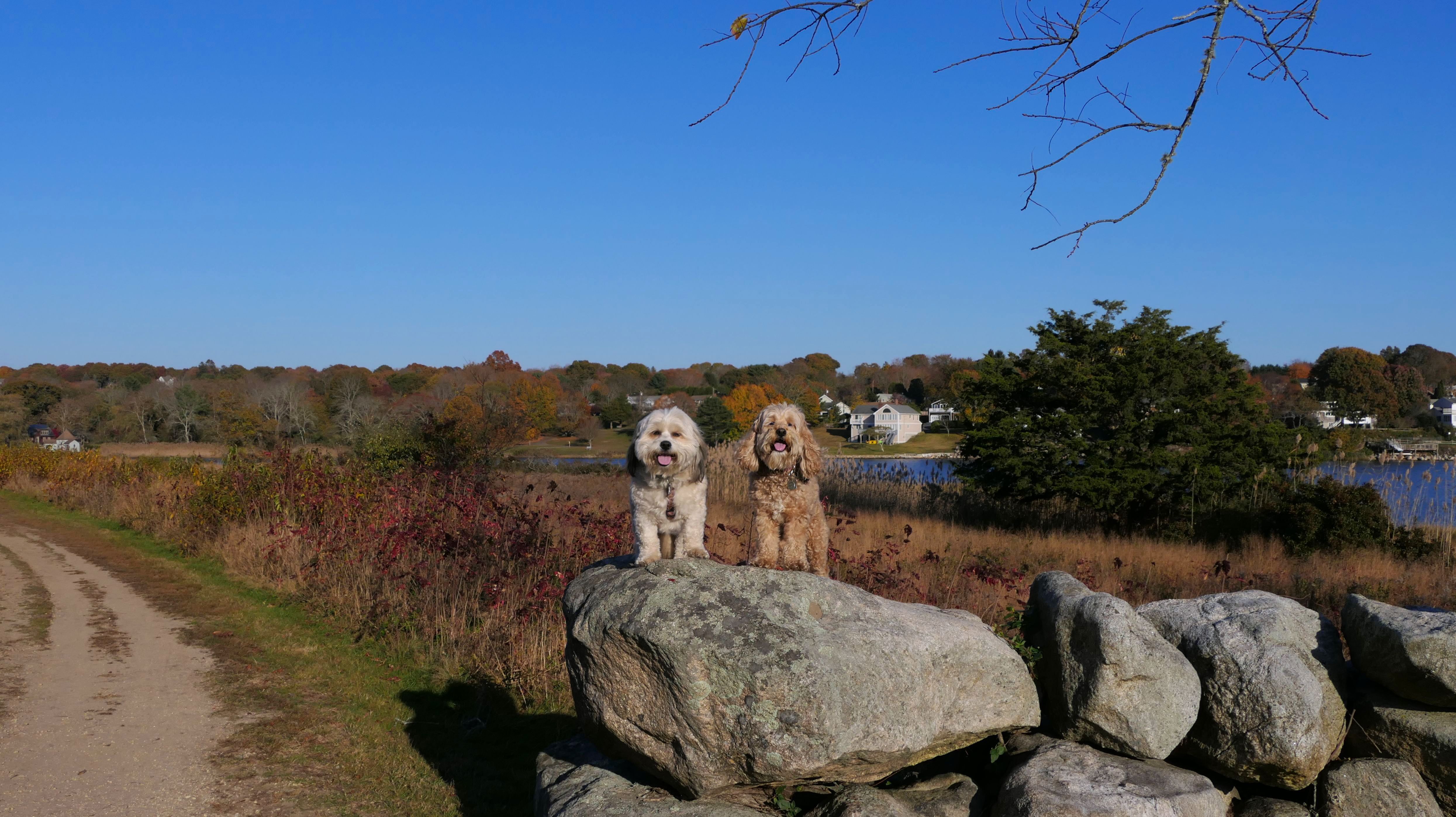 Our Thanksgiving morning adventure was a walk through the Noank section of Groton. We started at the Town Dock, and walked about four miles through a mostly residential neighborhood. There were a number of small parks and costal access points along the way. The access point at the corner of Riverview Avenue and Palmer Court features a wooden staircase that goes down to a small sandy beach area. I didn't see any "No Dogs" signs at any of the access points, so some of these spots could be good places for dogs to cool off in the summer. Unfortunately, there is very limited parking in the area. Toward the end of our walk we also visited Spicer Park. This was a very pleasant walk on a nice and sunny Thanksgiving morning.