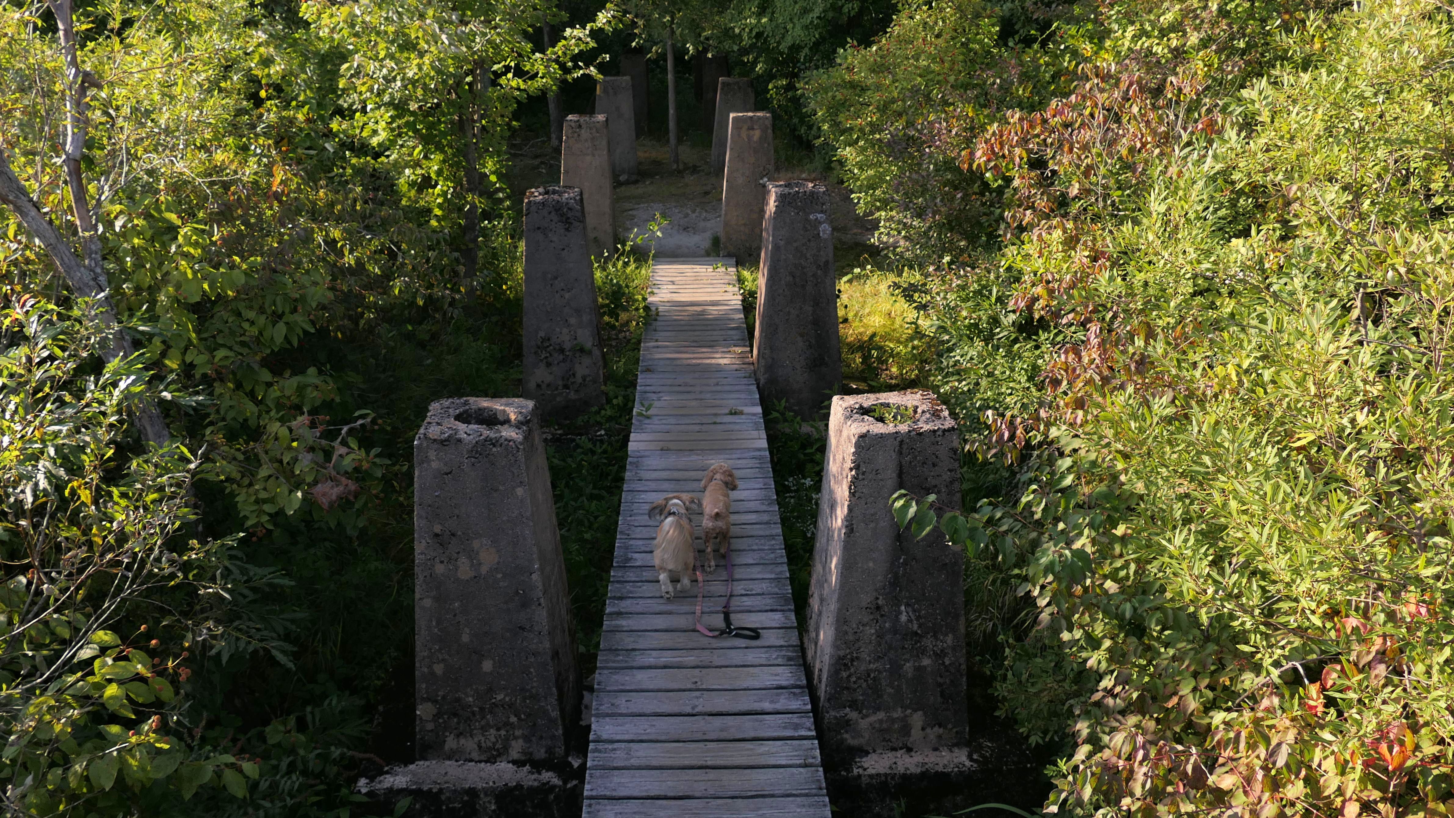 White Memorial Conservation Area is a large area of land owned by the White Memorial Foundation in the towns of Litchfield and Morris . The foundation was founded by May and Alain White (not to be confused with Yes drummer Alan White), in order to preserve the land from development. We walked the trail around "Little Pond" that consists of a mile long boardwalk around the water/marsh. This was a really nice walk, with lovely scenery on a gorgeous afternoon. Mandy is not that fond of boardwalks or bridges, and usually tries to cross them as fast as possible, but since the boardwalk was over a mile long, she couldn't really keep the fast pace up! There were a few spots where we were able to take a break off the boardwalk. I could tell she was relieved when we got to the end of the loop.