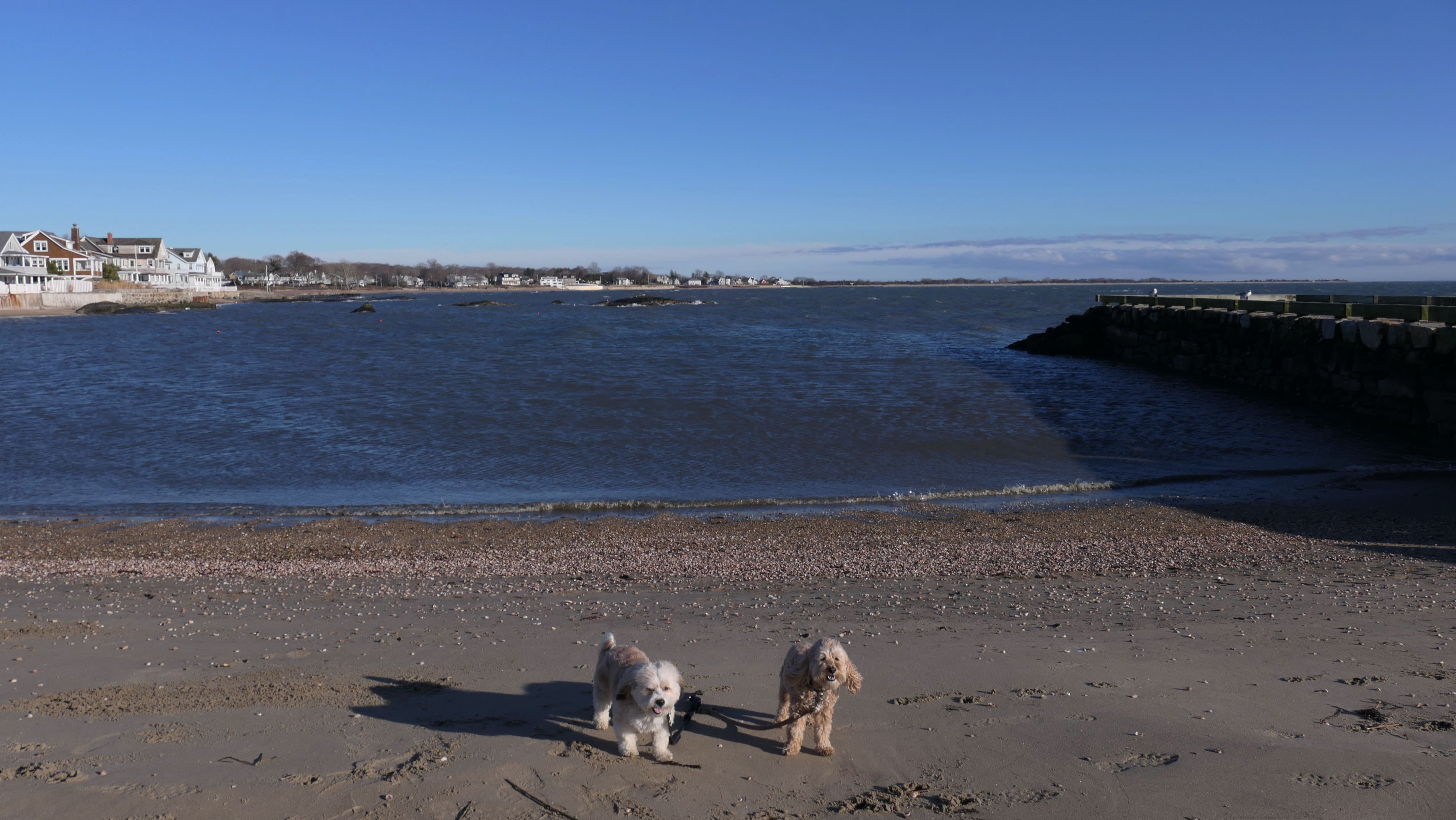 This was an unplanned adventure. We were actually heading to a beach in Rhode Island, but when we were about half way to our destination, I noticed the weather forecast changed, so we re-routed here where it was warmer and sunnier. There's a small parking area with space for about four cars near this rare Connecticut Shoreline Access Point. The actual access area is very small. There's a sidewalk along a seawall that runs down Middle Beach Road for a bit. After that, we walked about a mile down the road and back, passing East Wharf Beach along the way. Dogs are not allowed on town beaches in Madison, so we mostly stayed off the sand. Of course, I don't know why anyone would care since it's the end of December. We passed a lot of private beaches. Unlike Rhode Island, most of Connecticut's shoreline is off-limits to the public. It's a shame there isn't more public access.