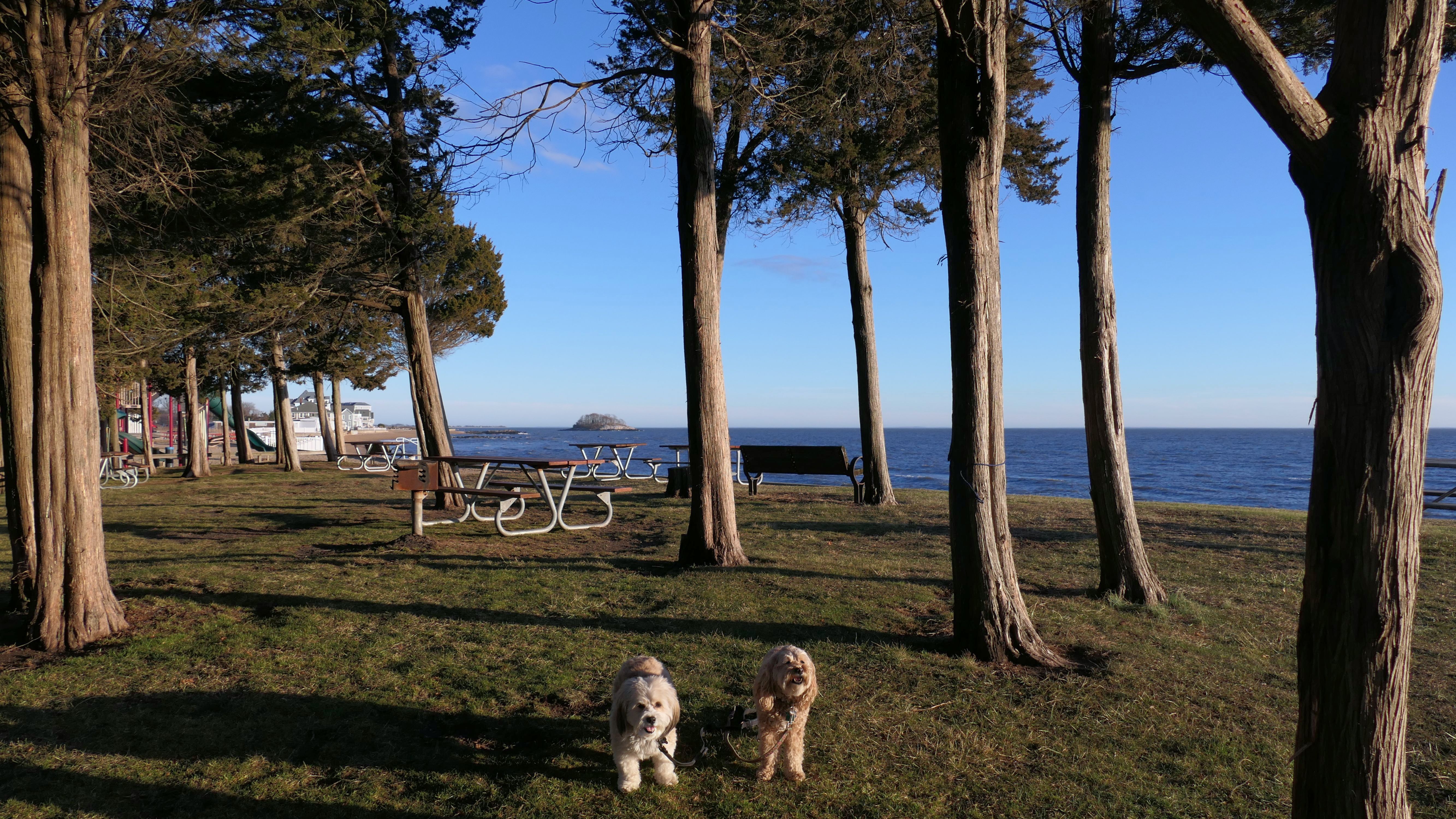 This was our second stop in Madison on this day. It's a very nice town park, but be aware. Dogs are not allowed on the beach, playgrounds, picnic areas, or athletic fields. That pretty much just leaves the parking lot. It was the off-season, so we walked around a bit through the picnic areas, and also to a rocky area past the beach. It's not entirely dog un-friendly. Garvan Point can be accessed at the far end of the park, and there is a dog-friendly beach area there.