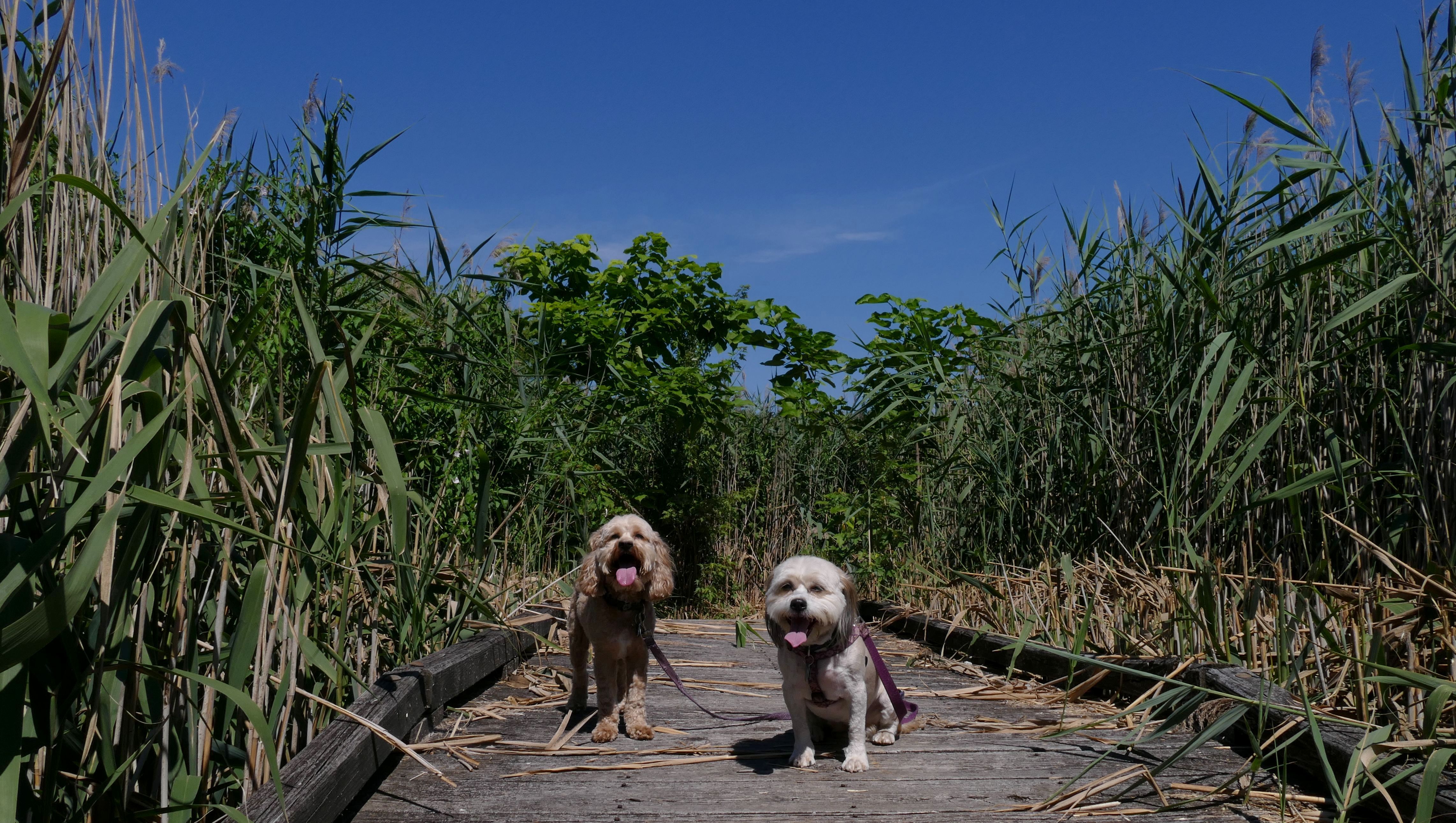 The longer loop is the one I enjoy the most. It has a wide variety of different types of terrains and views, from wooded areas to marsh lands, to more open areas. A protion of this trail incorporates the paved Captain John Bissell Greenway to cross the river. The other river crossing is on a large trail bridge. There is a large section that runs on elevated boardwalk, similar to the East Hartford sections. I brought Mandy and Lexi here for the first time in 2018, but I was disappointed as the boardwalk section of the trail was closed due to damage, and it was not possible to hike the entire loop. At some point within the last two years, the trail has been re-routed away from the damage, and the loop is complete once again. You can see the old boardwalk in the pictures below, the part that is still is in tact, and the part that is no longer passable. You can also see the doe who was enjoying cooling off in the Hockanum on that warm day.